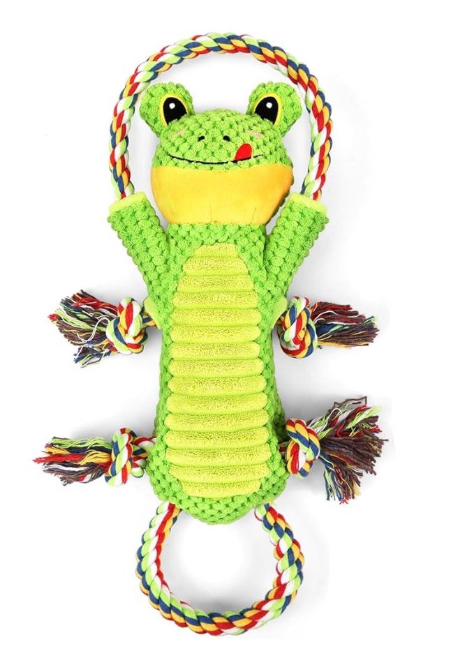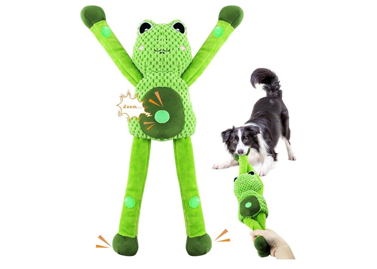 4568 Plush Dog Toy in Green Frog Design with Squeaker