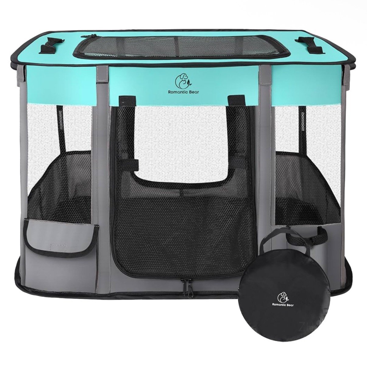 4600 Foldable Pet Playpen with Mesh Panels and Zippered Door 38×24”