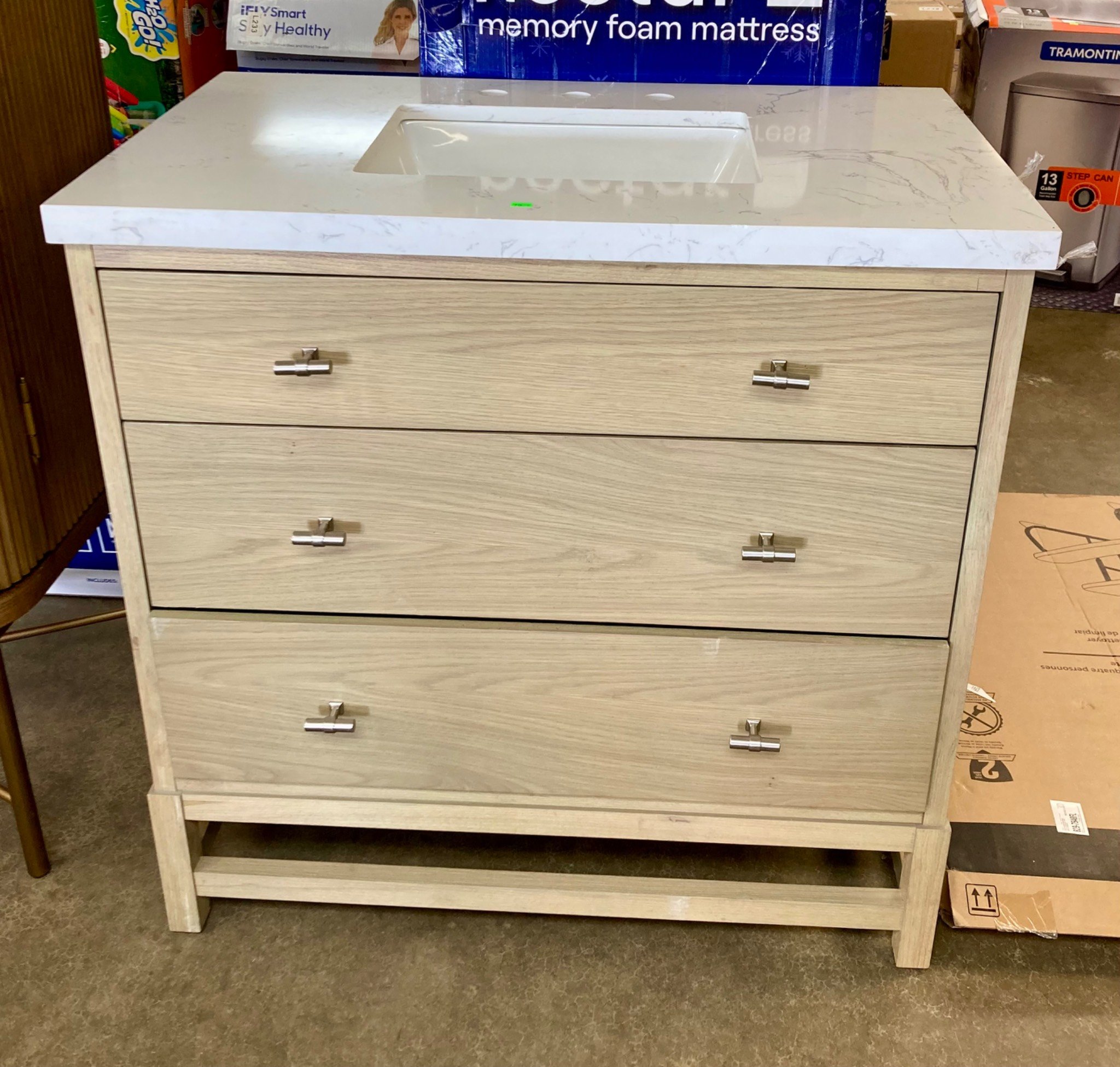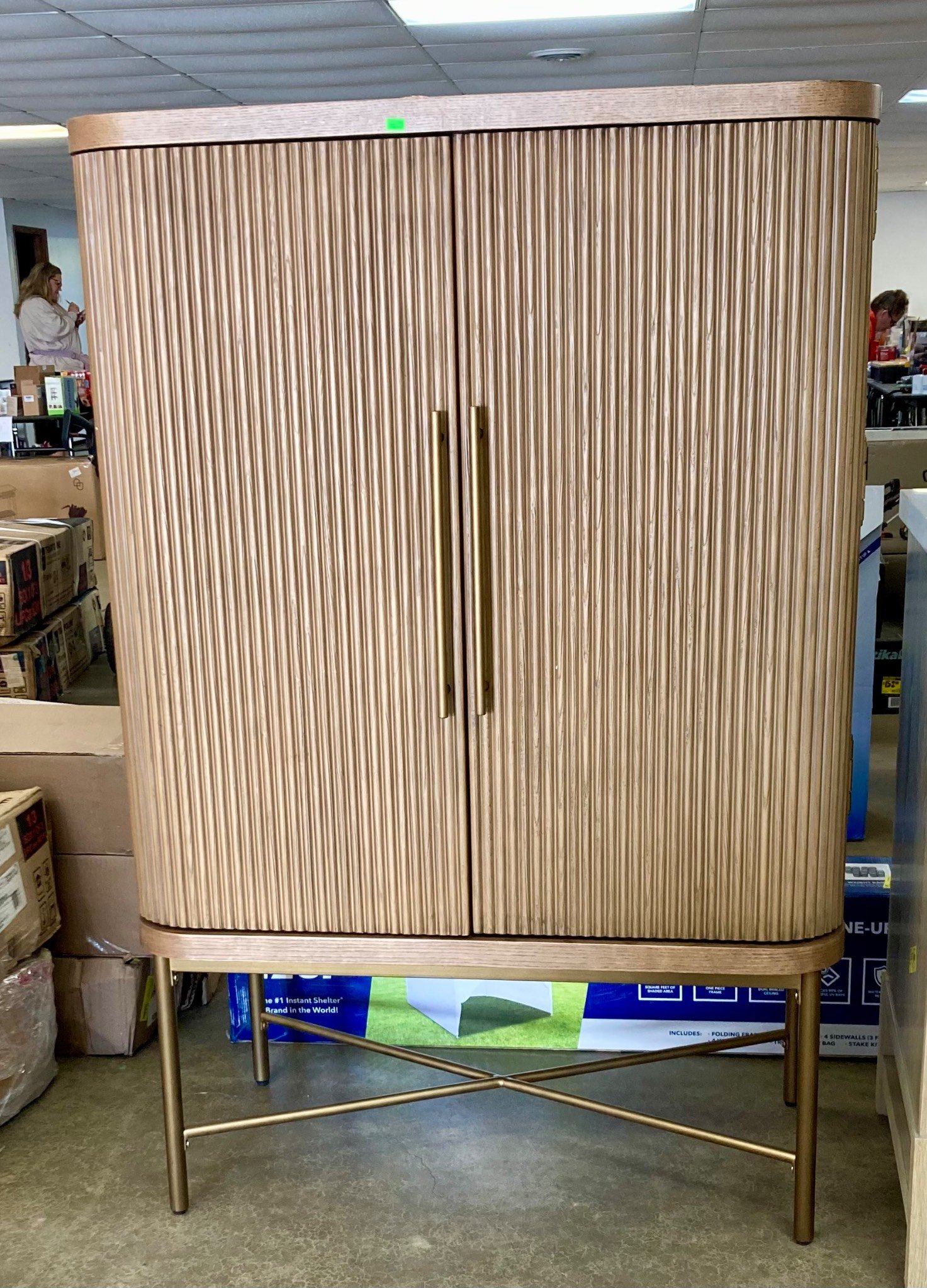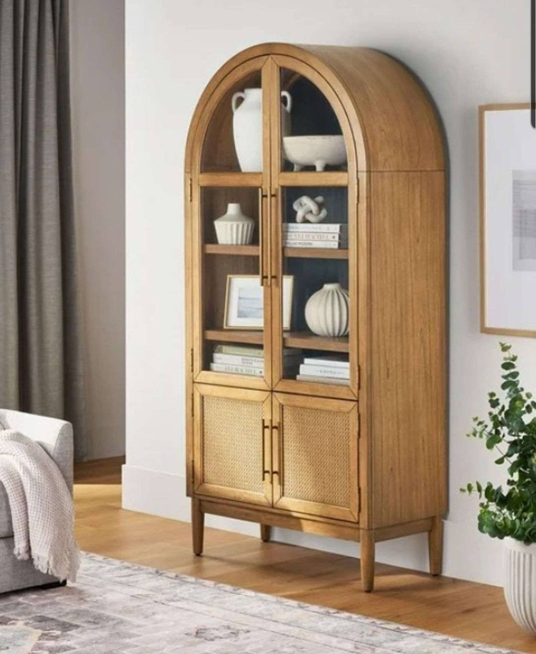 38 Enzo Collection Cabinet with Arched Top and Glass Doors by Member’s Mark-Measures 74.25 in (188.6 cm) high, 36 in wide, and 17.5 in deep.