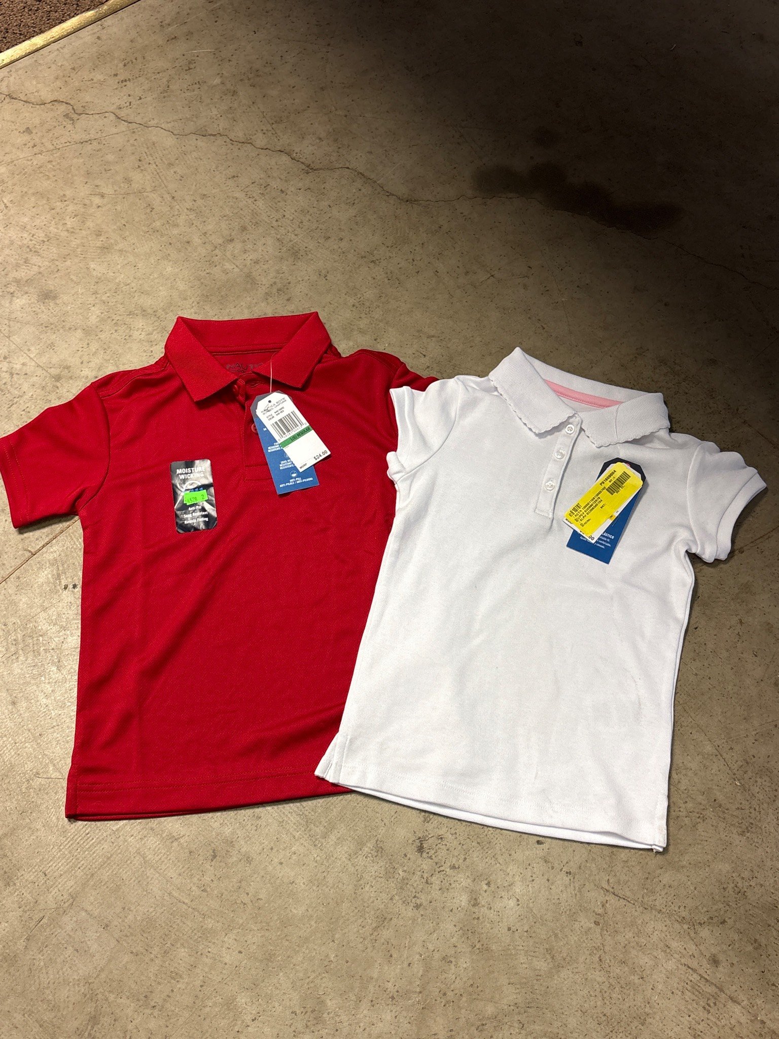 4528 Nautica Boys’ and Girls’ School Uniform Polo Shirts in Red and White