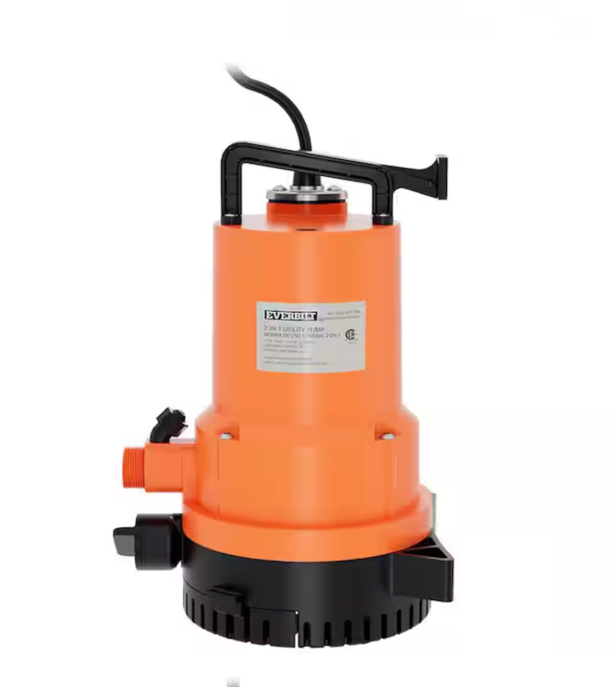 4608 Everbilt 2-in-1 Utility Pump With 1/4 HP and Garden Hose Discharge