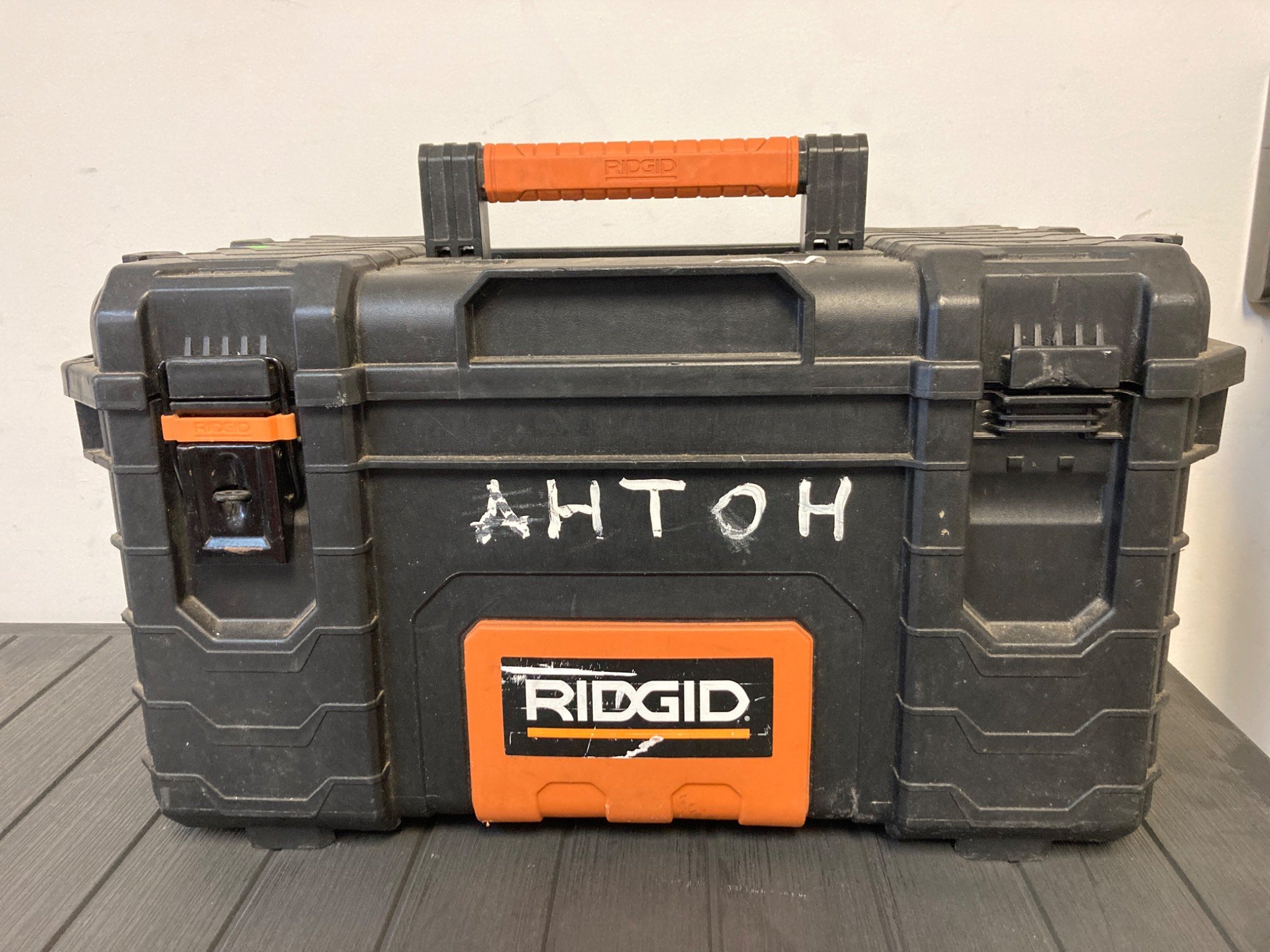4614 Ridgid Black Plastic Tool Storage Box with Orange Handle-latch missing-pre owned