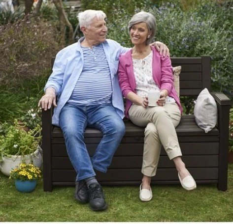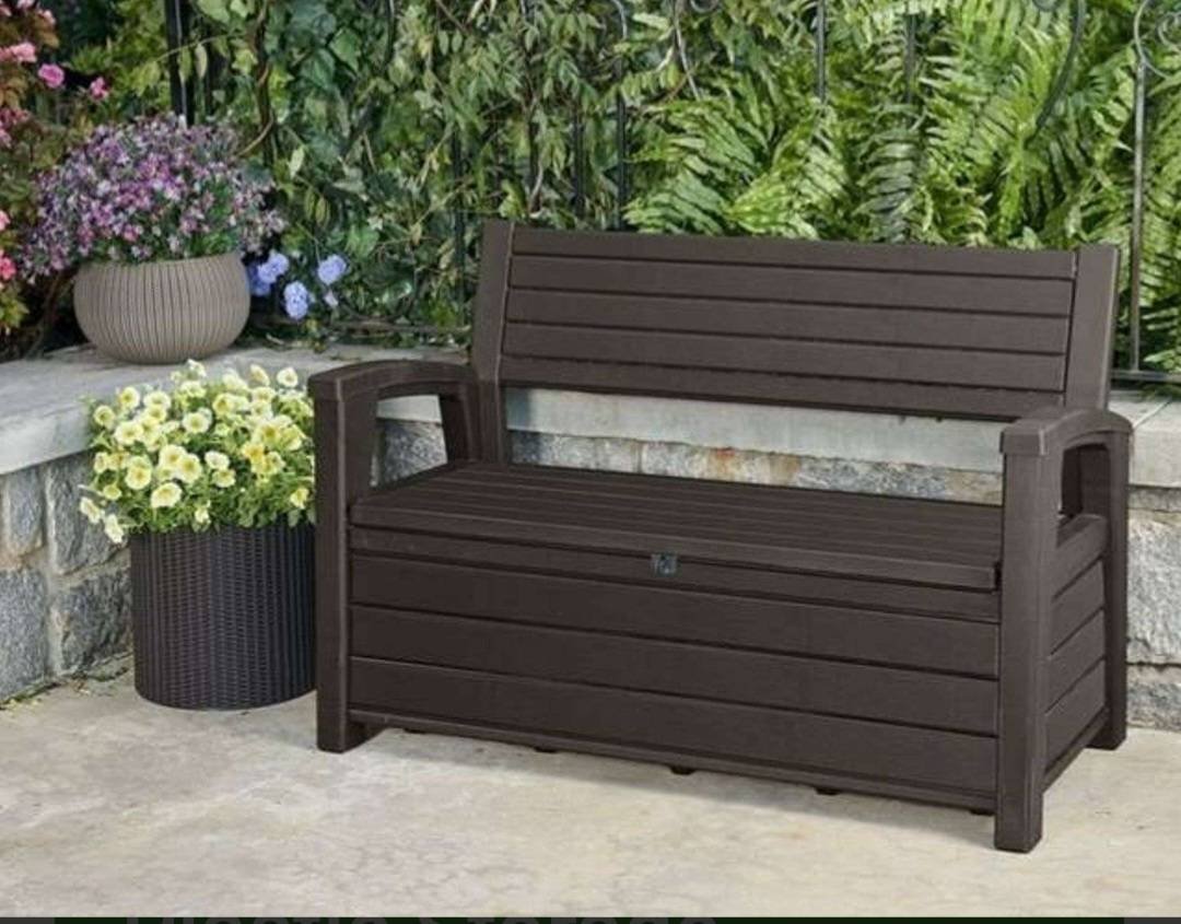 5023 Keter Hudson Plastic Storage Bench, 60-Gallon Capacity, Non-Brushed Brown 35×52.2×24 in.