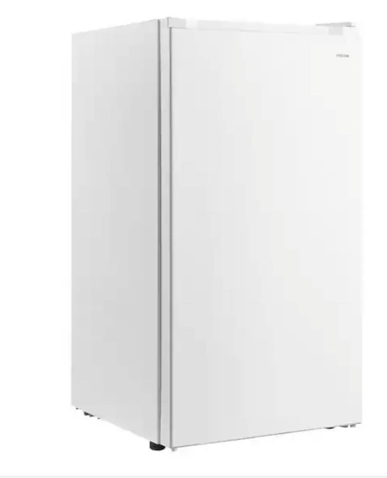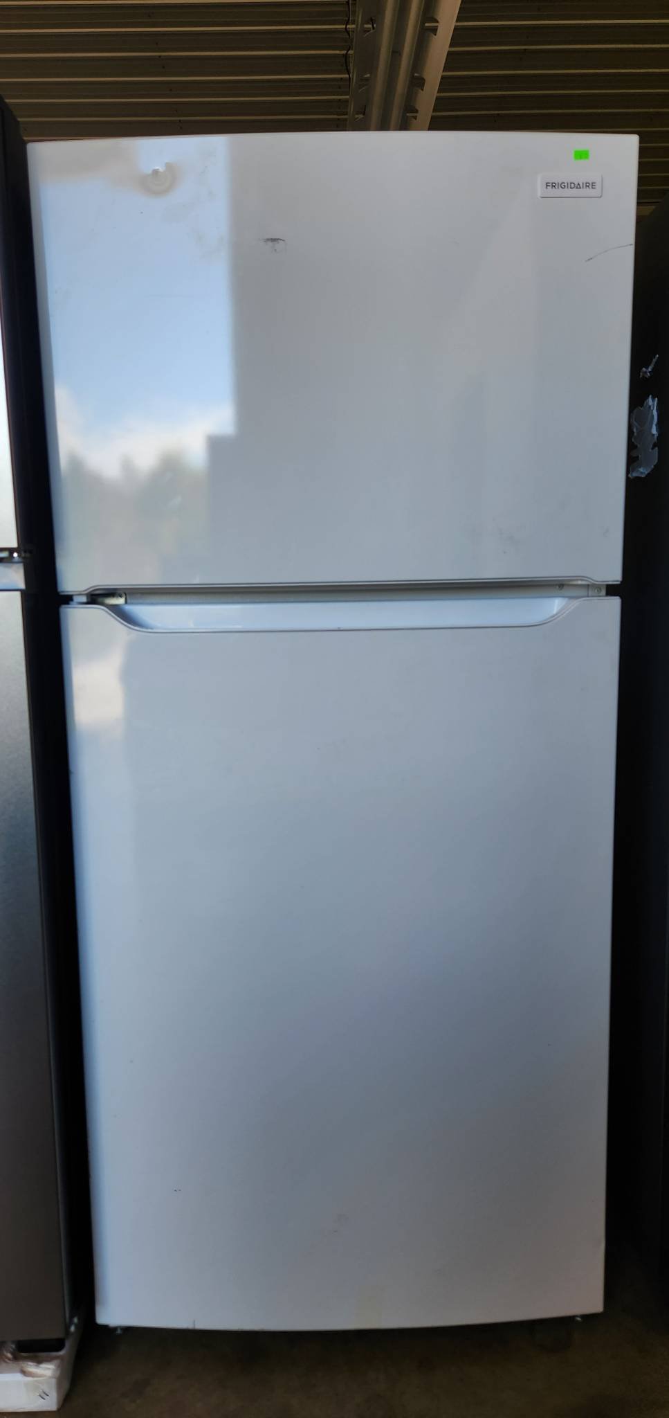 7 New Frigidaire 30 in. 18.3 cu. ft. Top Freezer Refrigerator, Garage Ready model # FFTR1835VWD has minor ding and scuffing