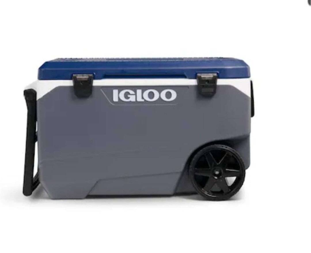 81 Igloo 90 Quart Hard Insulated Cooler with Wheels and Retractable Handle