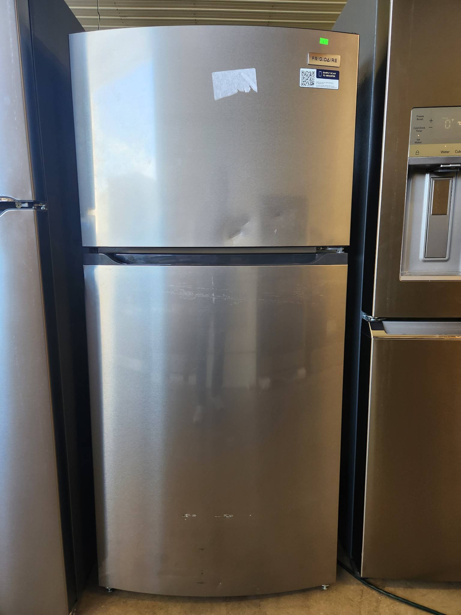 8 New Frigidaire Gallery 20 Cu. Ft. Stainless Top Freezer Refrigerator FGHT2055VF has minor dings and scuffing