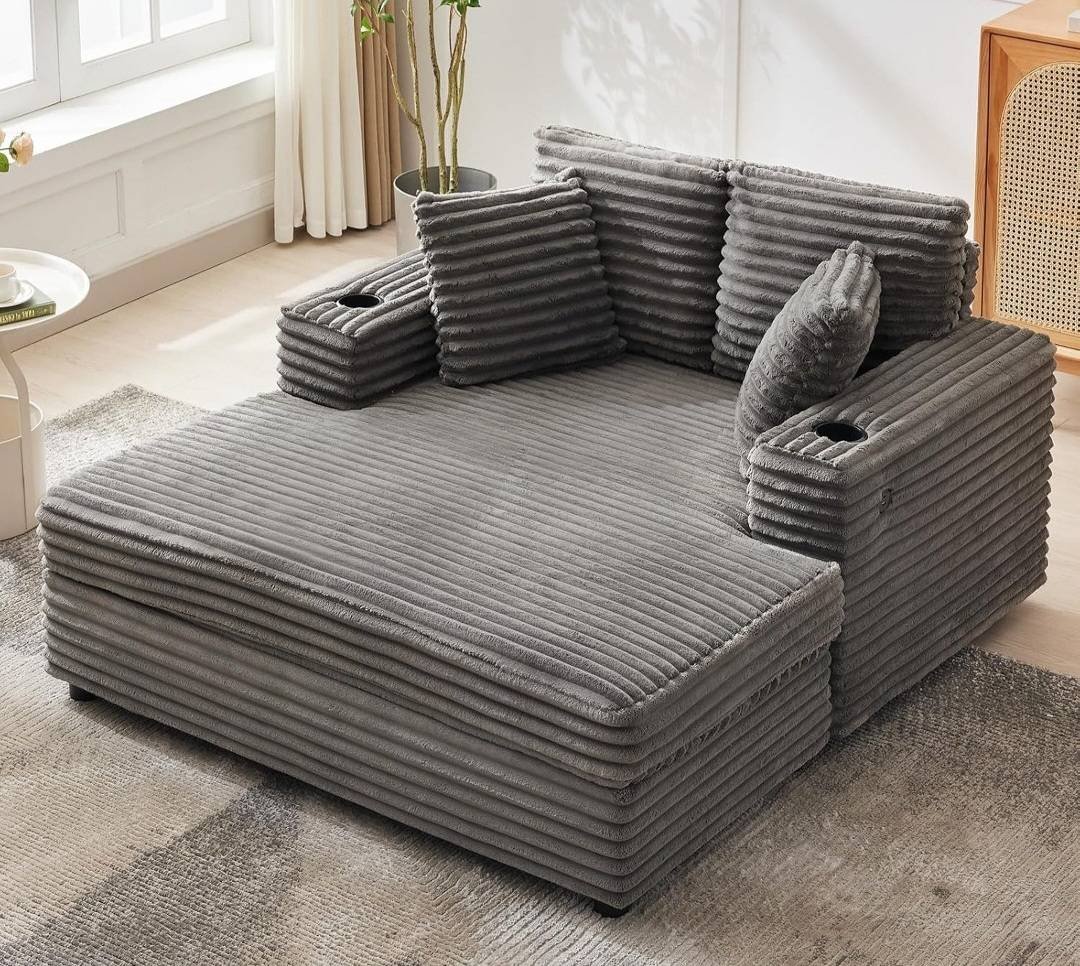 95 Oversized 60-Inch Upholstered Chaise Lounge Chair with Throw Pillows and Armrests