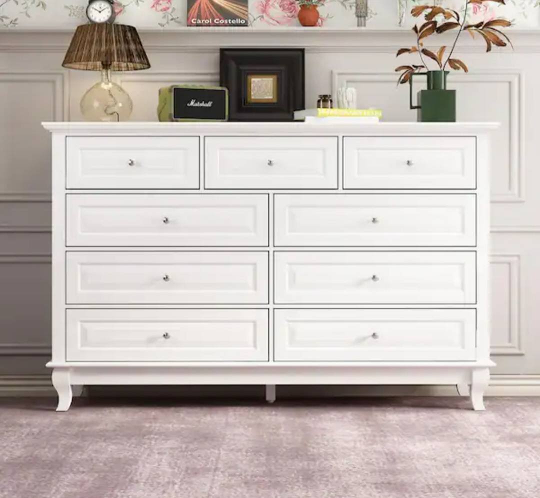 112 White 6-Drawer Dresser with Panel Design-Damaged-53”Wx27”Hx17”D