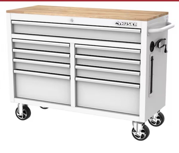 308 Husky Smart Standard Duty 46x9x18in. Drawer Wheeled Wood Top and USB Ports