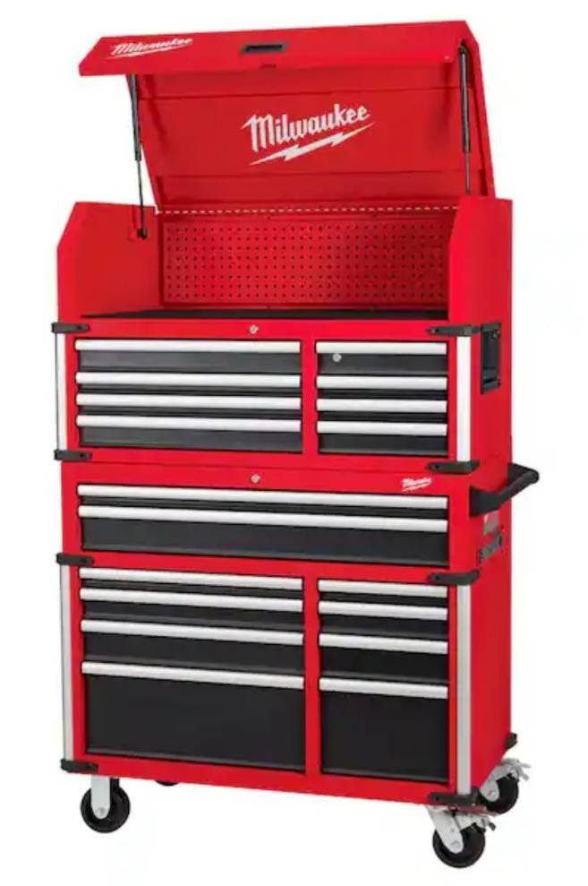 139 Milwaukee Tool Storage 46in. W x 22 in. D Heavy Duty Rolling Red Tool Chest Combo