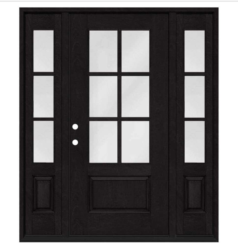 258 Regency 64in.×80in. 3/4-6 Lite Mahogany Fiberglass Front Door with Onyx Stain and Dbl 12in. Sidelights