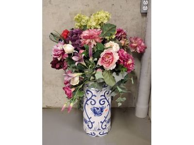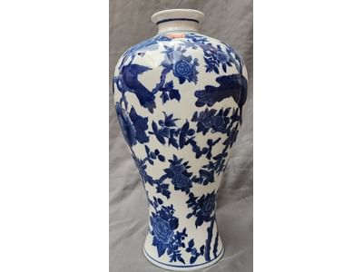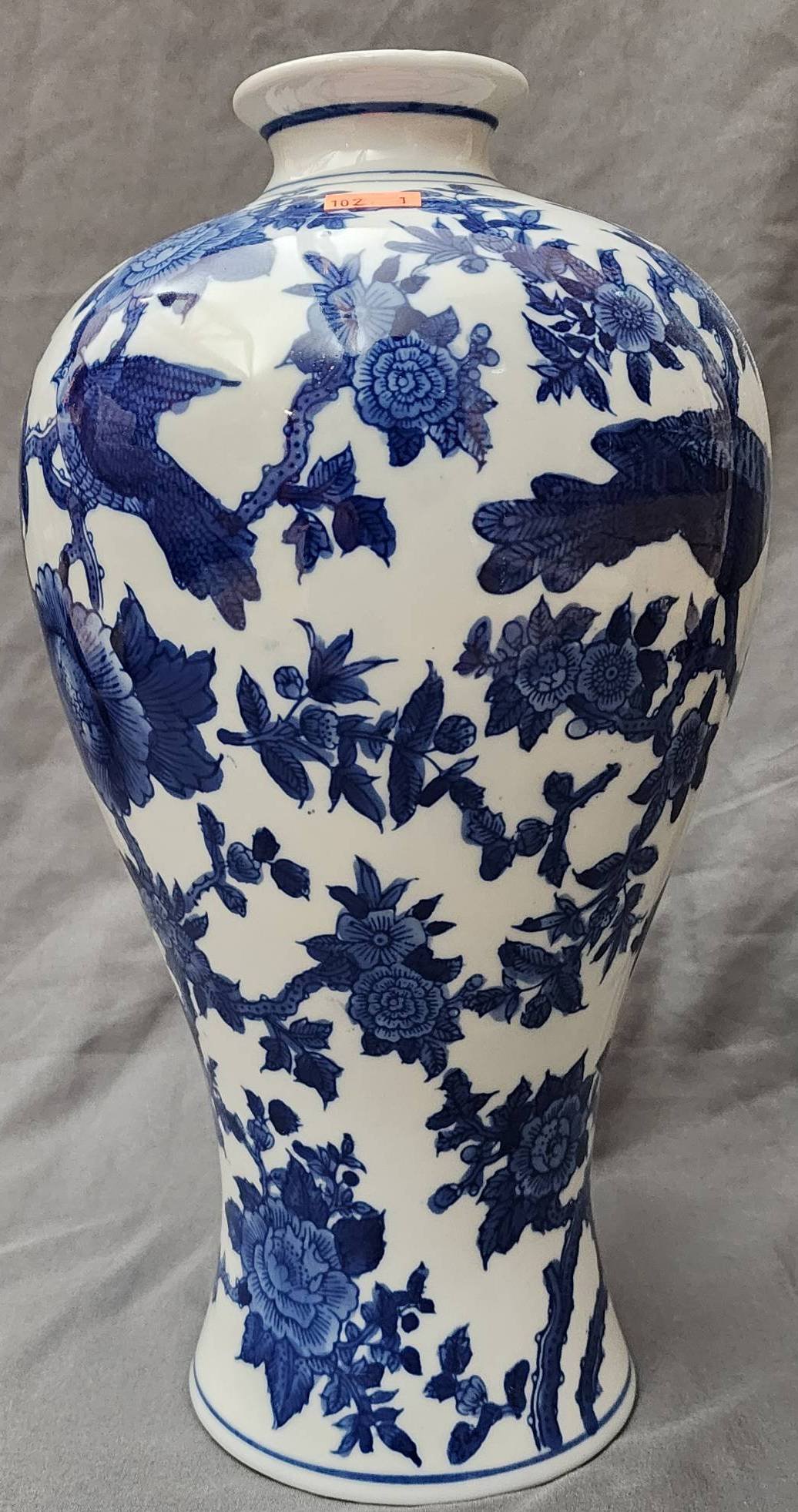 102 Blue and White Floral Vase with Birds, 7?x14?