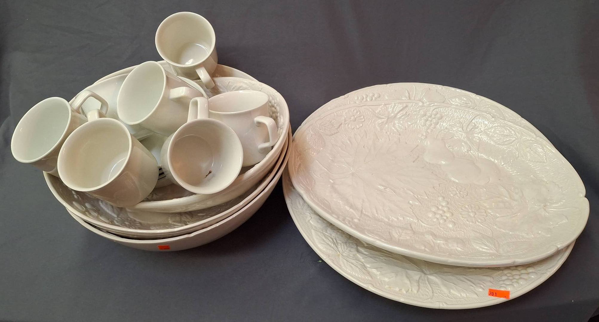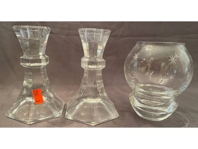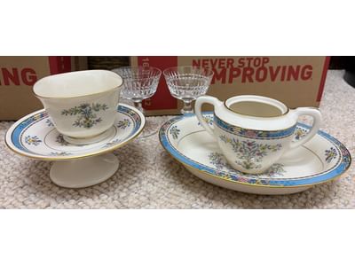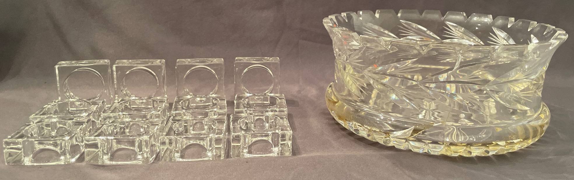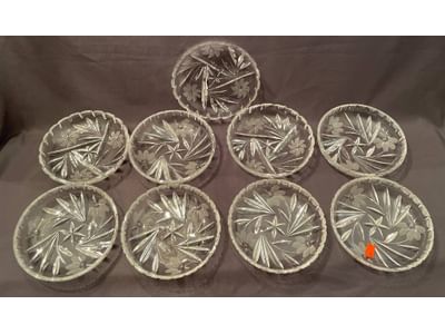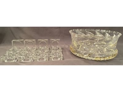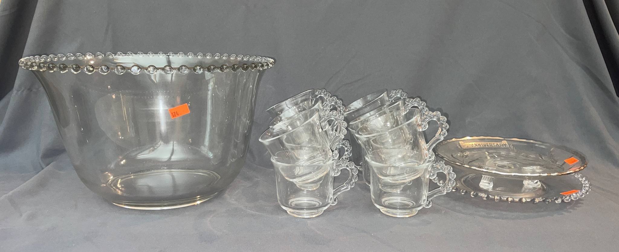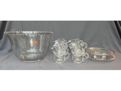 174 Glass Punch Bowl, 12 Cups, and 2 Glass Plates, some Candlewick