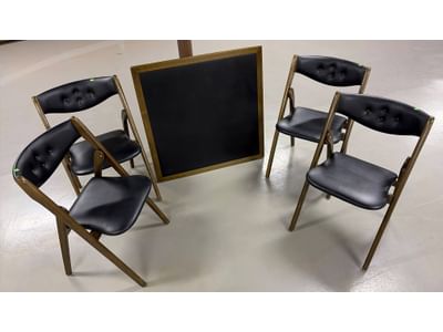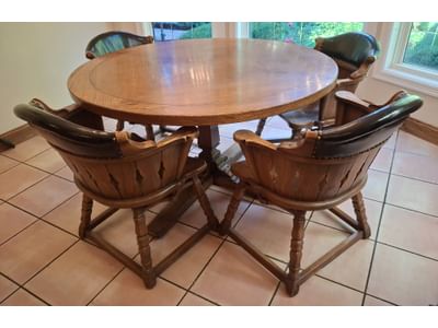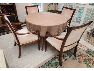105 Hickory Chair Round Dining Table (44?x30?) and 4 Upholstered Chairs, 24?x19?x36?