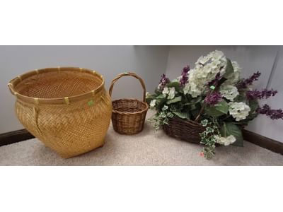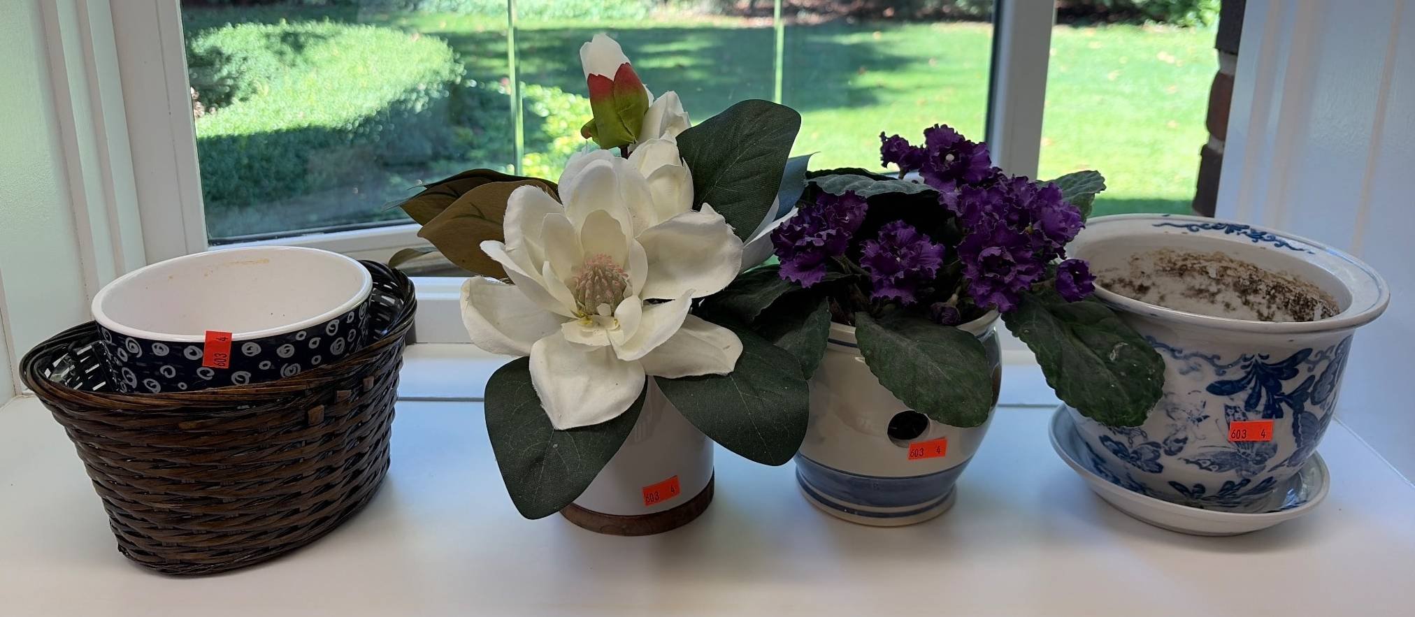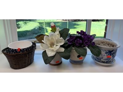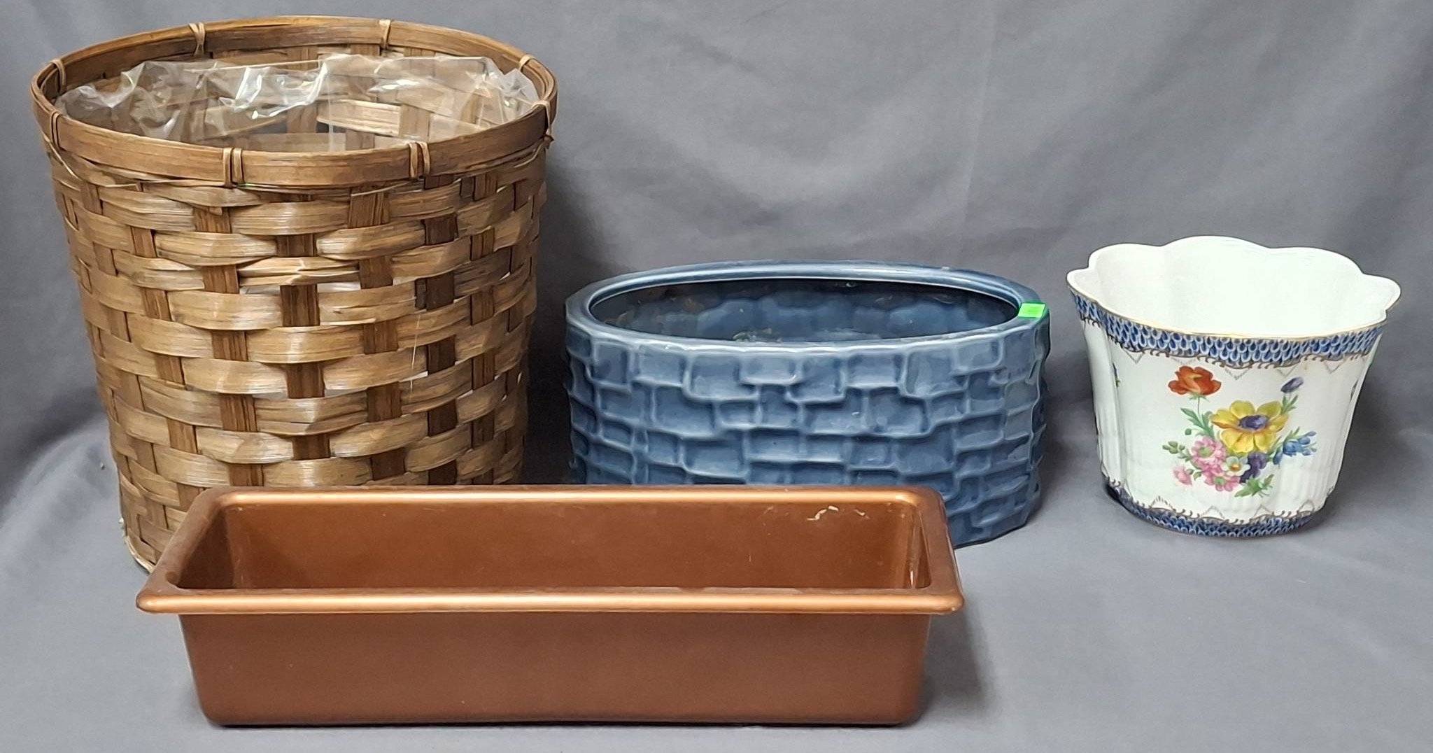 1418 Andrea by Sadek Floral Planter, Woven Basket with Liner, Ceramic Oval Planter, and Rectangular Plastic Planter 6.5?x4.5? – 9.5?x9.5?