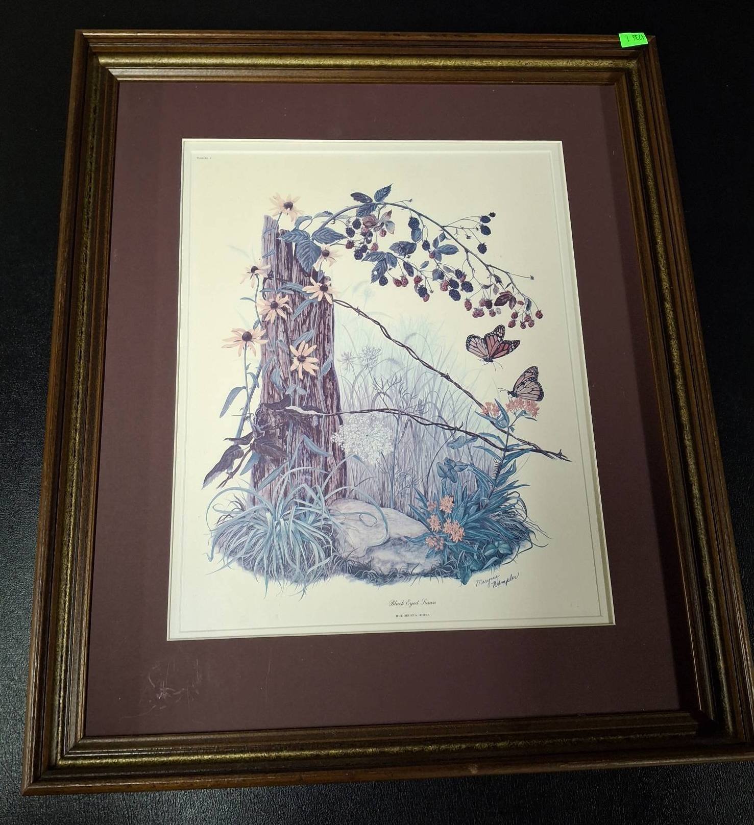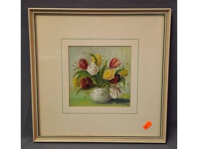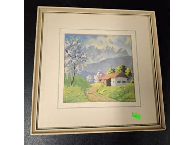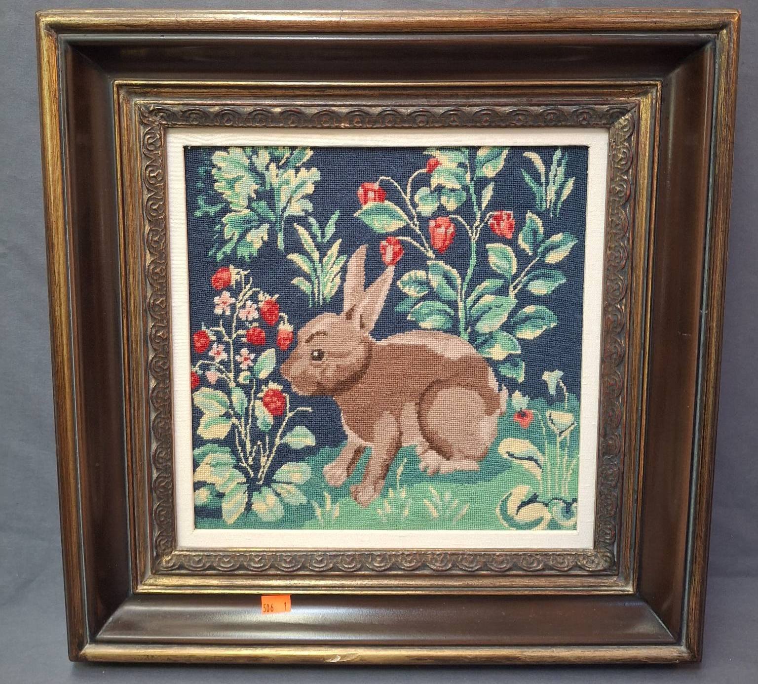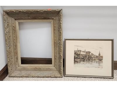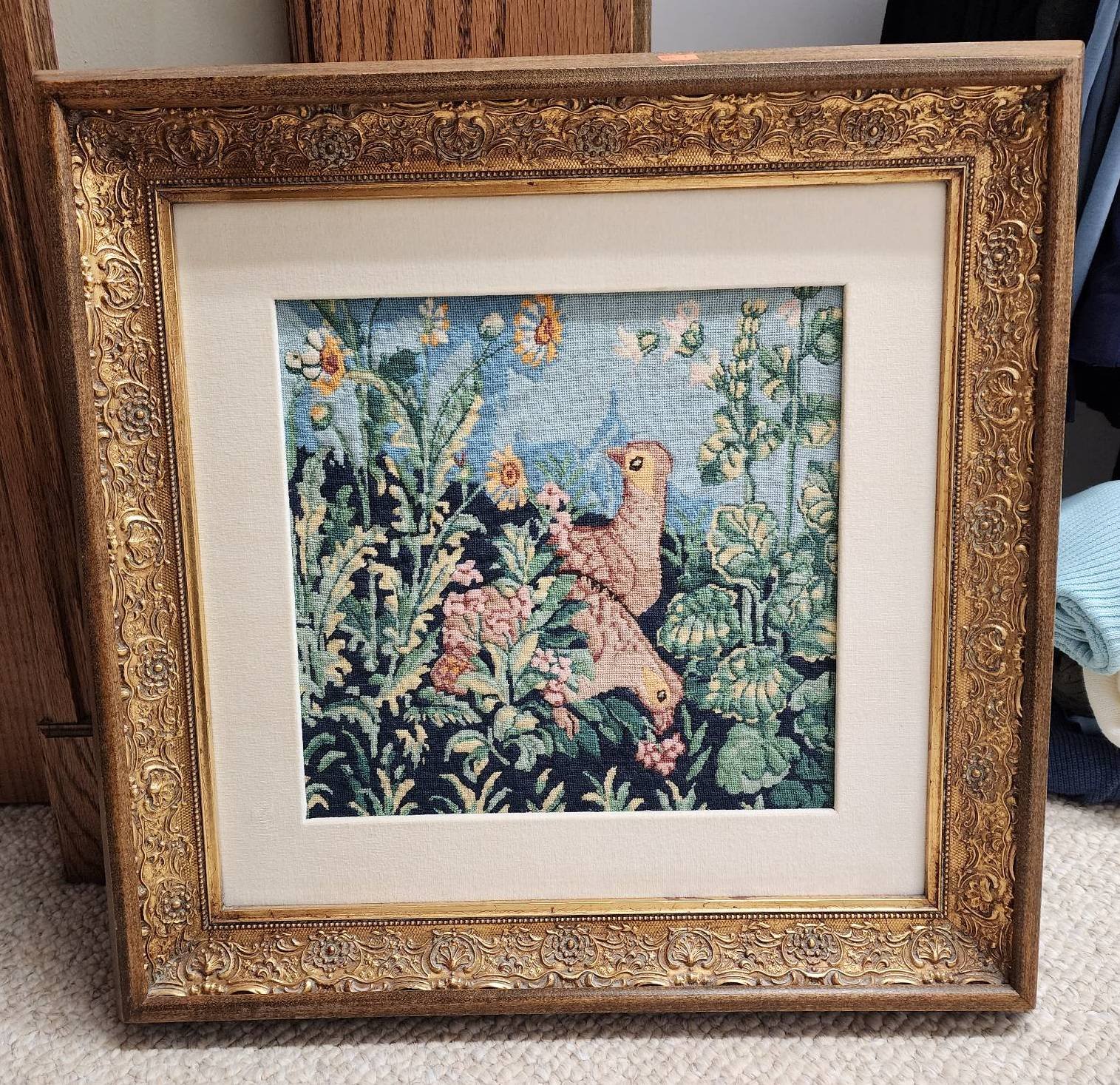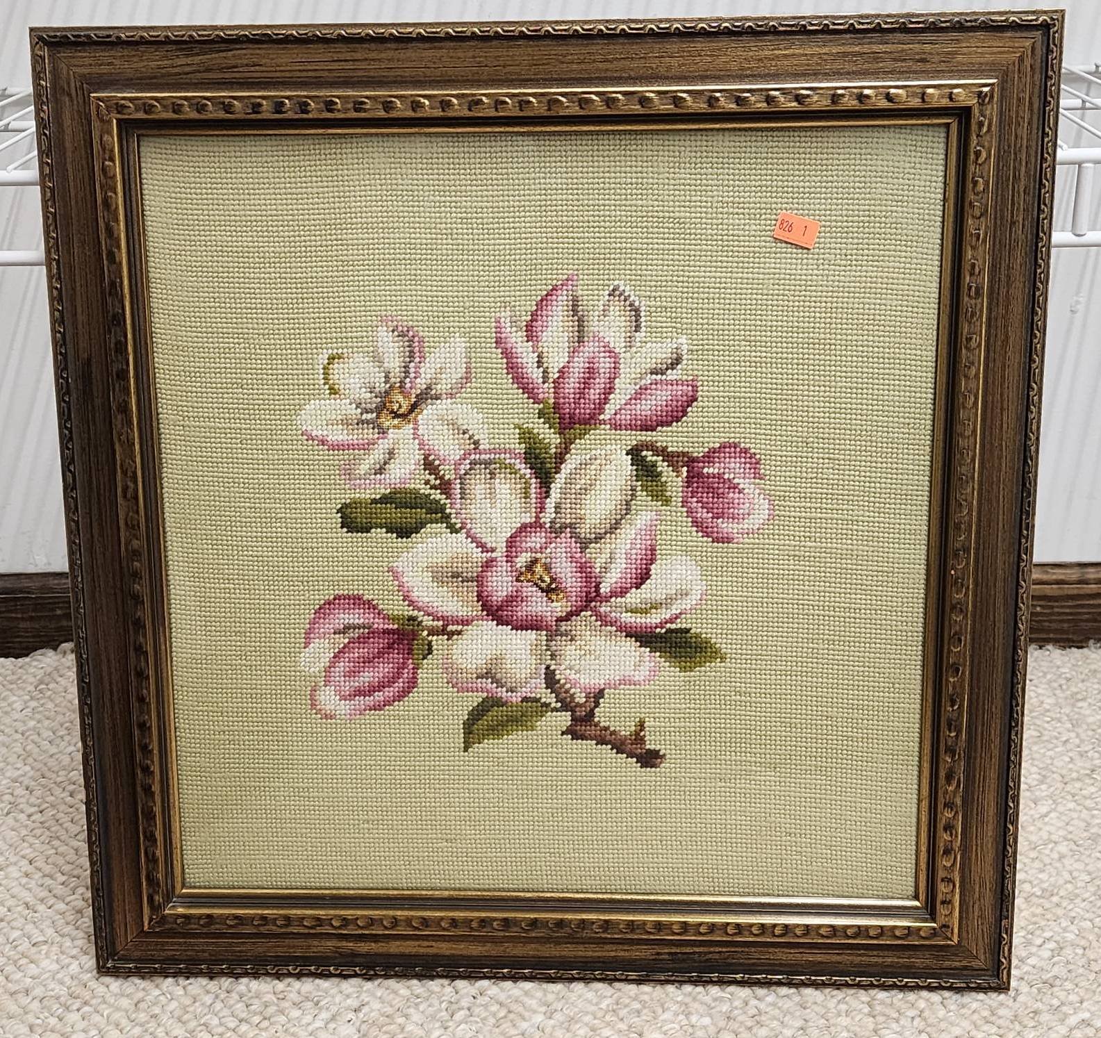 1403 Framed Needlepoint Sampler and Watercolor of Lamp Post with Floral Motif 13?x15? & 19?x23?
