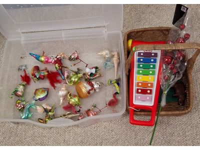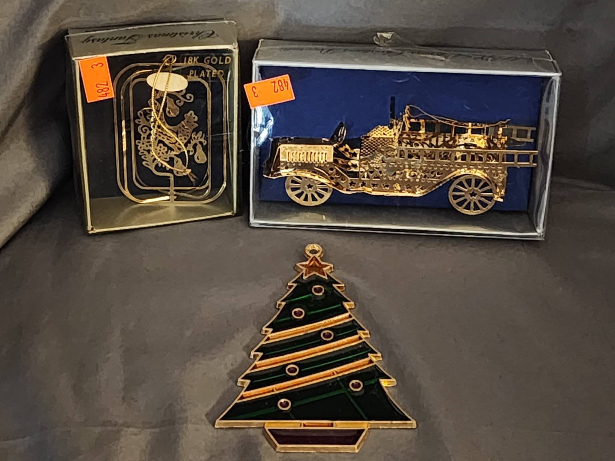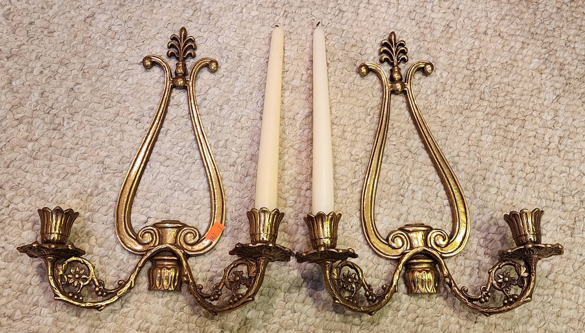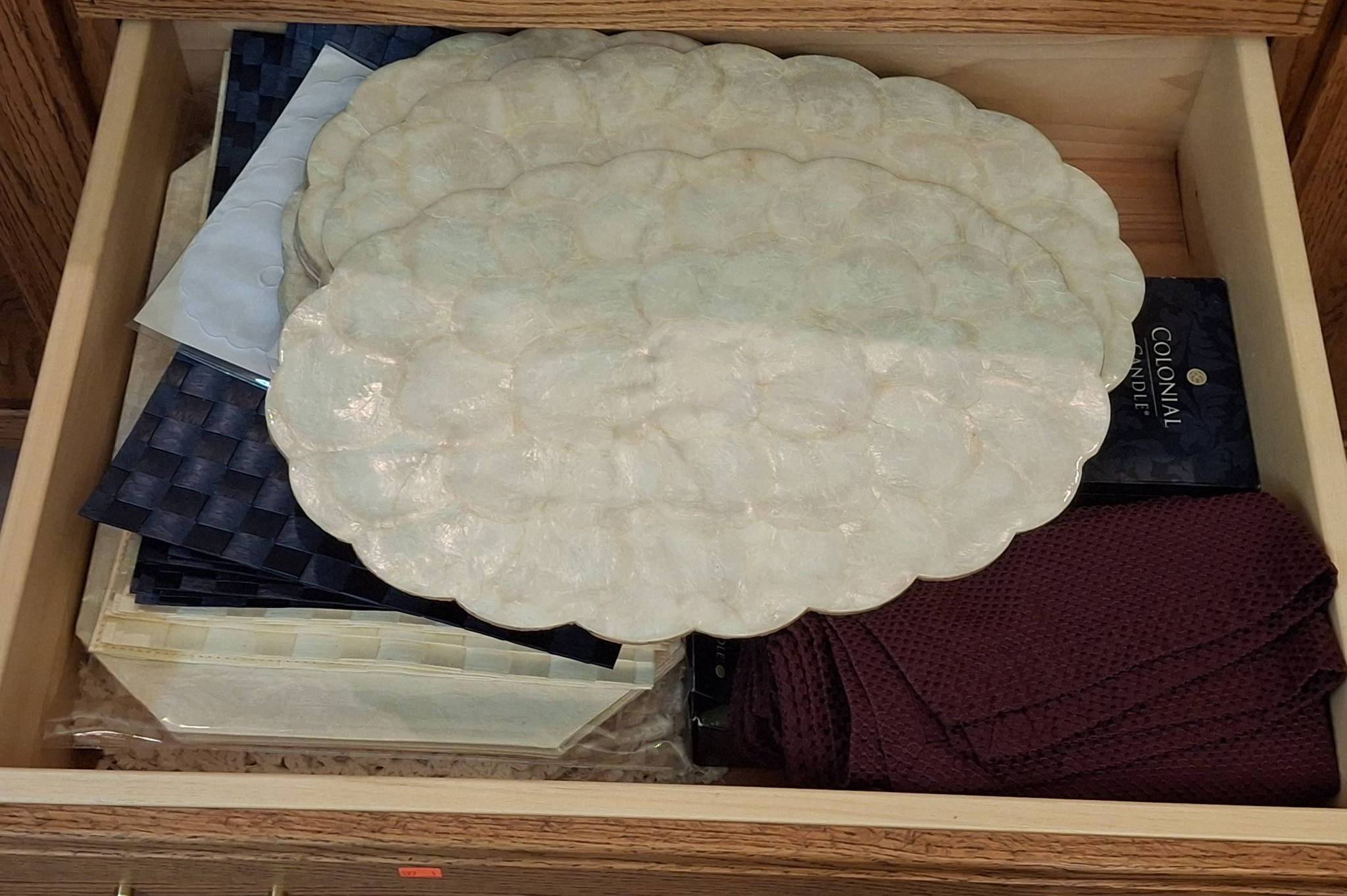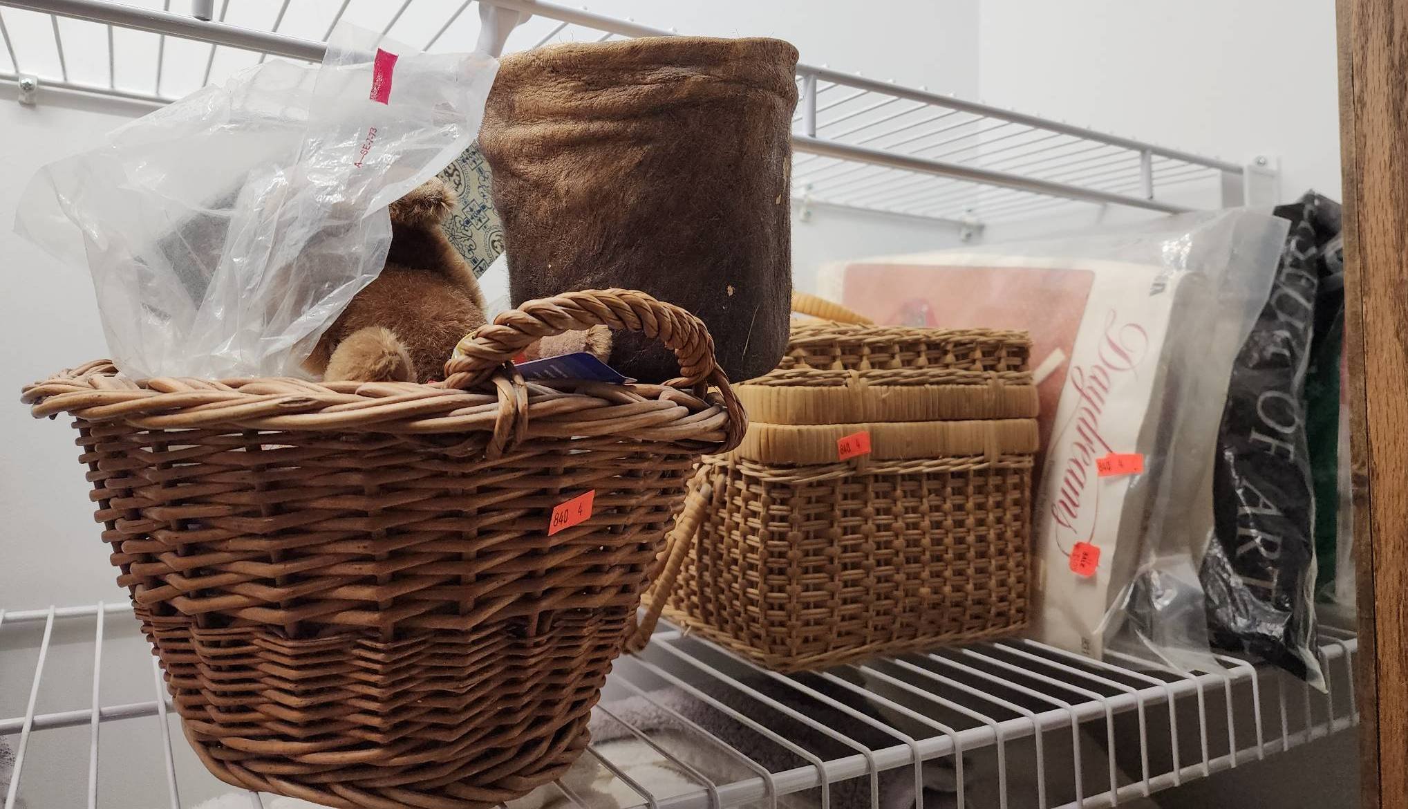 182 Gold-Toned Candlestick, Fabric Baskets, Holiday Napkins, and Hallmark Taper Candles 12?T