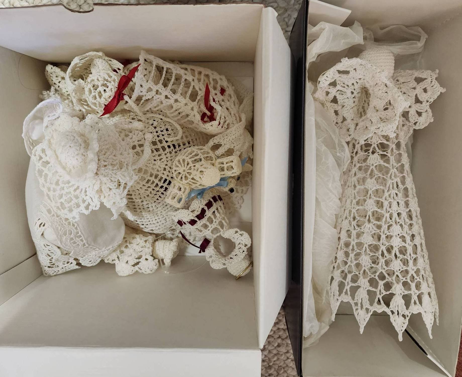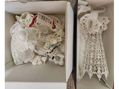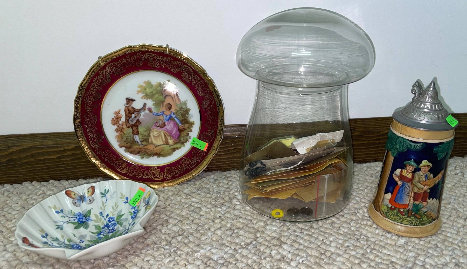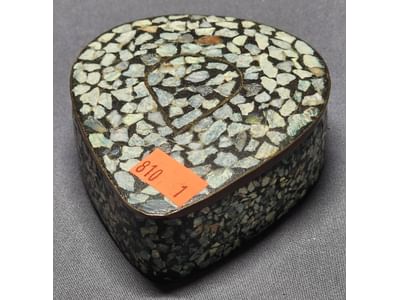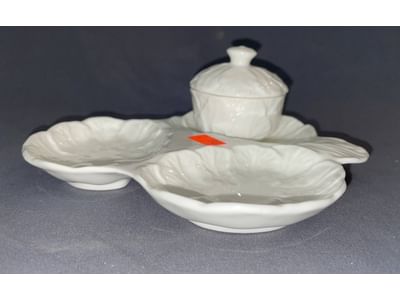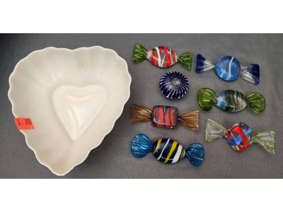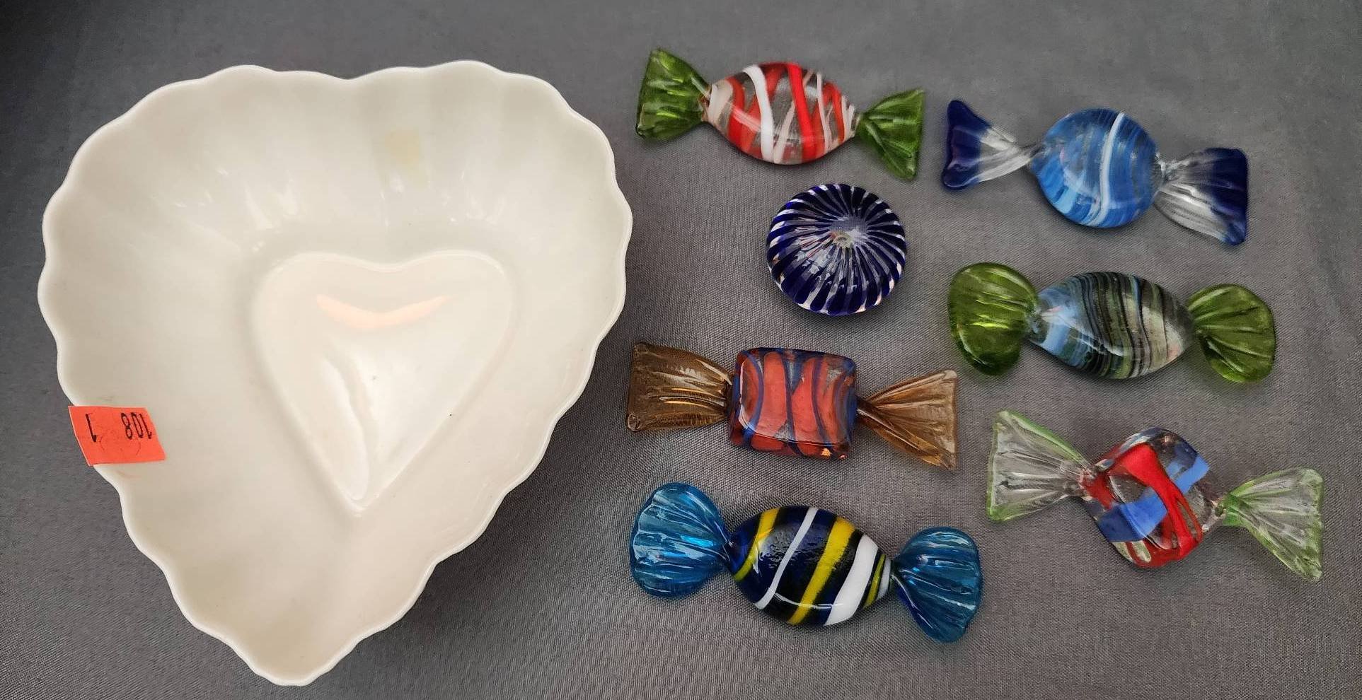 108 Belleek Heart-Shaped Dish, 4.5?x1.5? with 7 Glass Candy Figurines