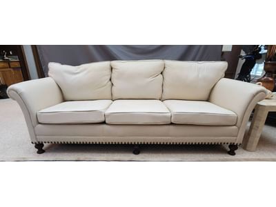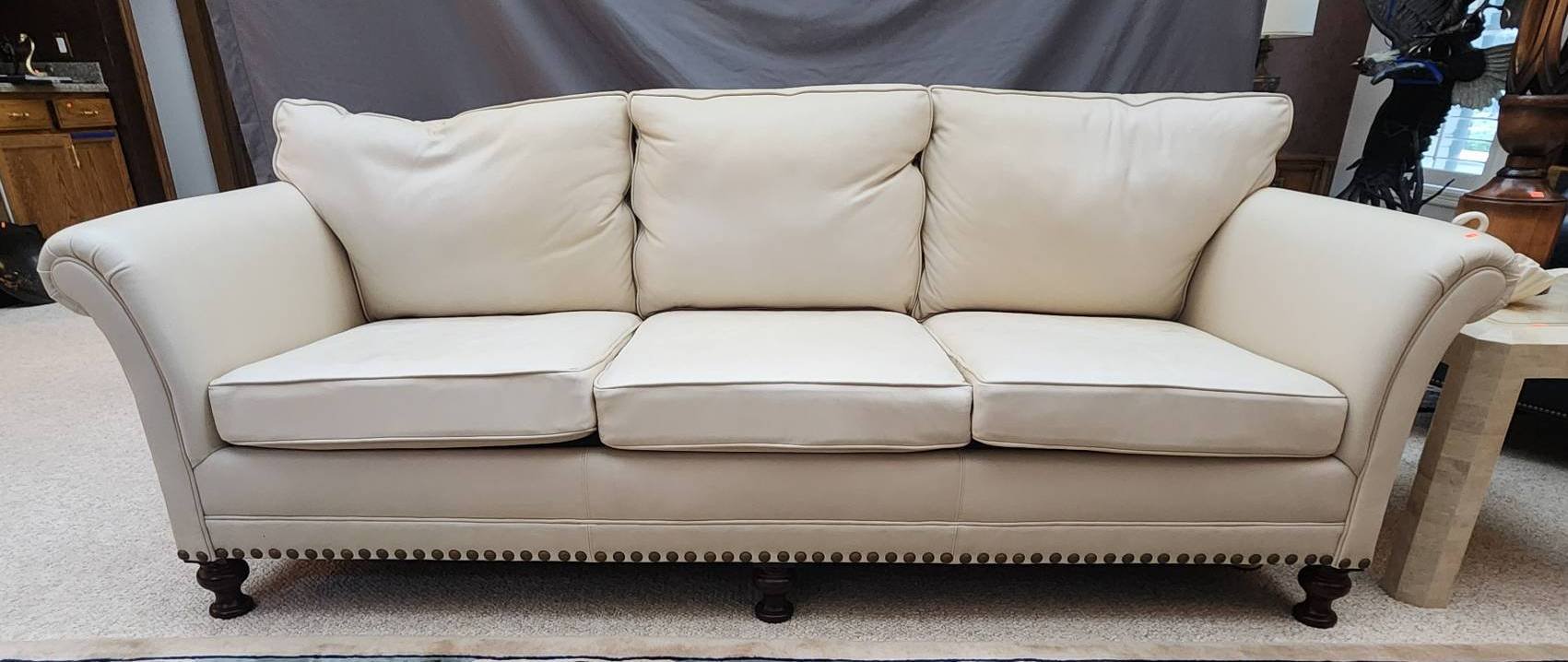 112 Henredon Leather Co. Sofa with Nailhead Trim, 88?x35?x31?