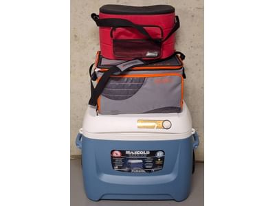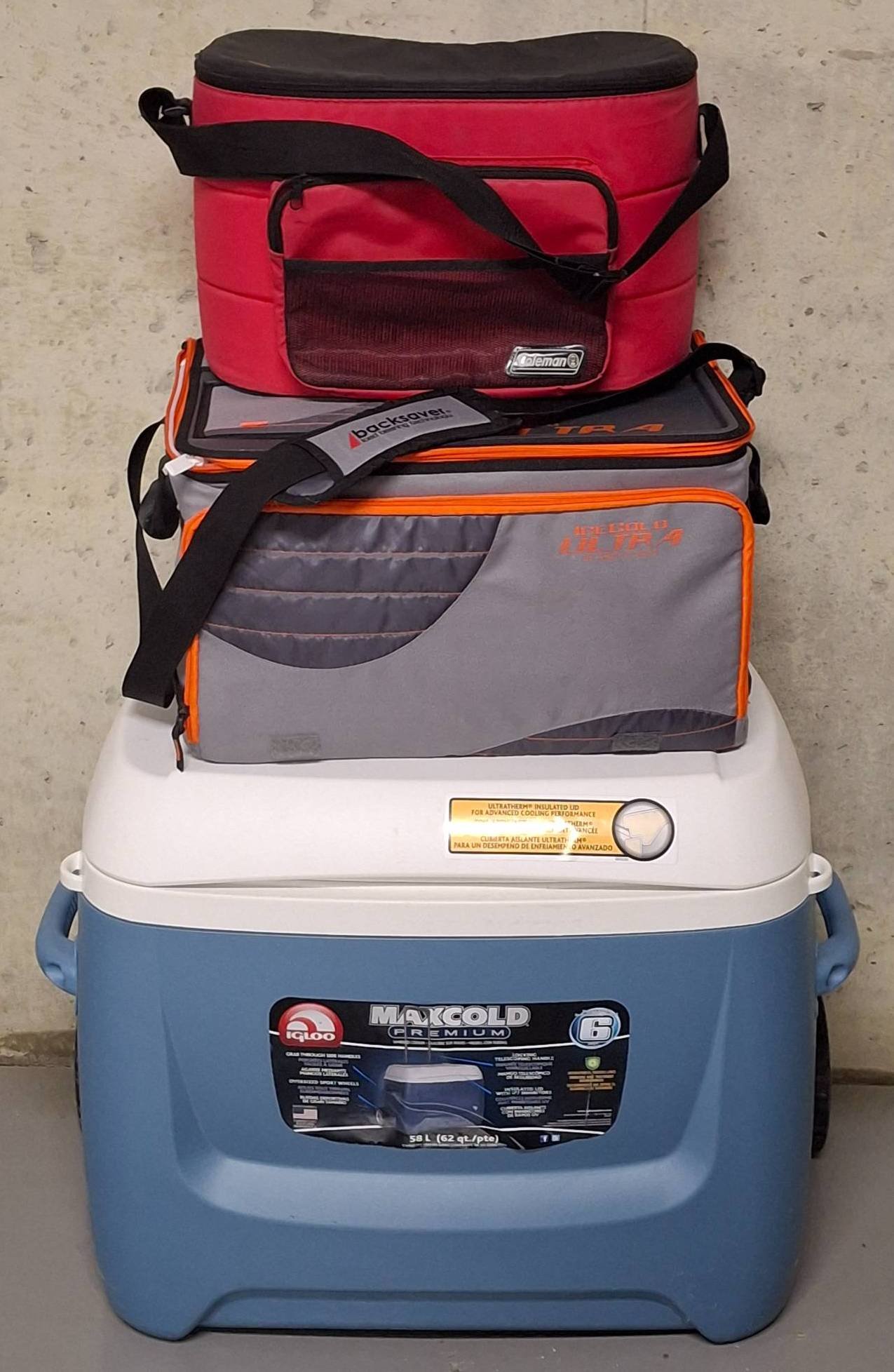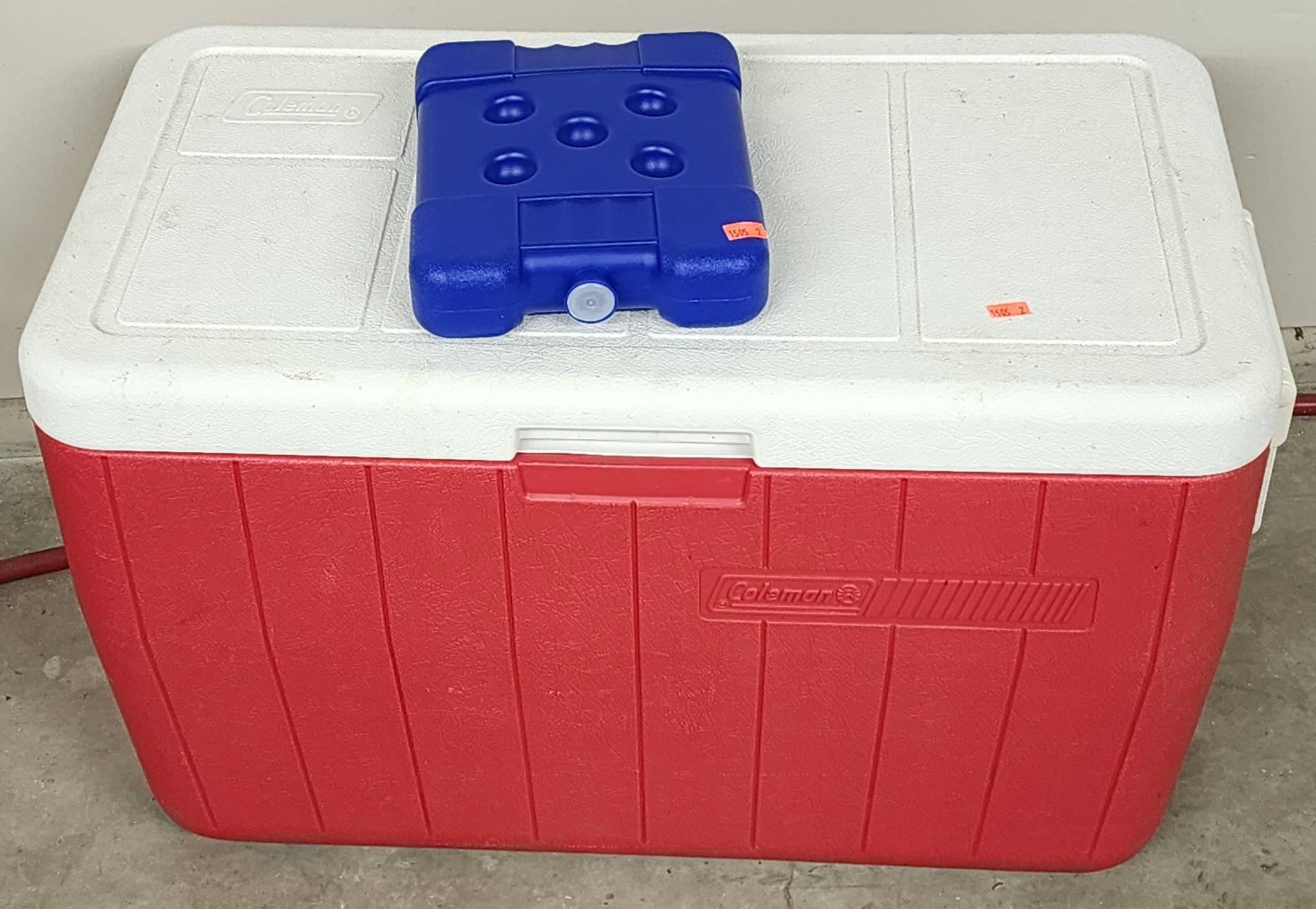 1505 Coleman Red and White Chest Cooler with Drain and Ice Pack