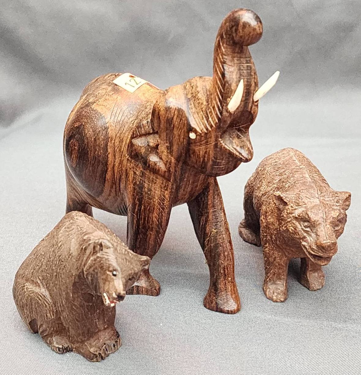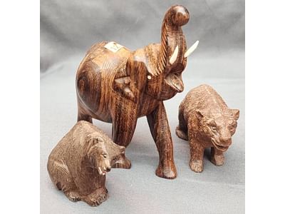 121 Carved Animal Figurines Featuring 2 Bears and 1 Elephant, 2?-4.5?