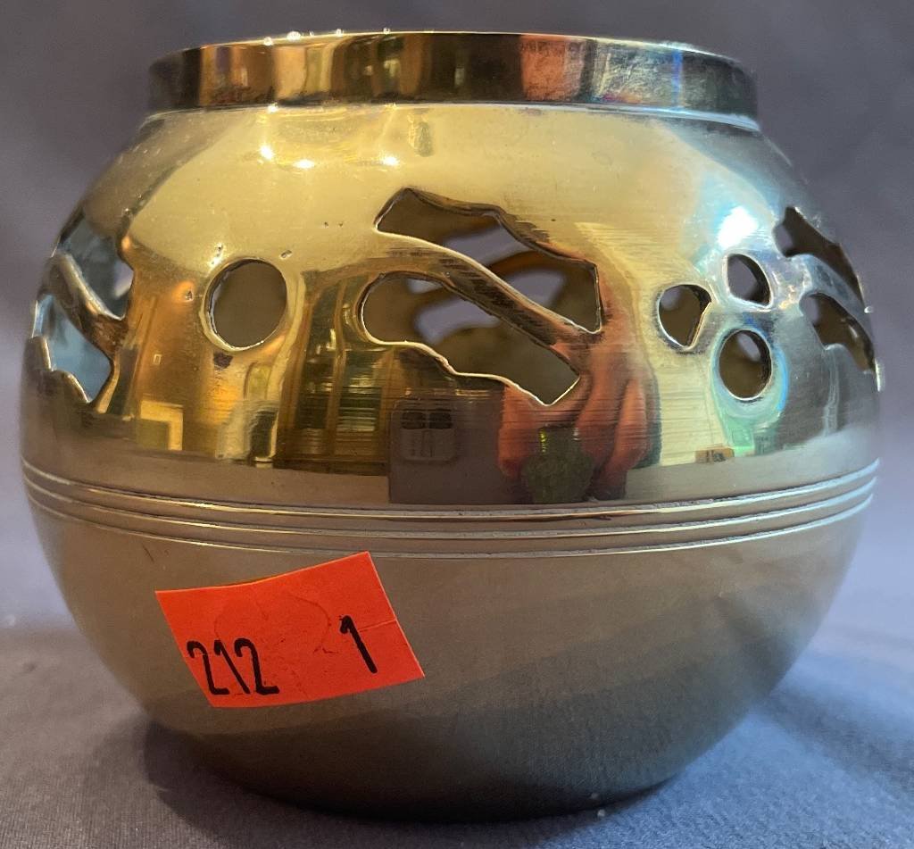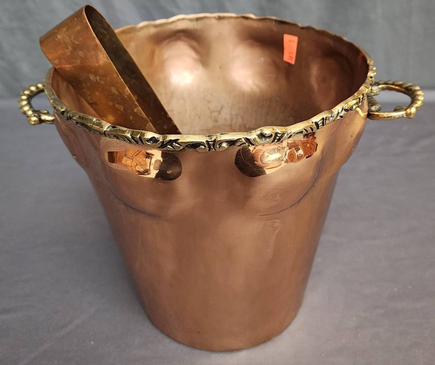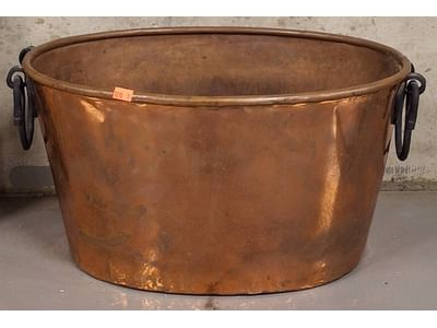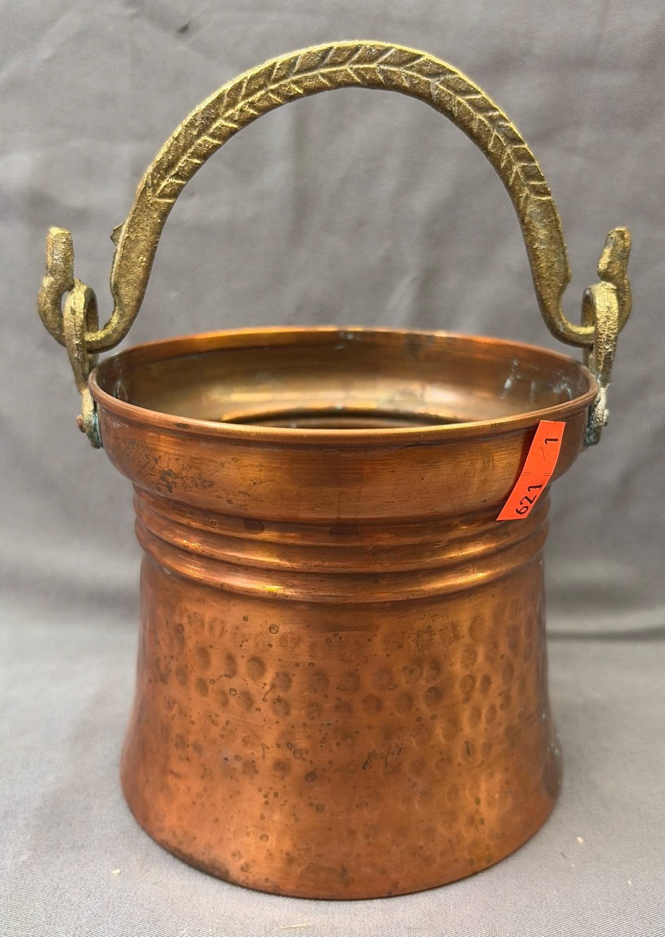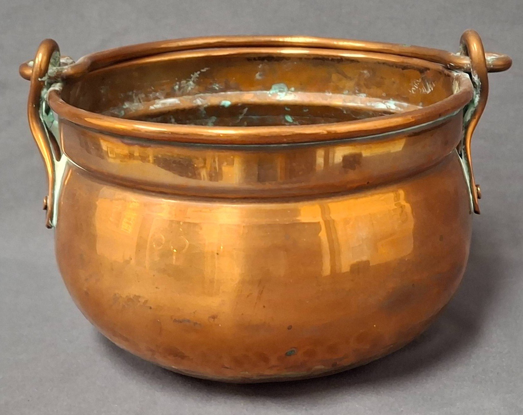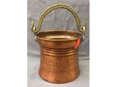 1412 Copper Pot with Swing Handle 5?x3.5? (patina & scratches)