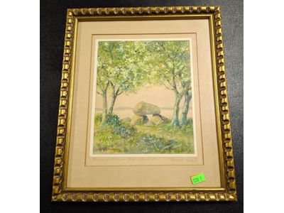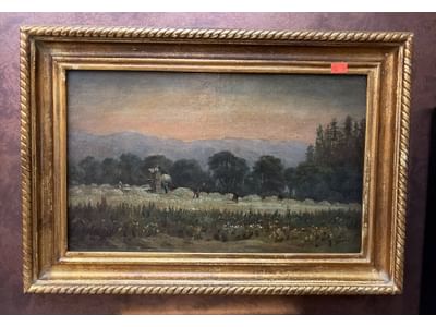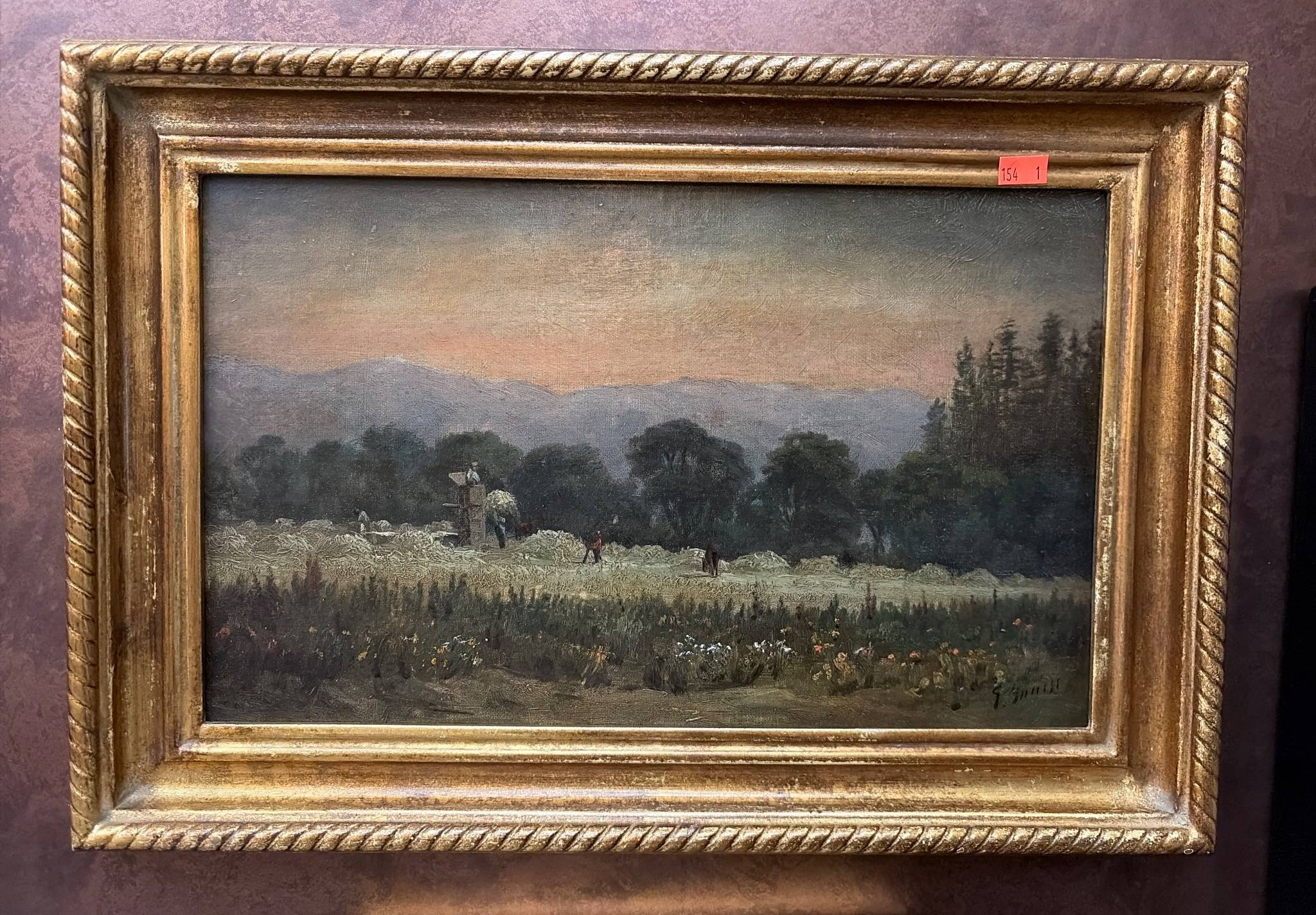 154 Gilded Framed Oil Painting of Pastoral Landscape by G. Giroud, 19”x13”