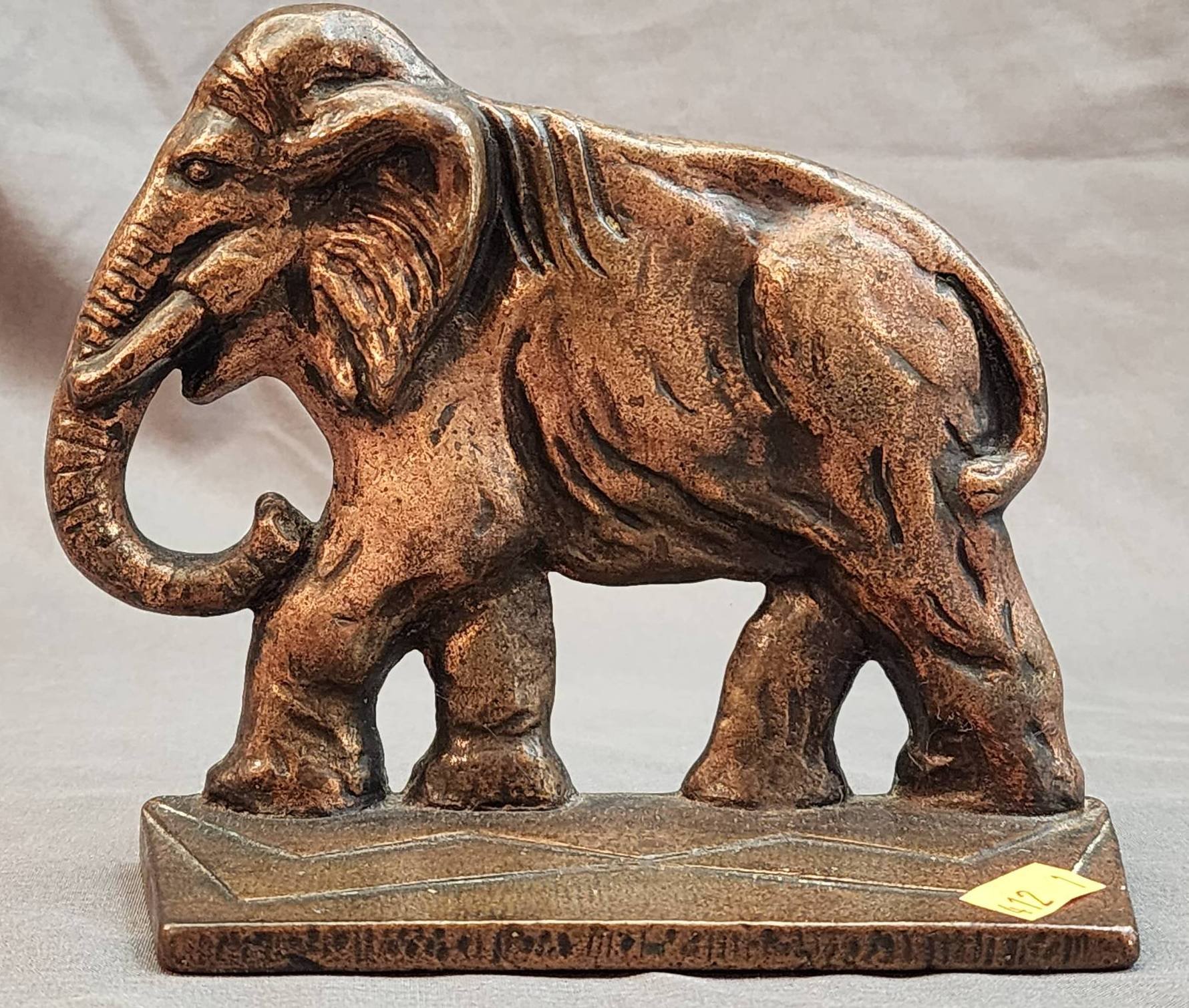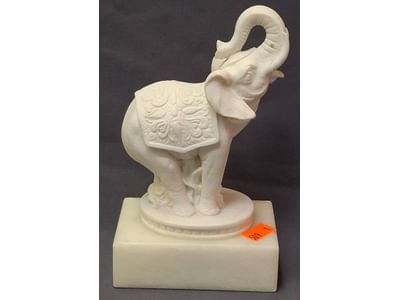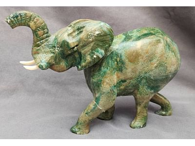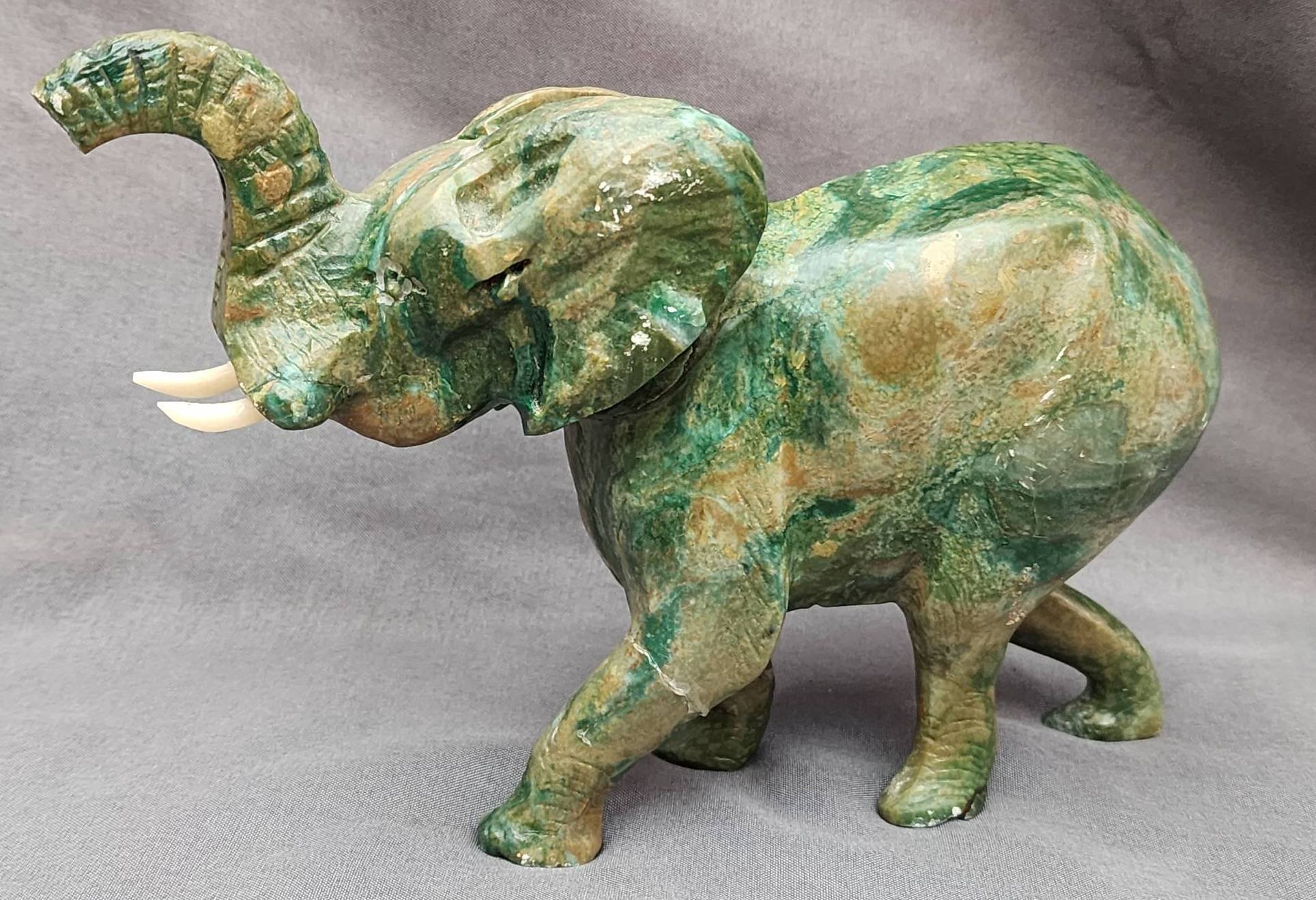 125 Green Stone Elephant Sculpture with Carved Tusks, 7?x5?