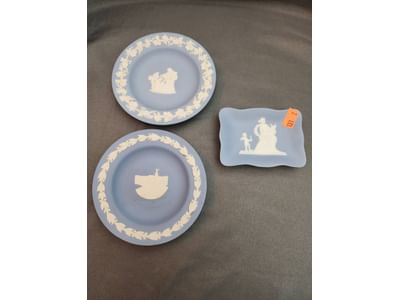 131 Wedgwood Blue Jasperware Plates and Trinket Dish, 3.5? D and 4.5? D
