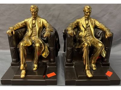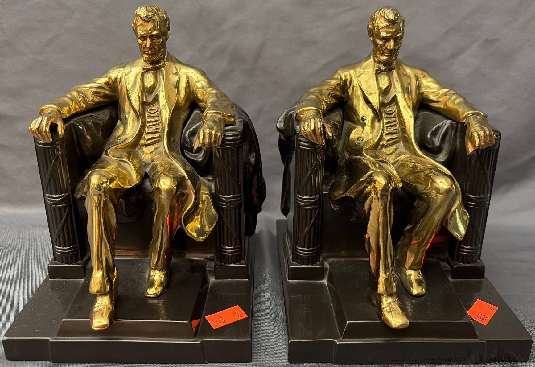 143 2 Gold-Toned Abraham Lincoln Bookends with Resin Bases, 5”x5”x7”