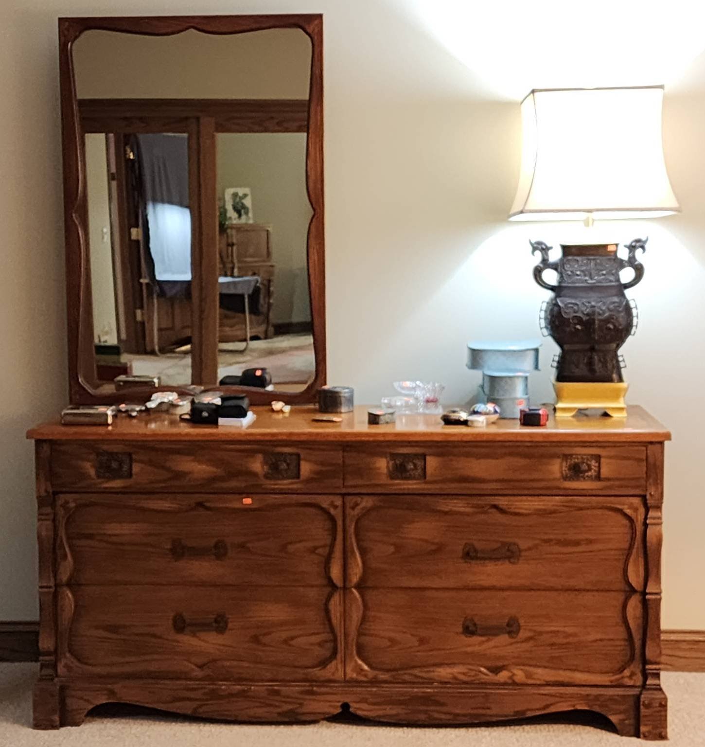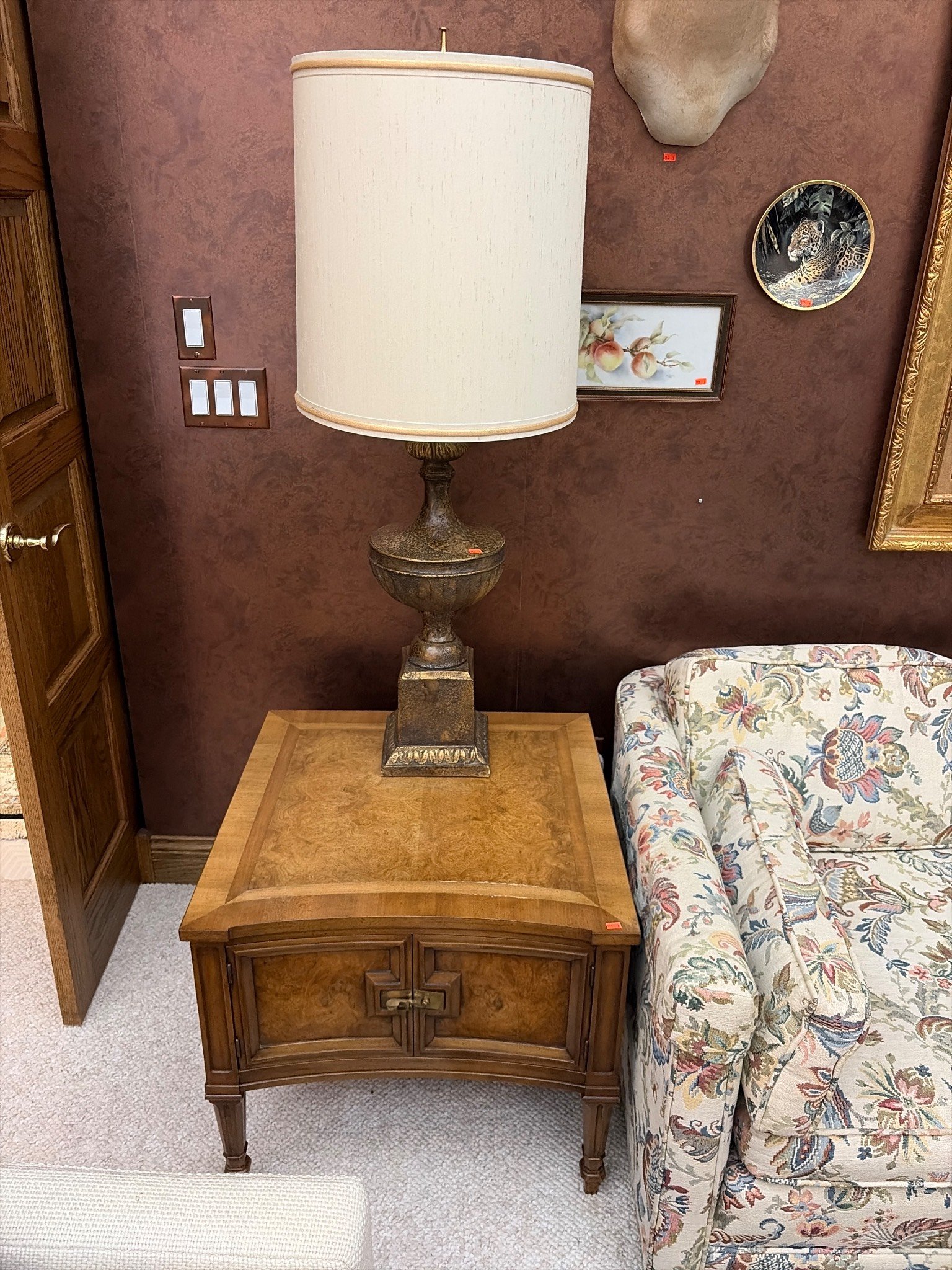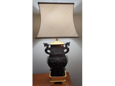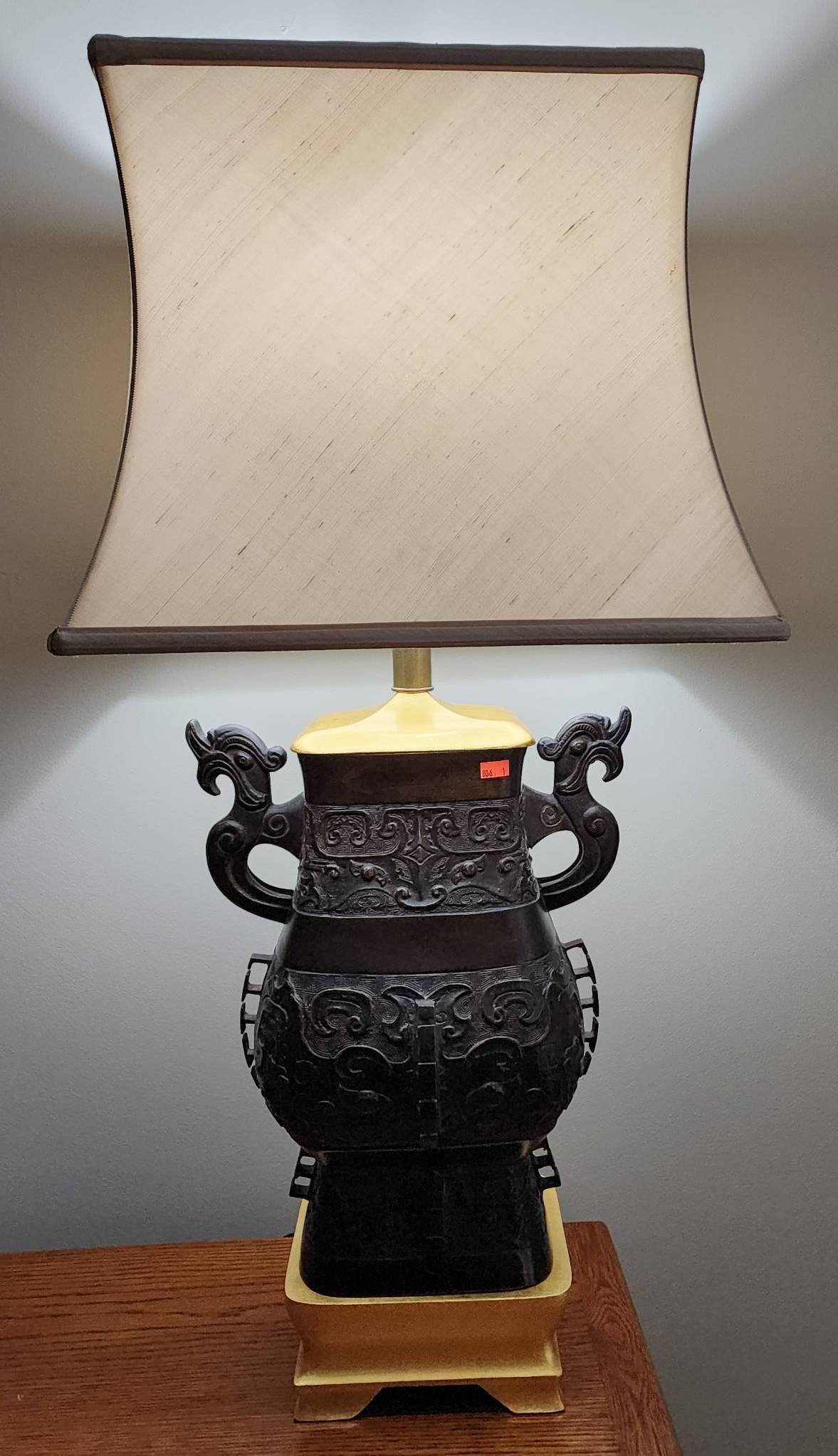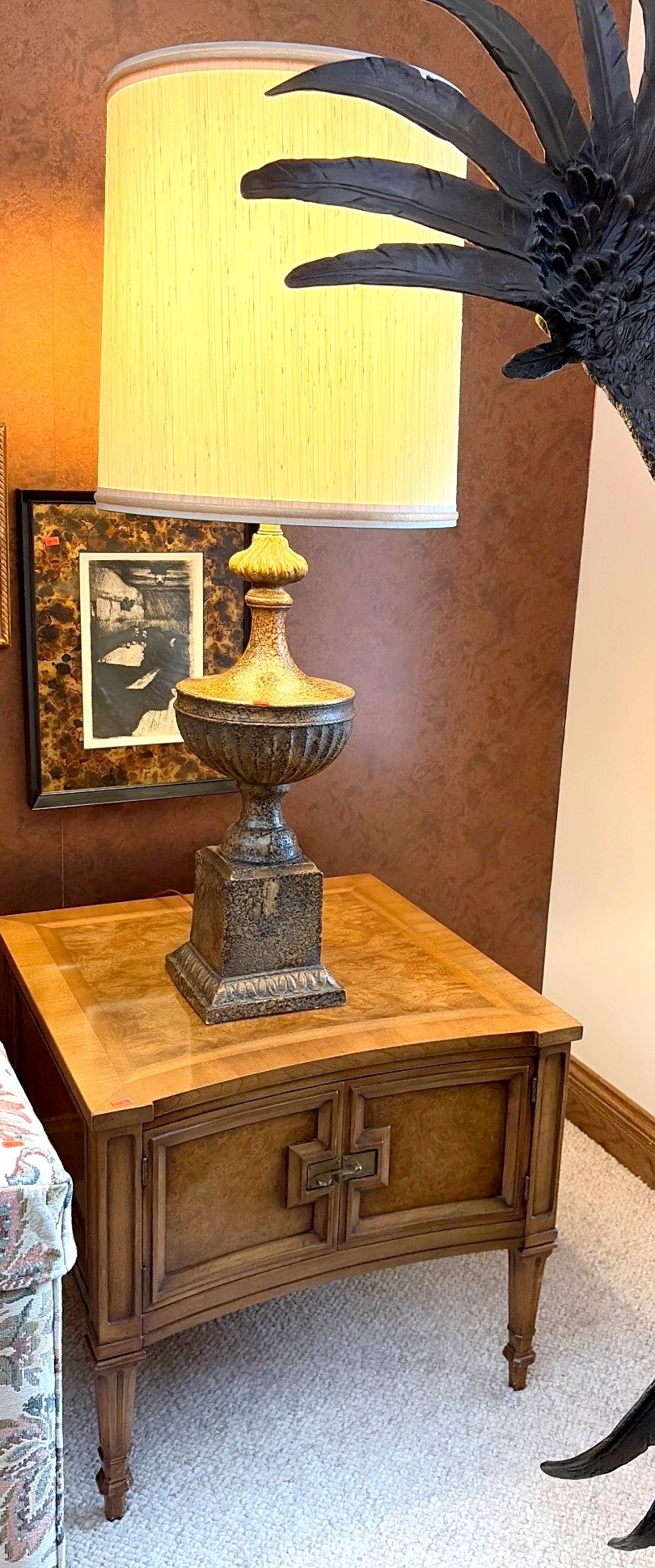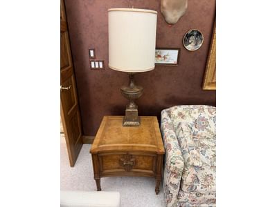 150 Table Lamp With Urn-Shaped Base & Wood Side Table With Storage, Lamp Tested, Works, 43”H – Table 25”x25”x22”