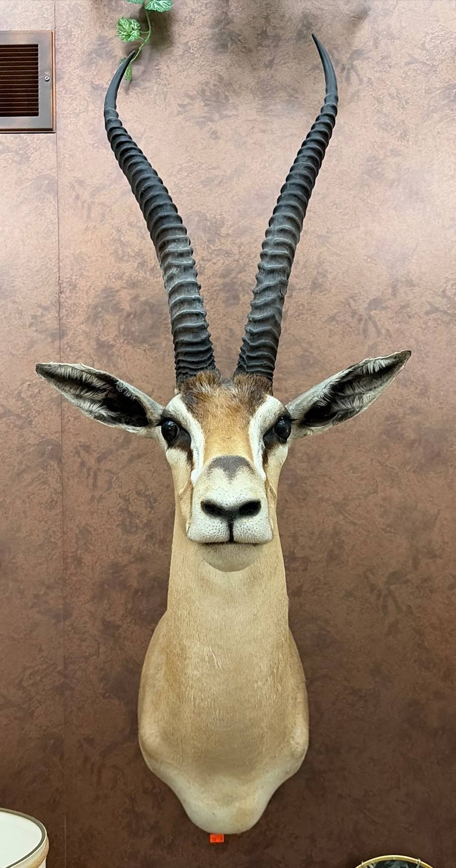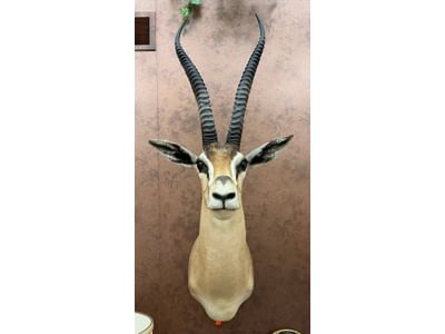 158 Taxidermy Gazelle Shoulder Mount With Ribbed Horns, 43”x24”x11”