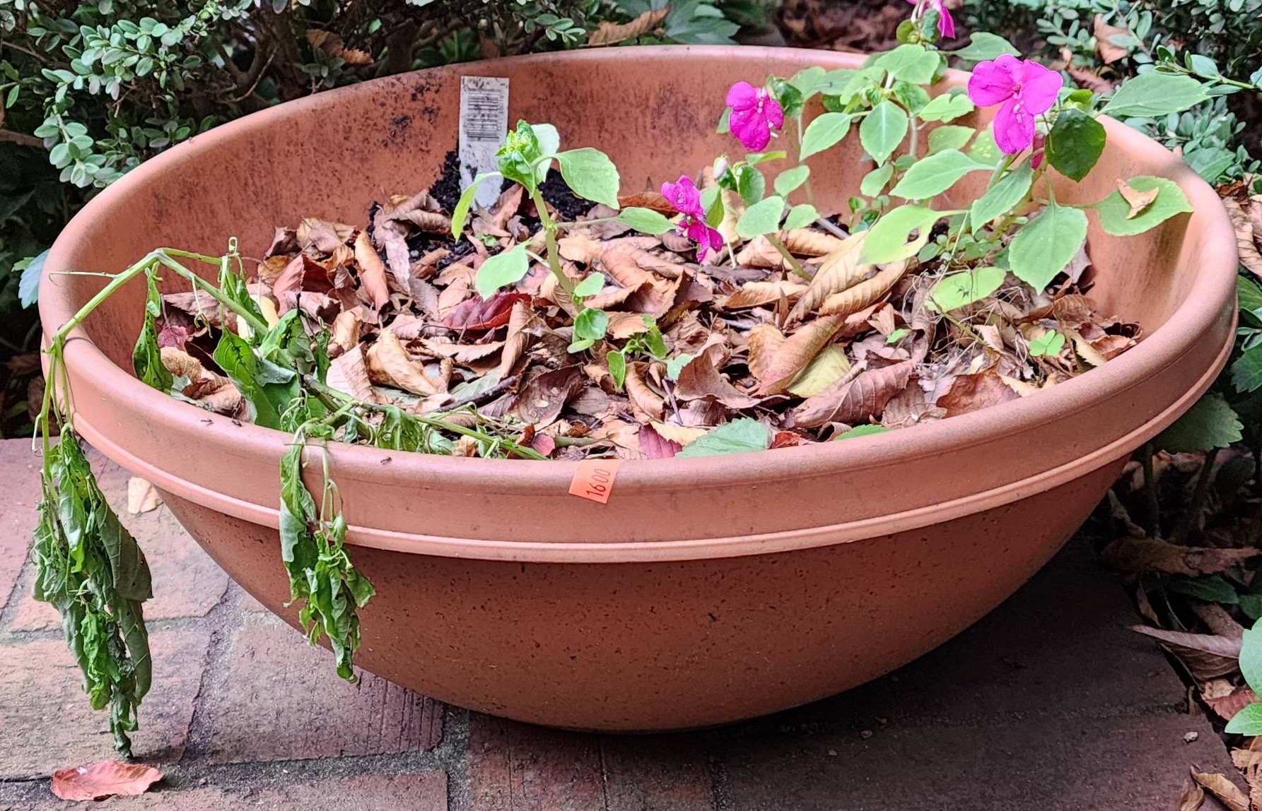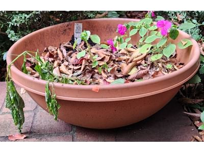 1600 Terracotta Planter Bowl with Soil and Flowers, 18?x8?
