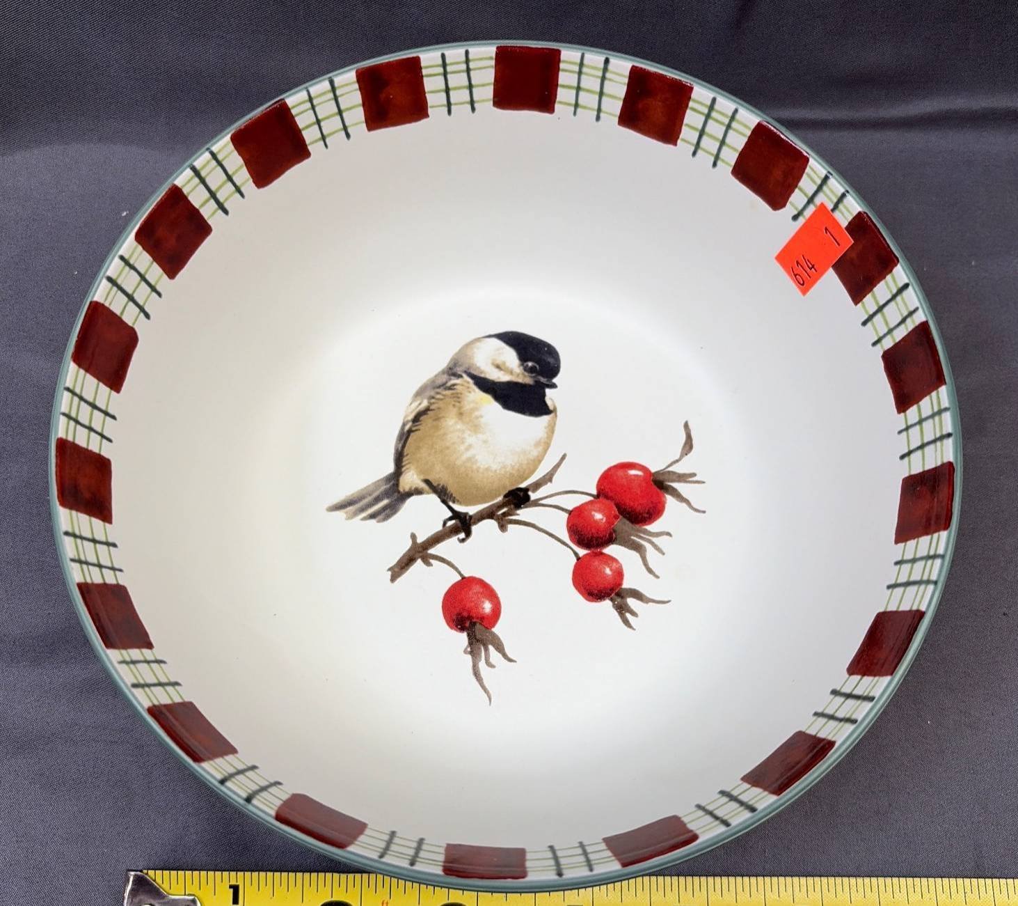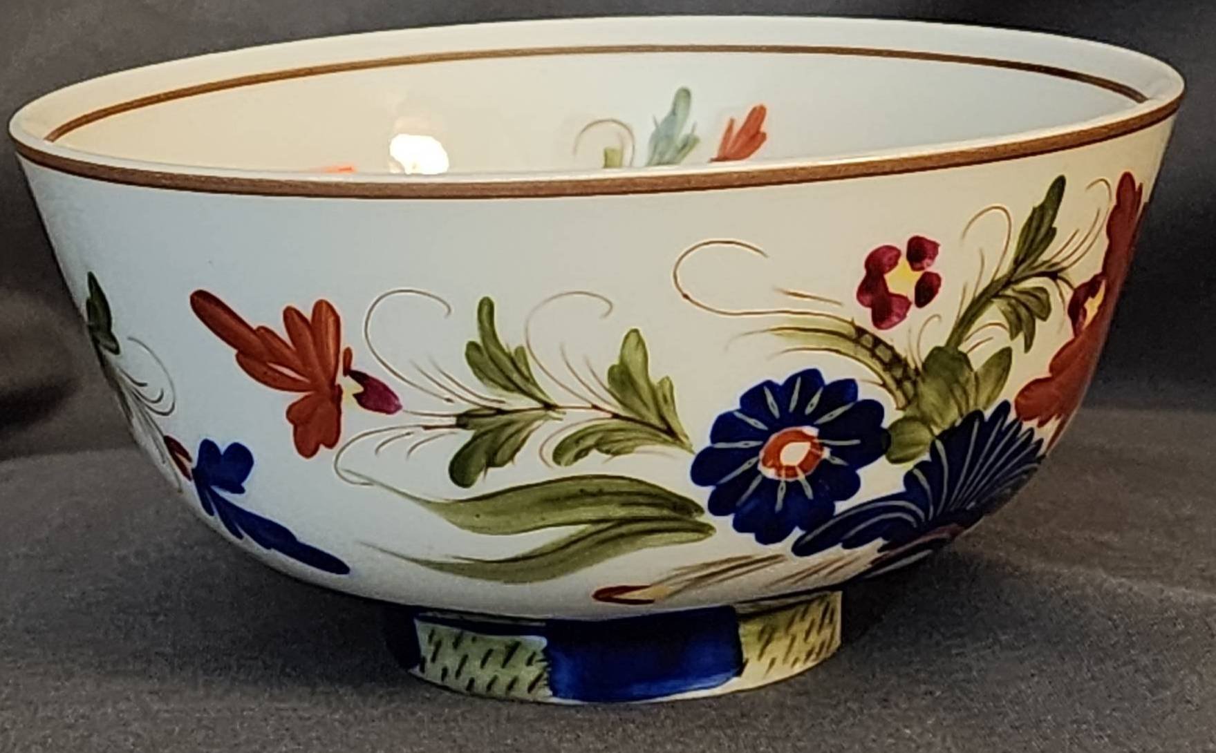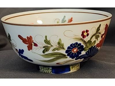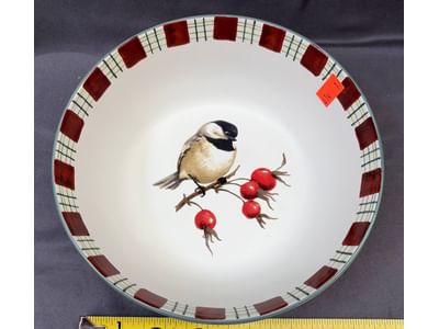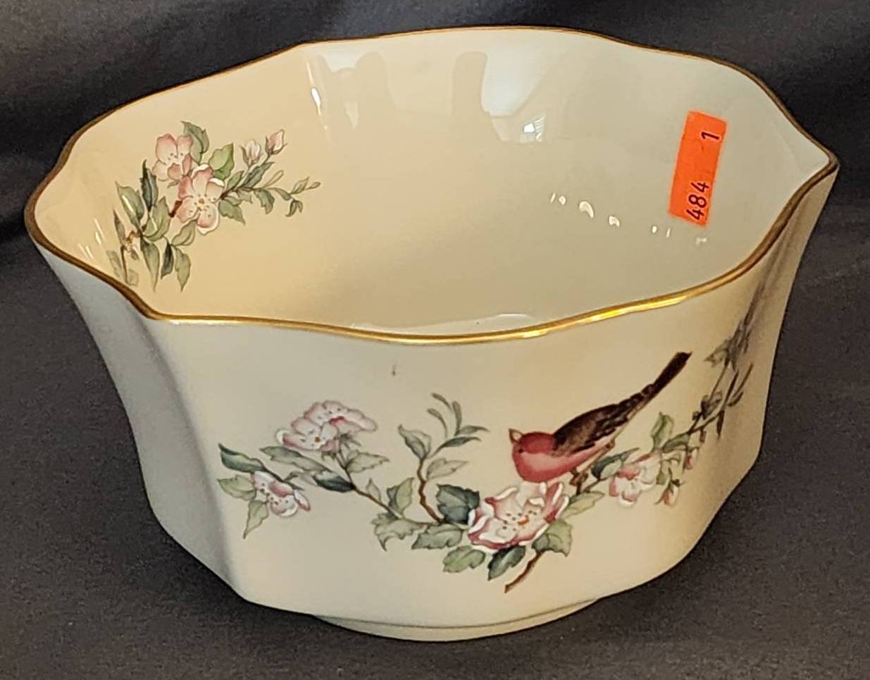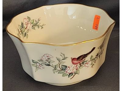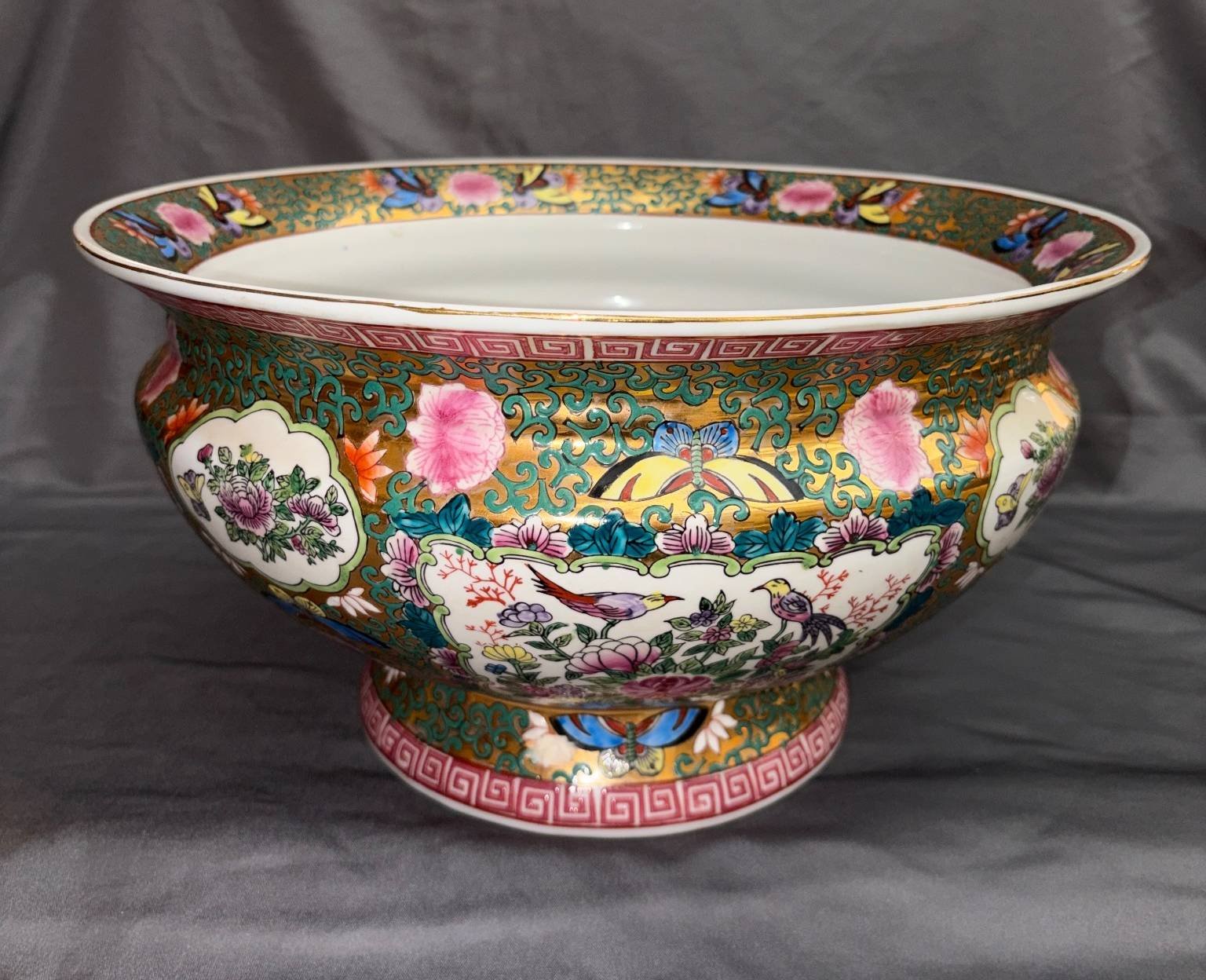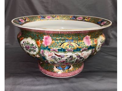 162 Porcelain Bowl with Polychrome Floral Bird & Butterfly Motif, 8”Hx14.5”D