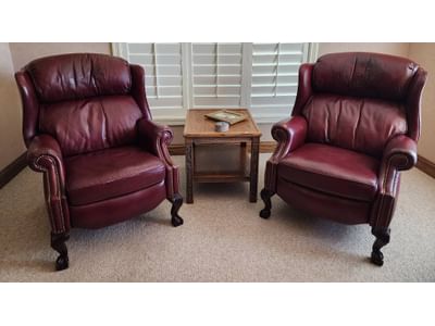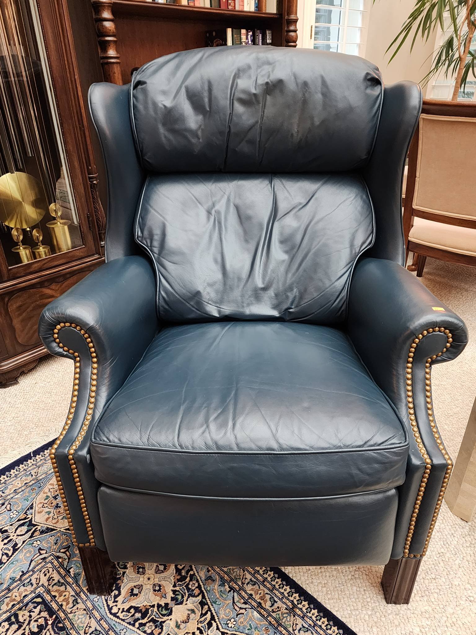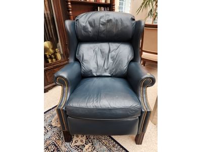 100 Hancock & Moore Recliner Chair in Blue Leather Upholstery, 29?x32?x41?