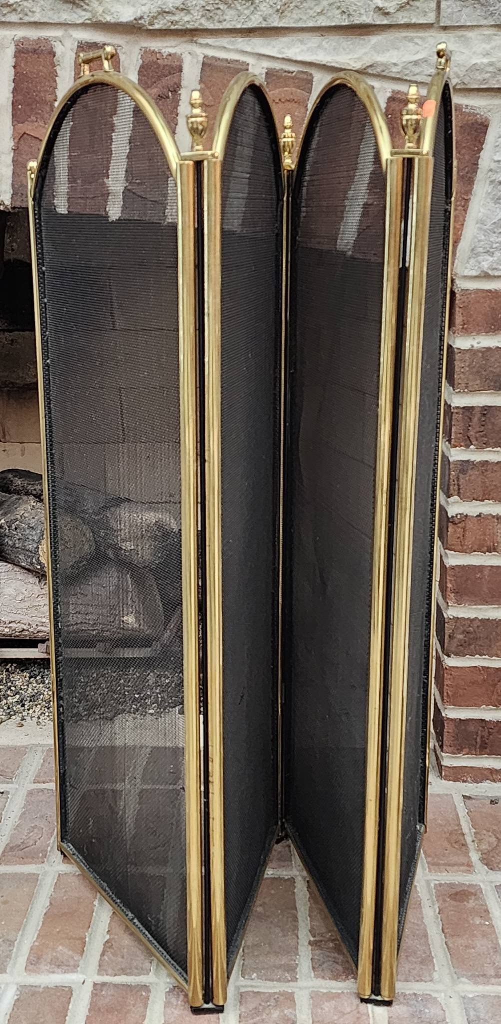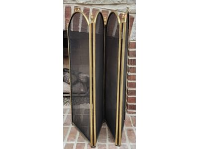 165 3-Panel Black Mesh Fireplace Screen With Brass Finish