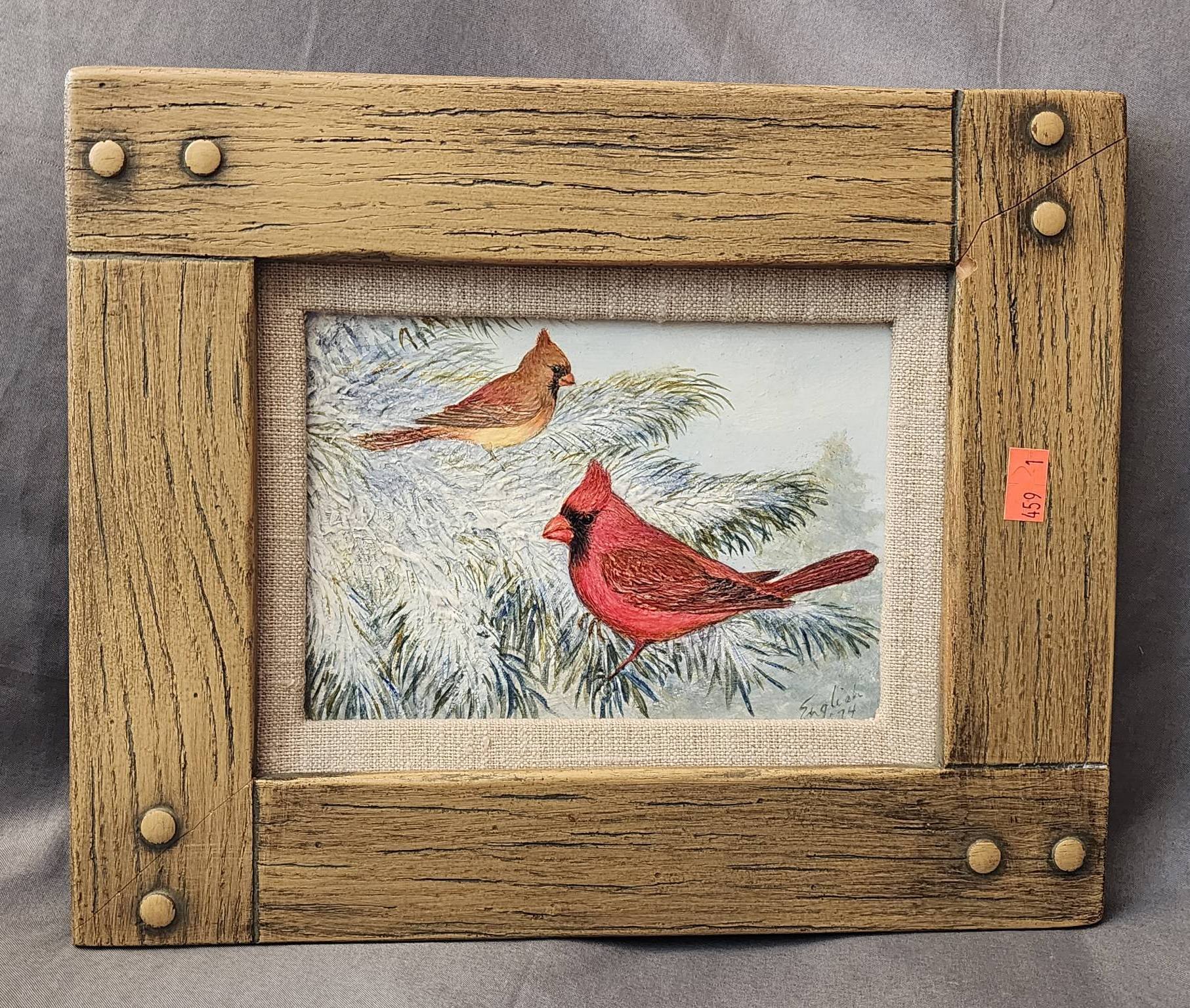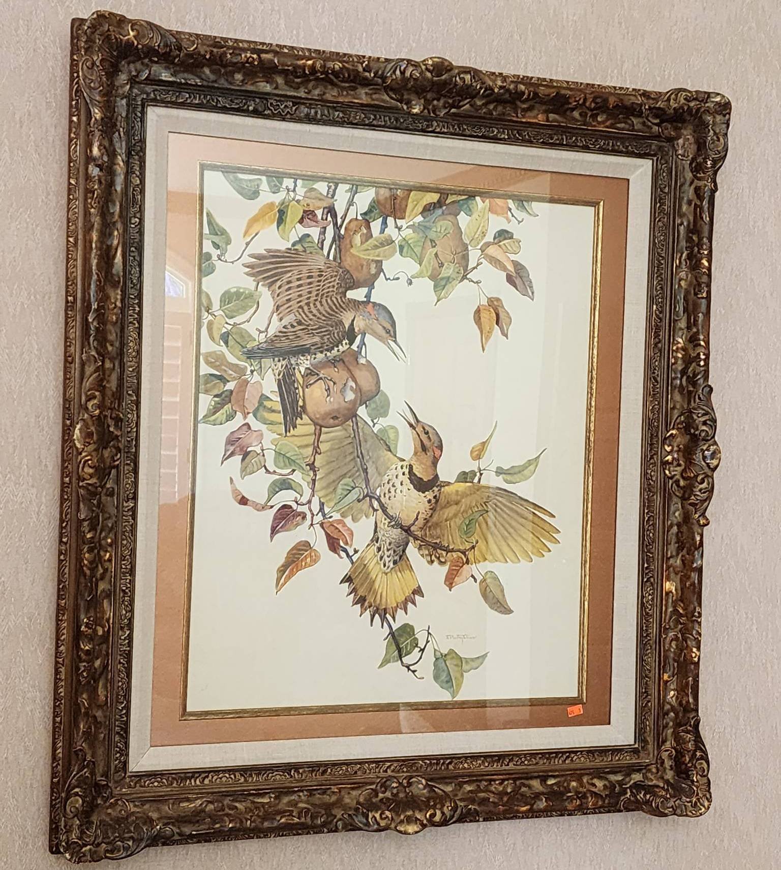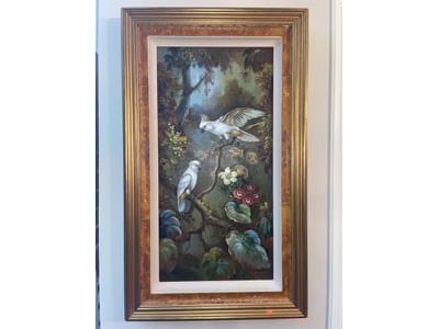 167 Framed Oil Painting Depicting Two Cockatoos, Signed by Artist, L. Richard, See pics for signature, 25.5”x45”