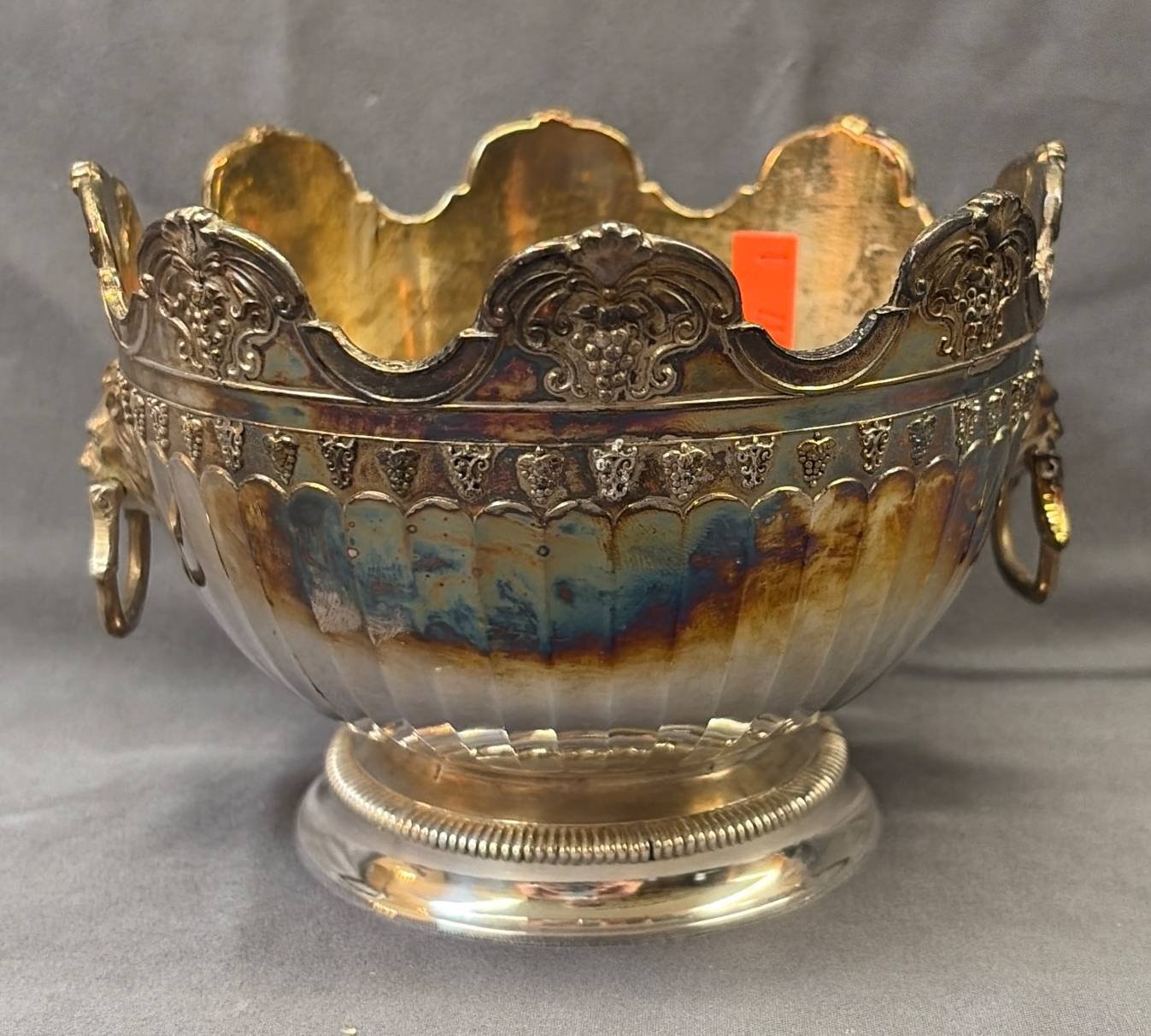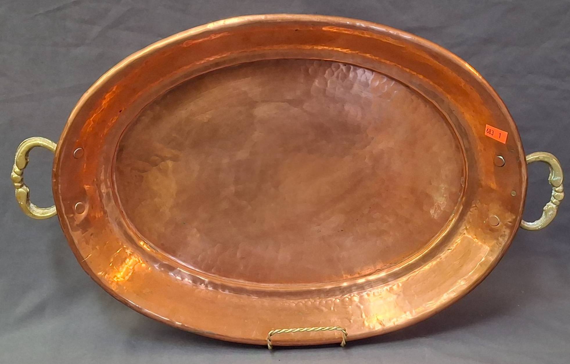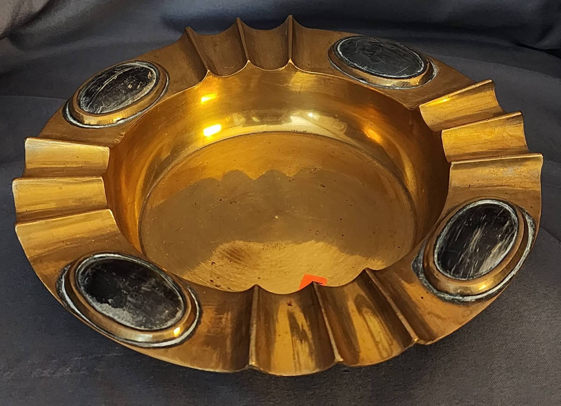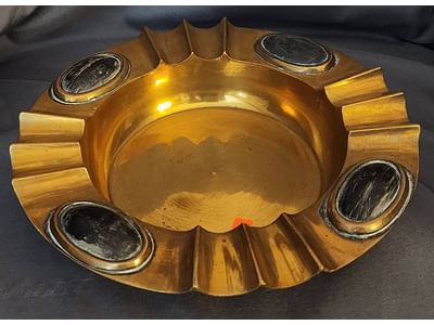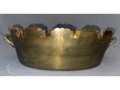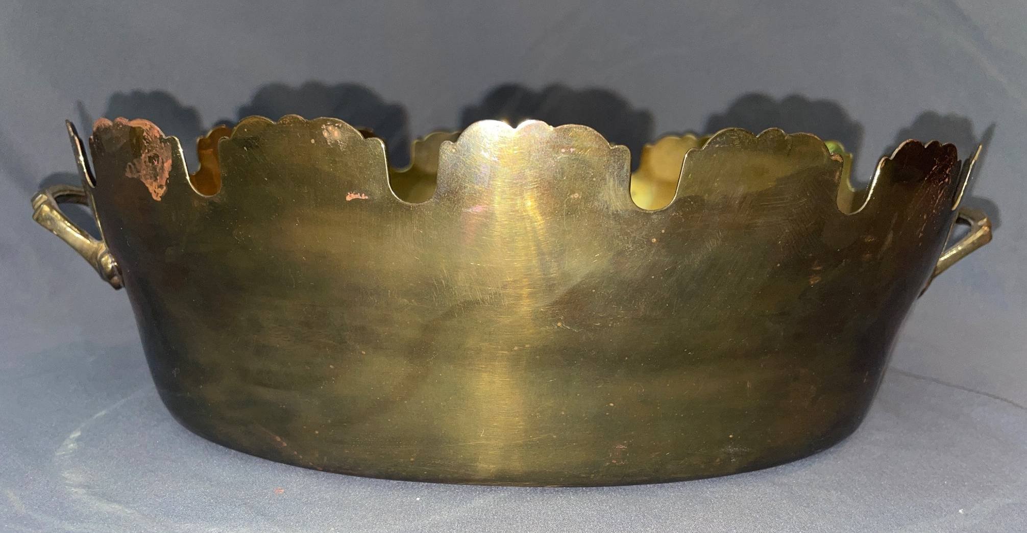 179 Brass Oval Bowl with Scalloped Rim and Side Handles, 4.5? T x 11? W