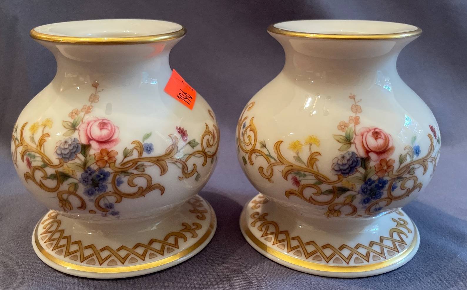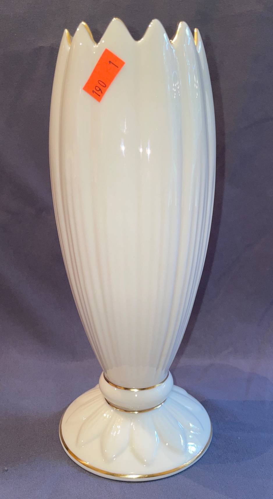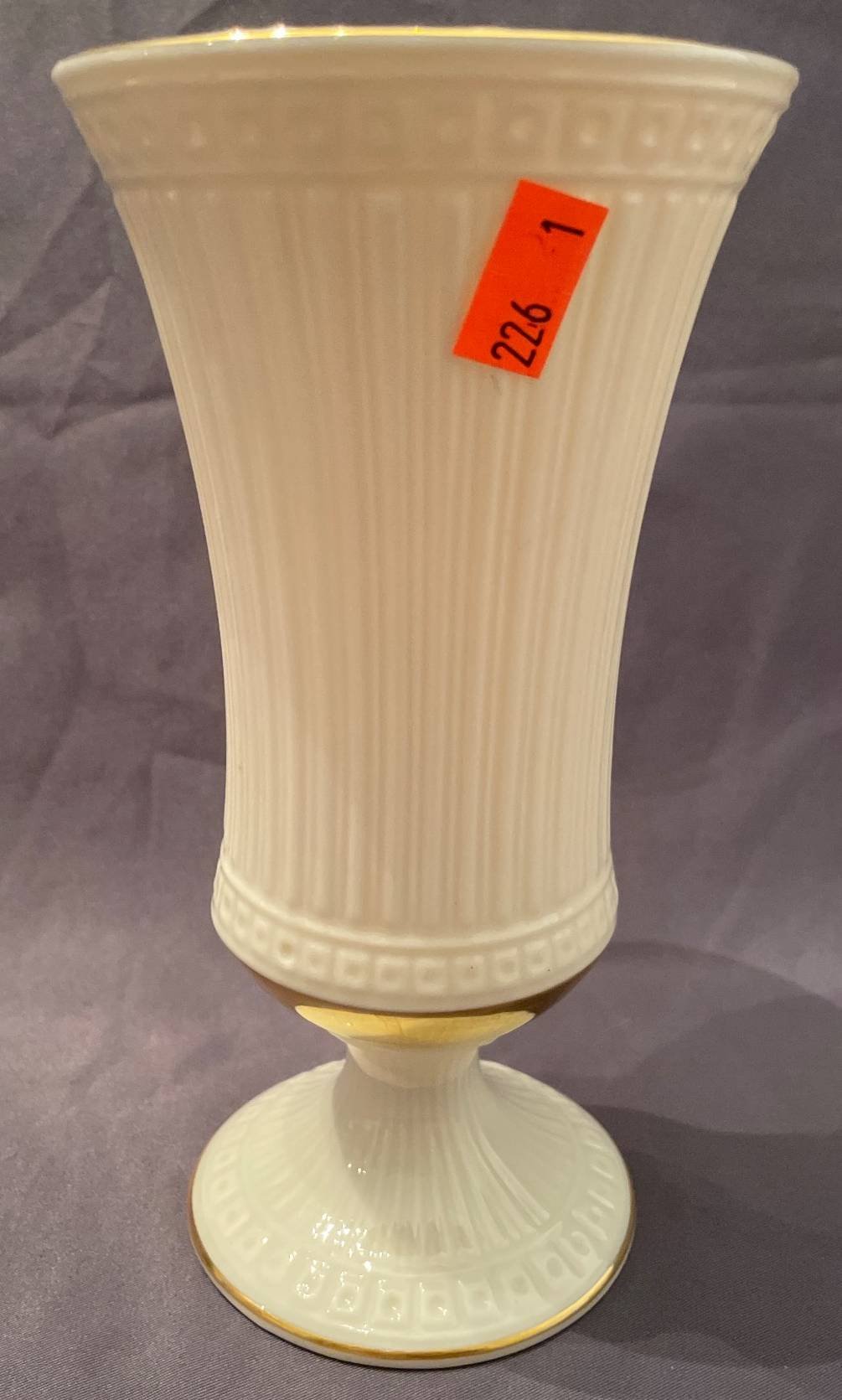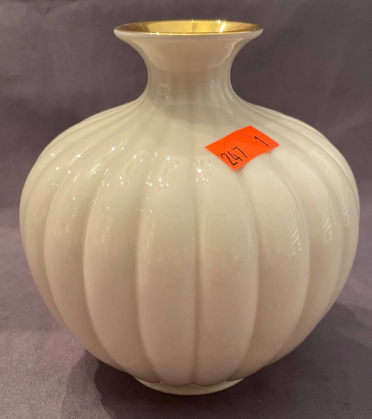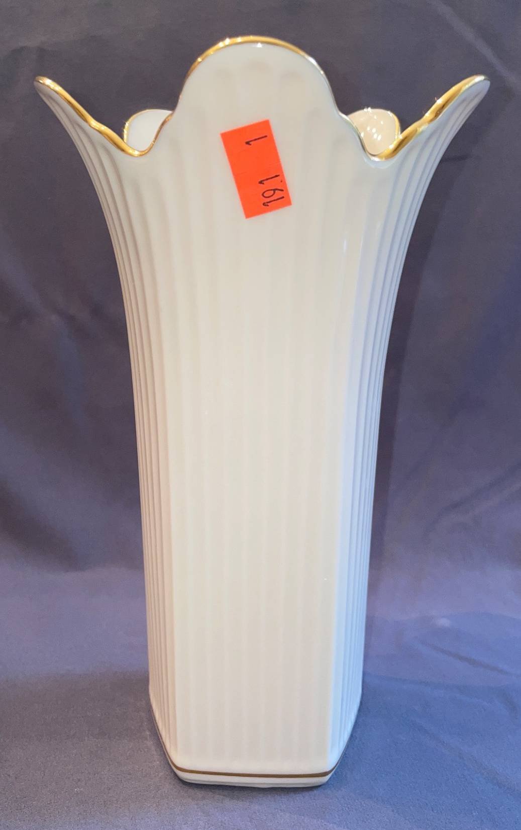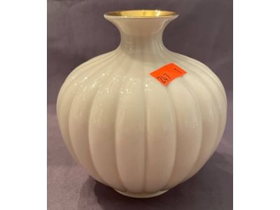 190 Lenox Porcelain Vase with Gold Trim and Fluted Design, 9”H