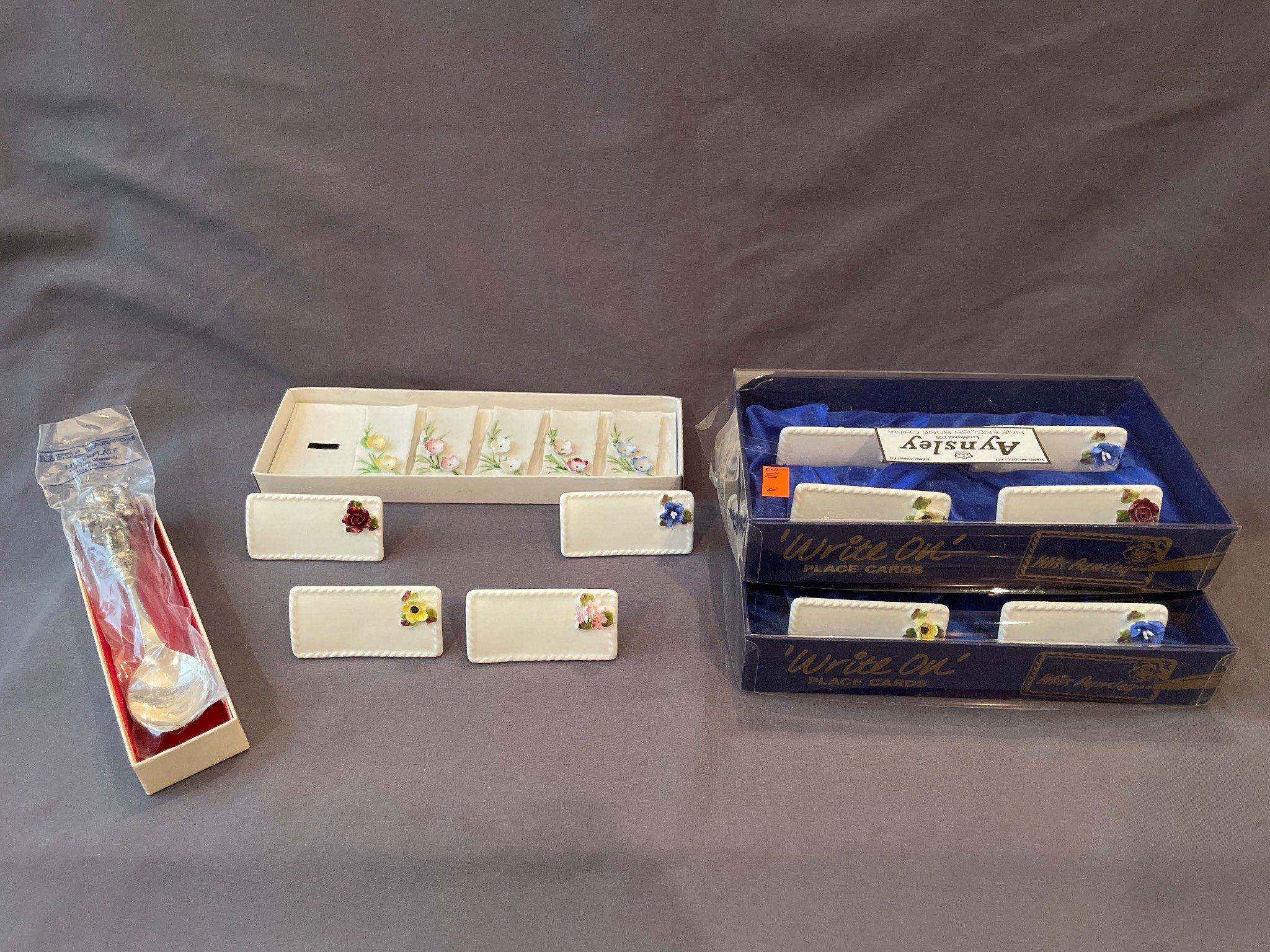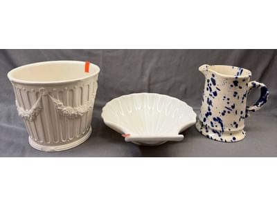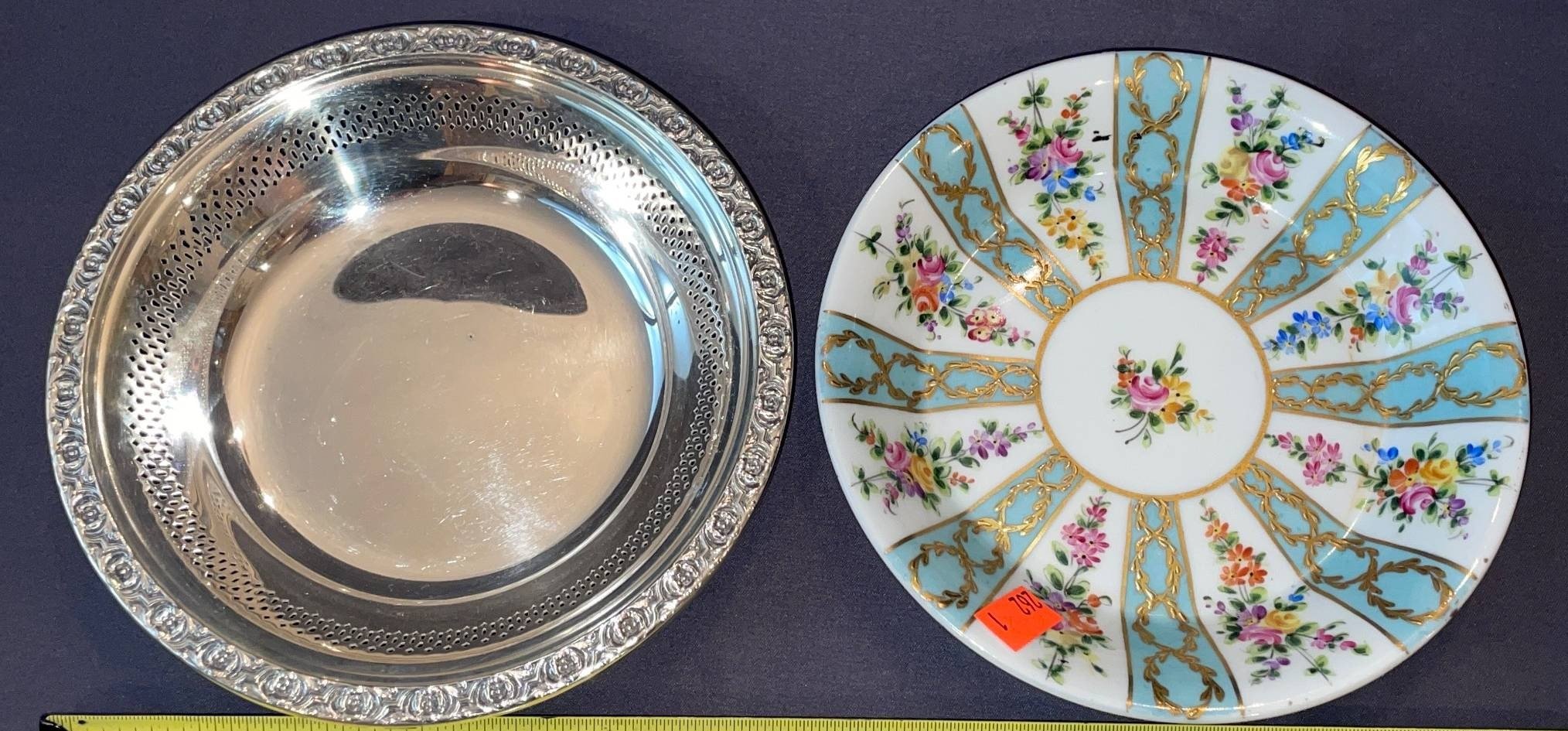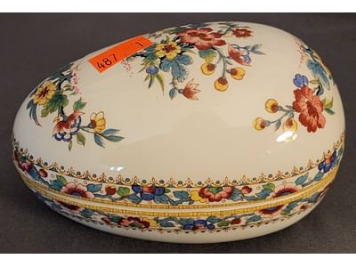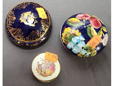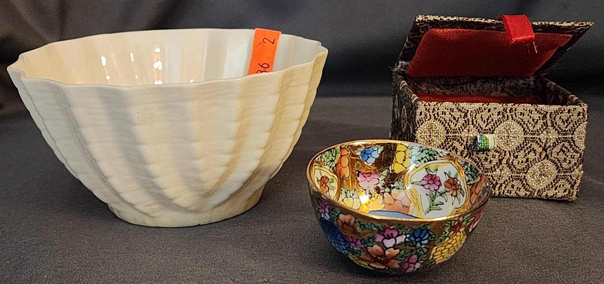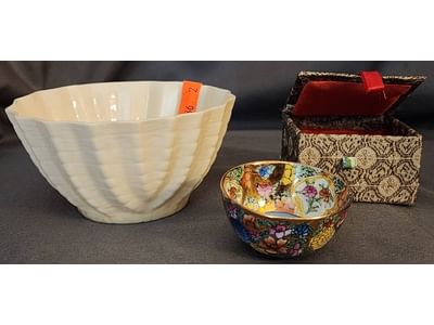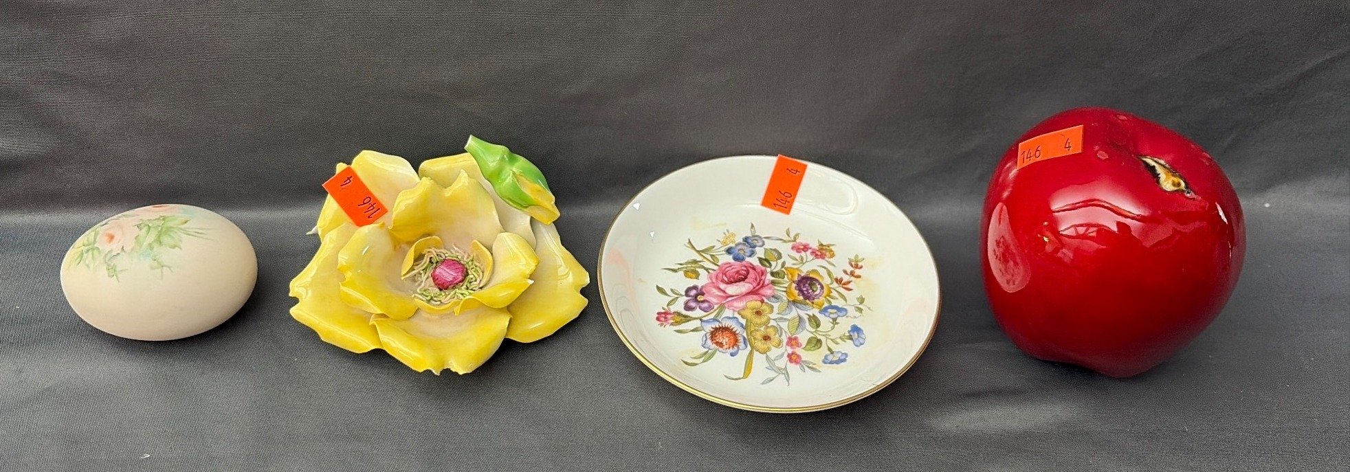 146 Collectibles with Painted Porcelain Flower & Egg by E. Windsor, Royal Worcester Fine Bone China Dish, and Glazed Apple