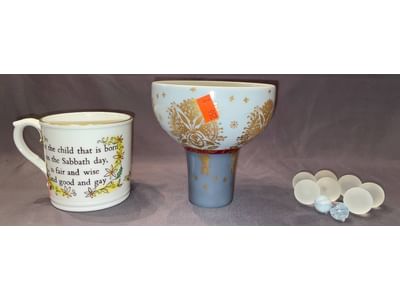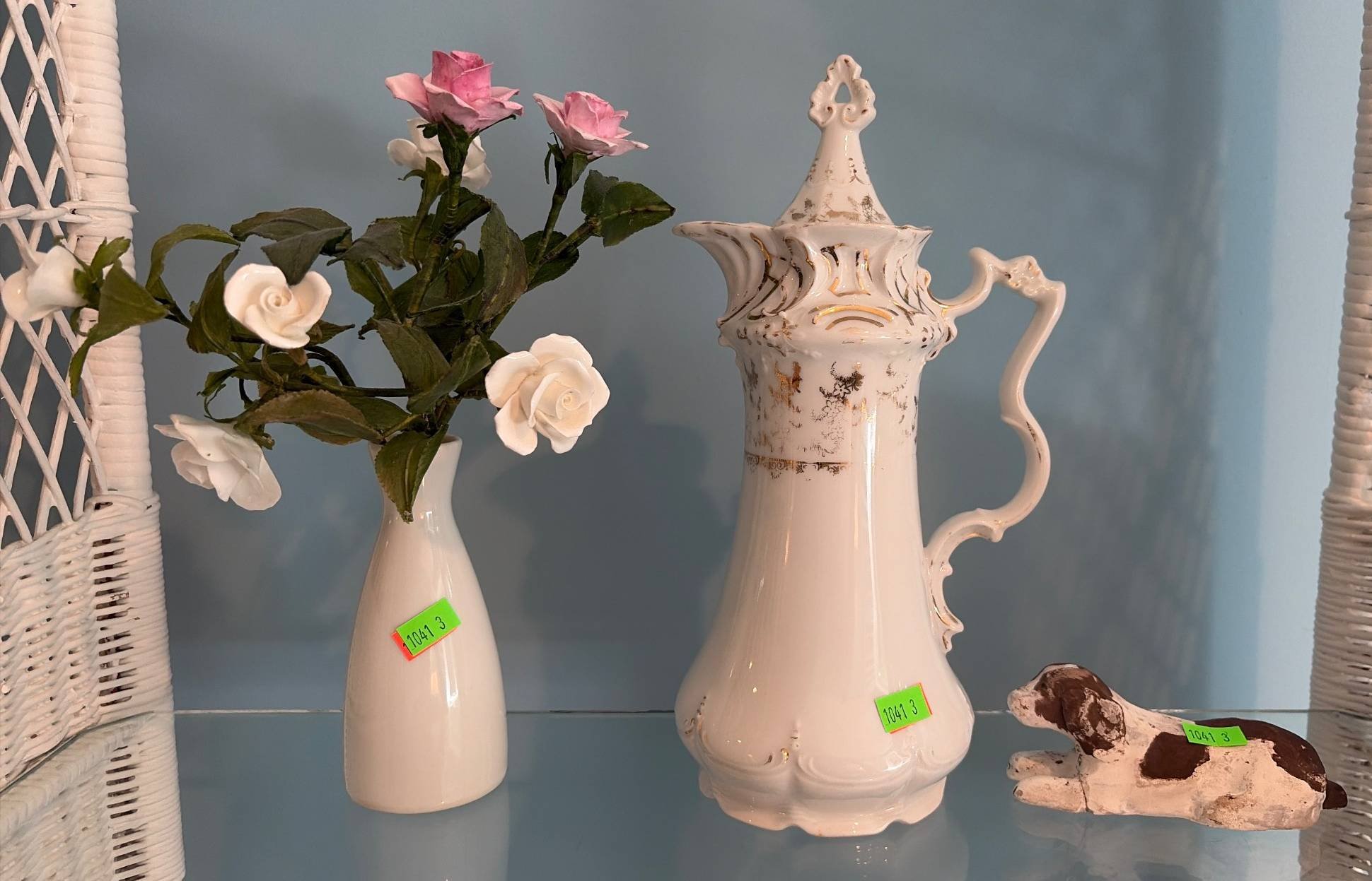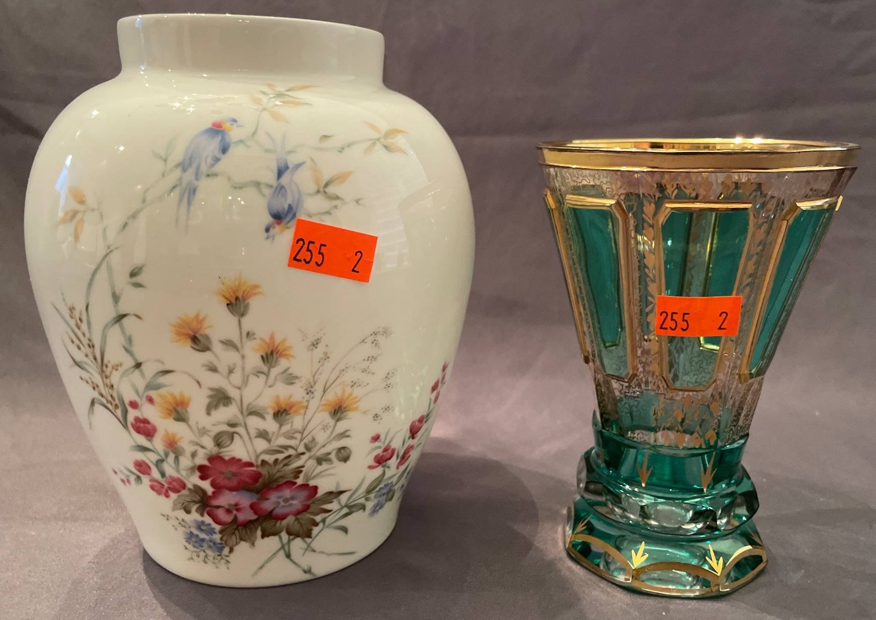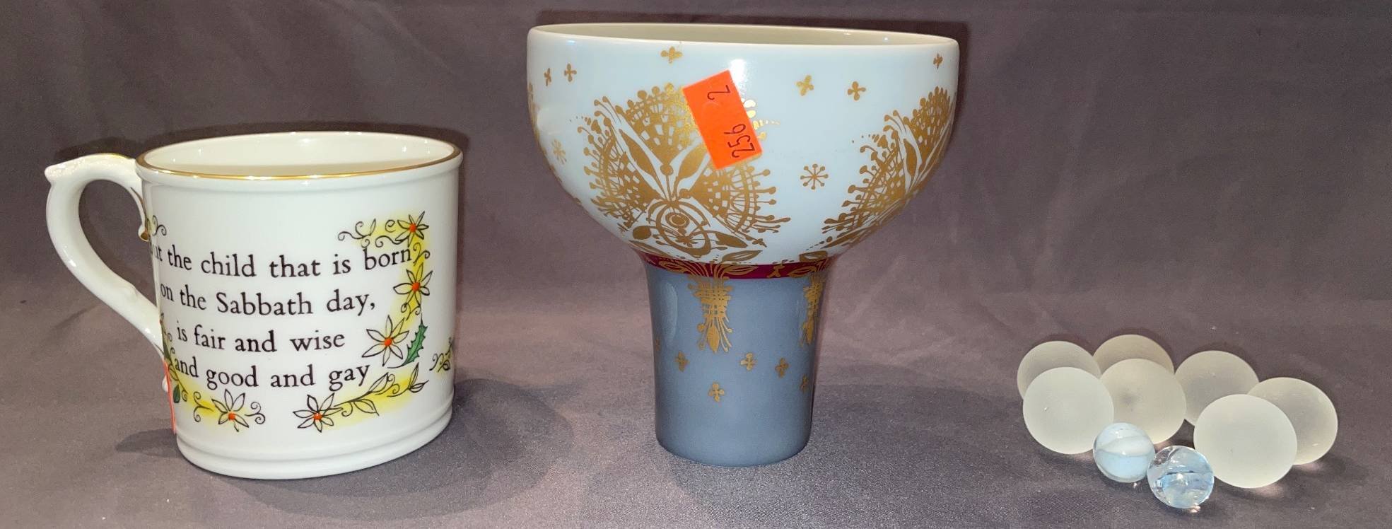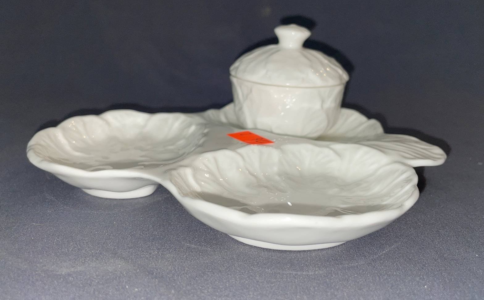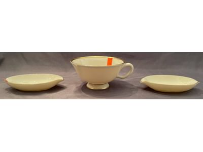 146 Collectibles with Painted Porcelain Flower & Egg by E. Windsor, Royal Worcester Fine Bone China Dish, and Glazed Apple