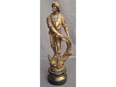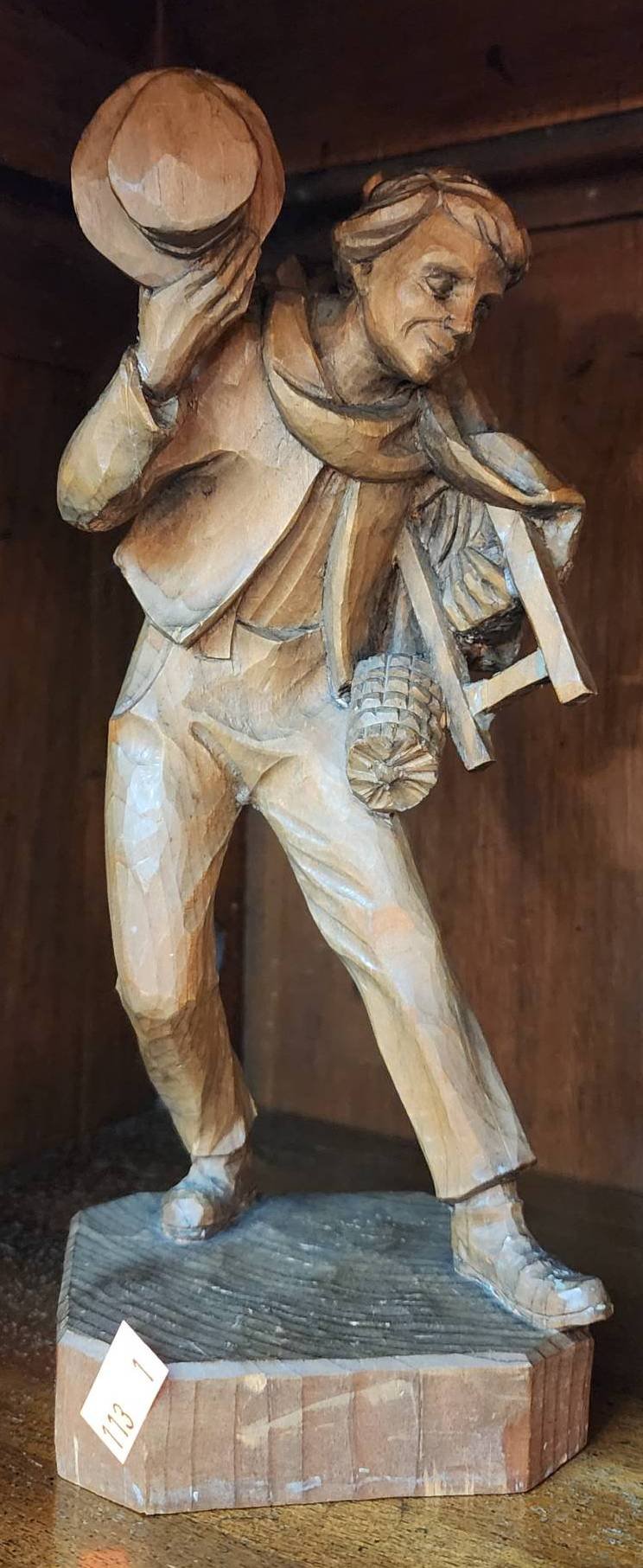 113 Hand-Carved Figurine of a Man Carrying Objects, 9?