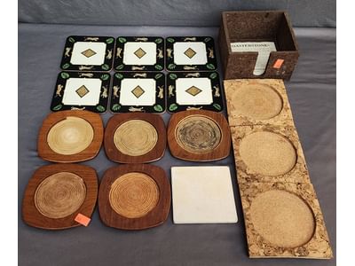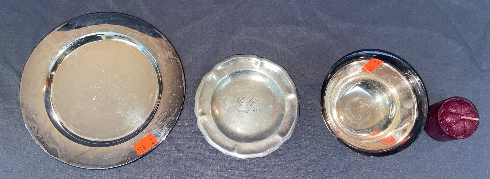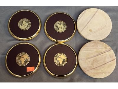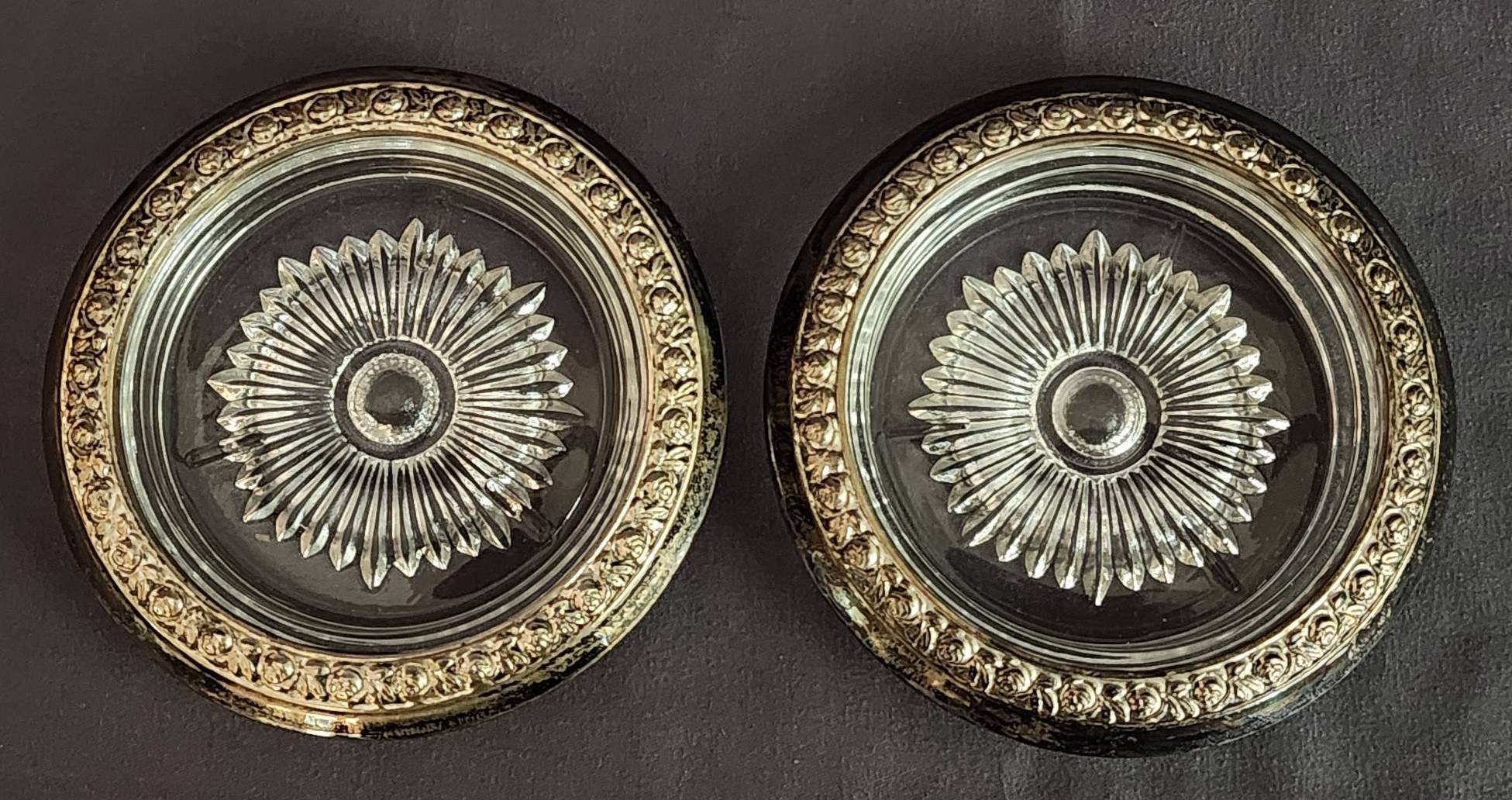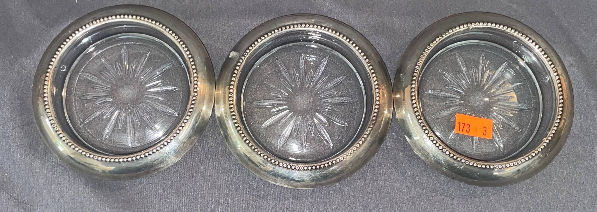 173 3 Glass Coasters with Beaded Metal Rims, 4?