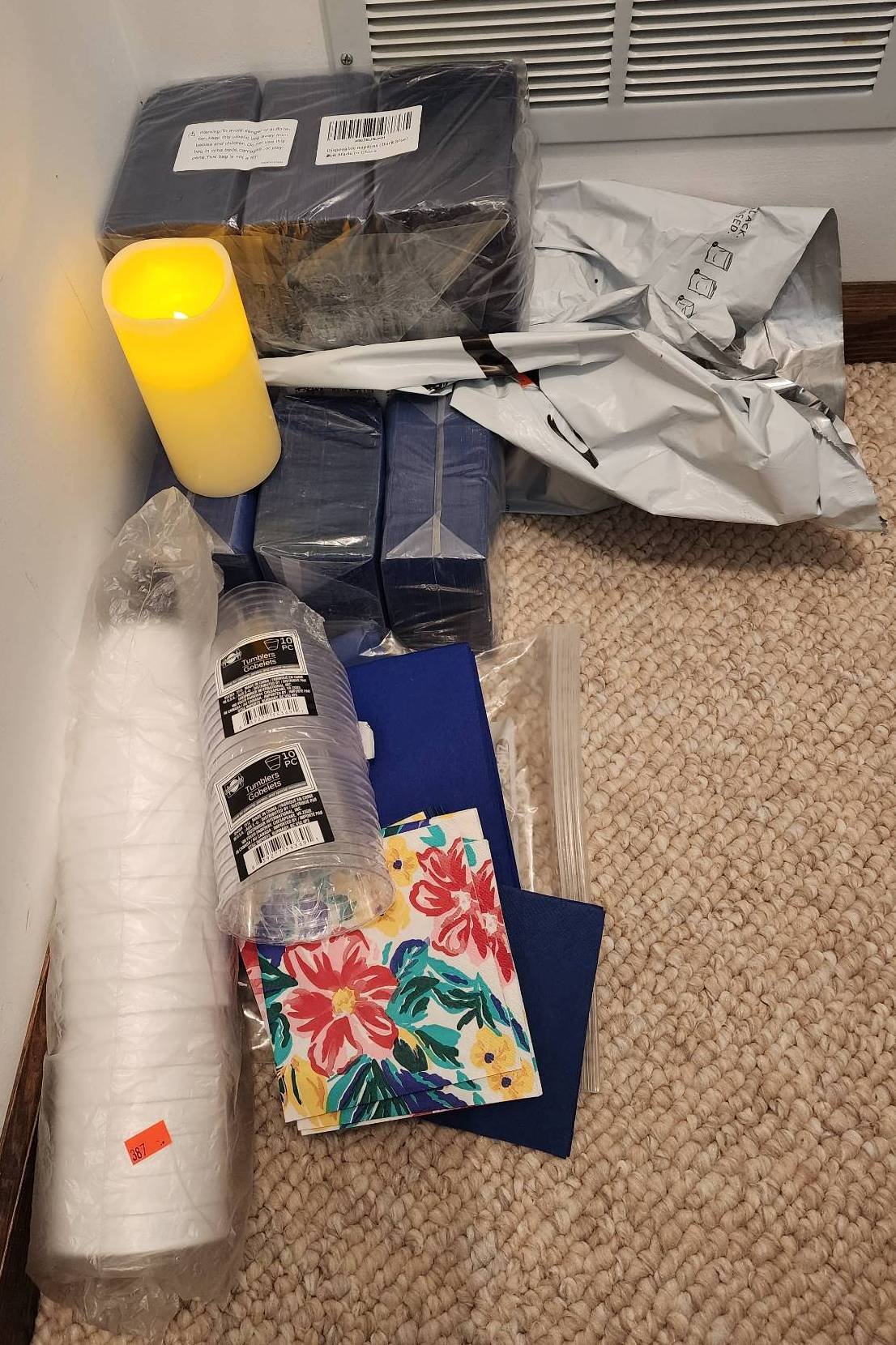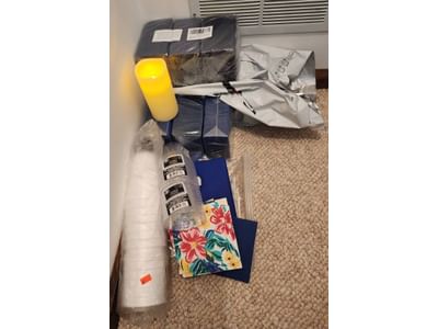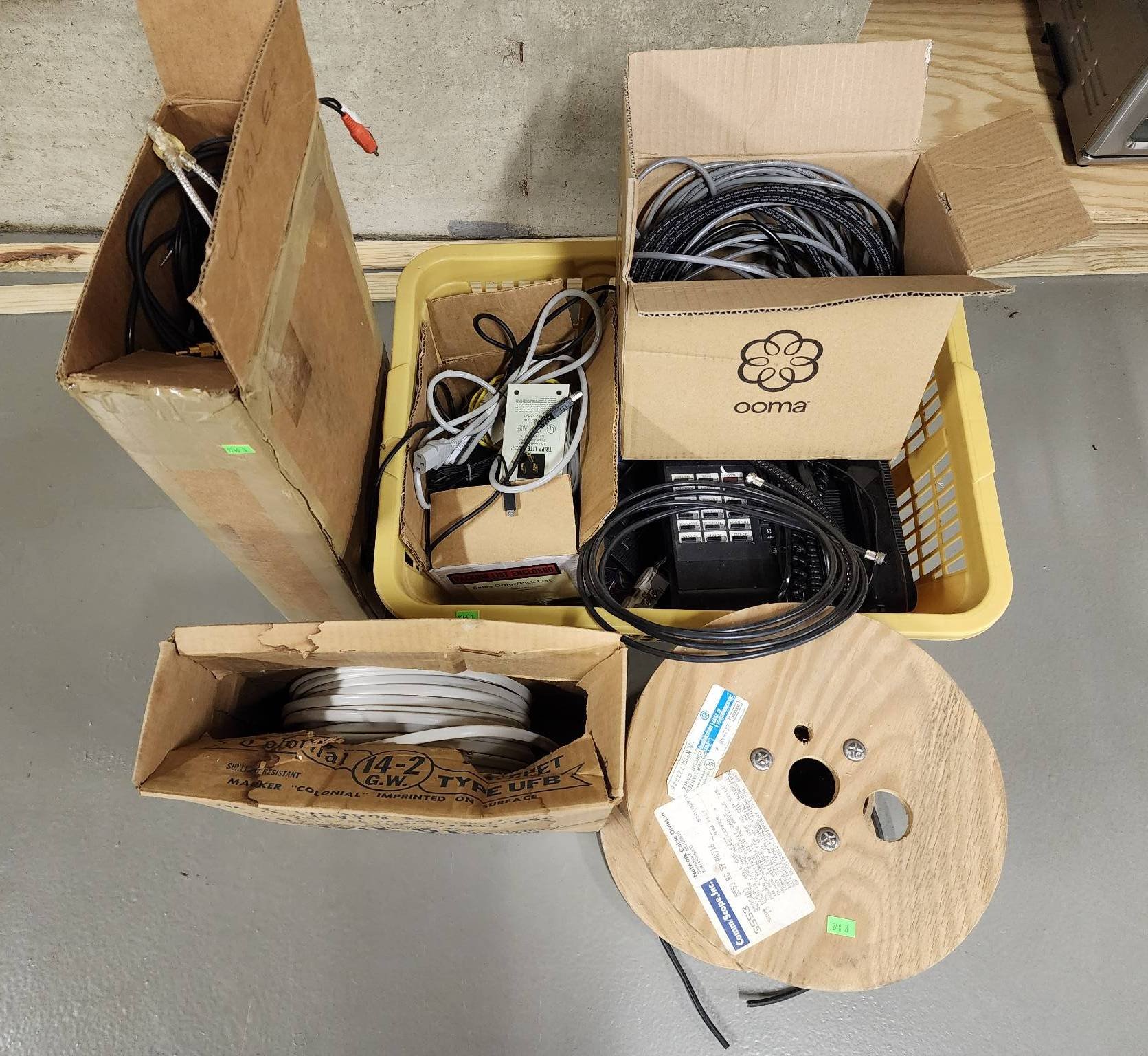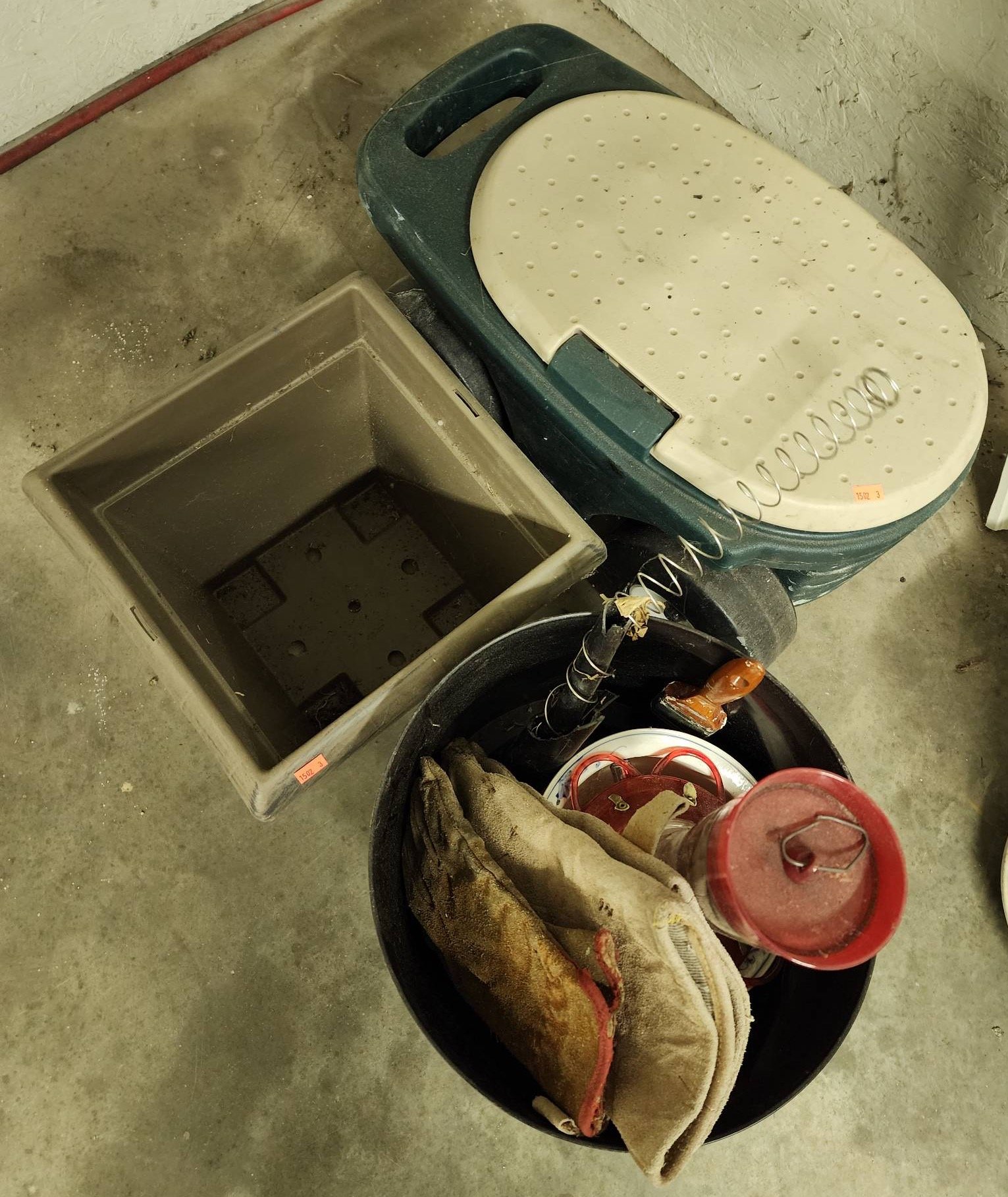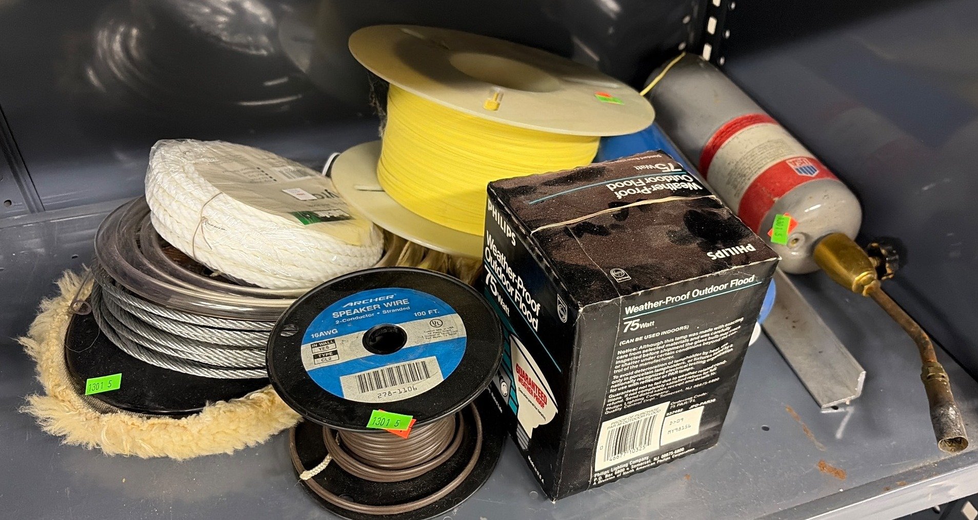 1301 Empty Propane Tanks, Spools of Wire, and Outdoor Flood Light Bulb