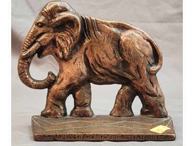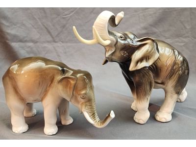 1604 2 Bronze Elephant Sculptures with Raised Trunks – Tools Required for Removal 70x27x39” & 70x27x59”