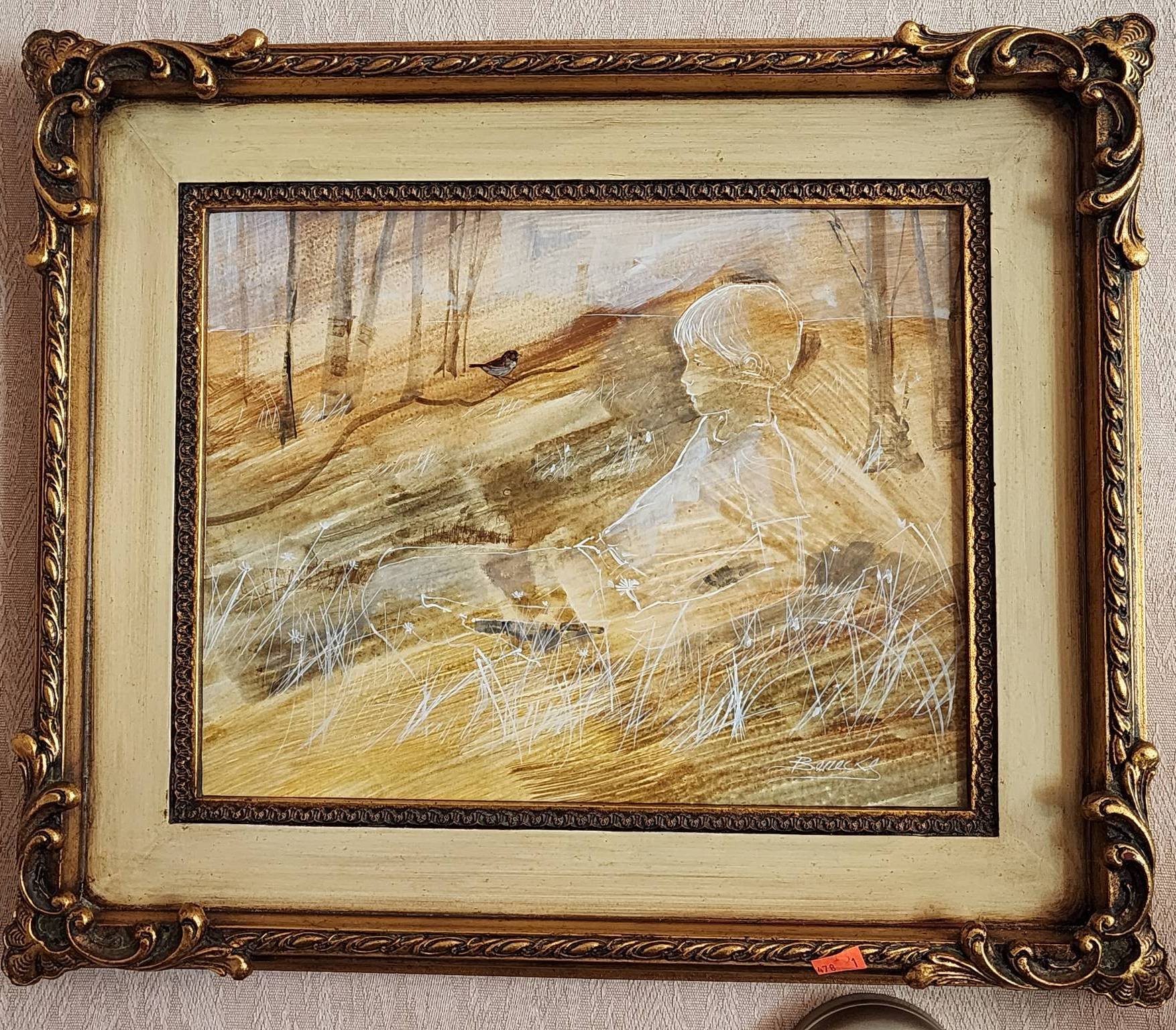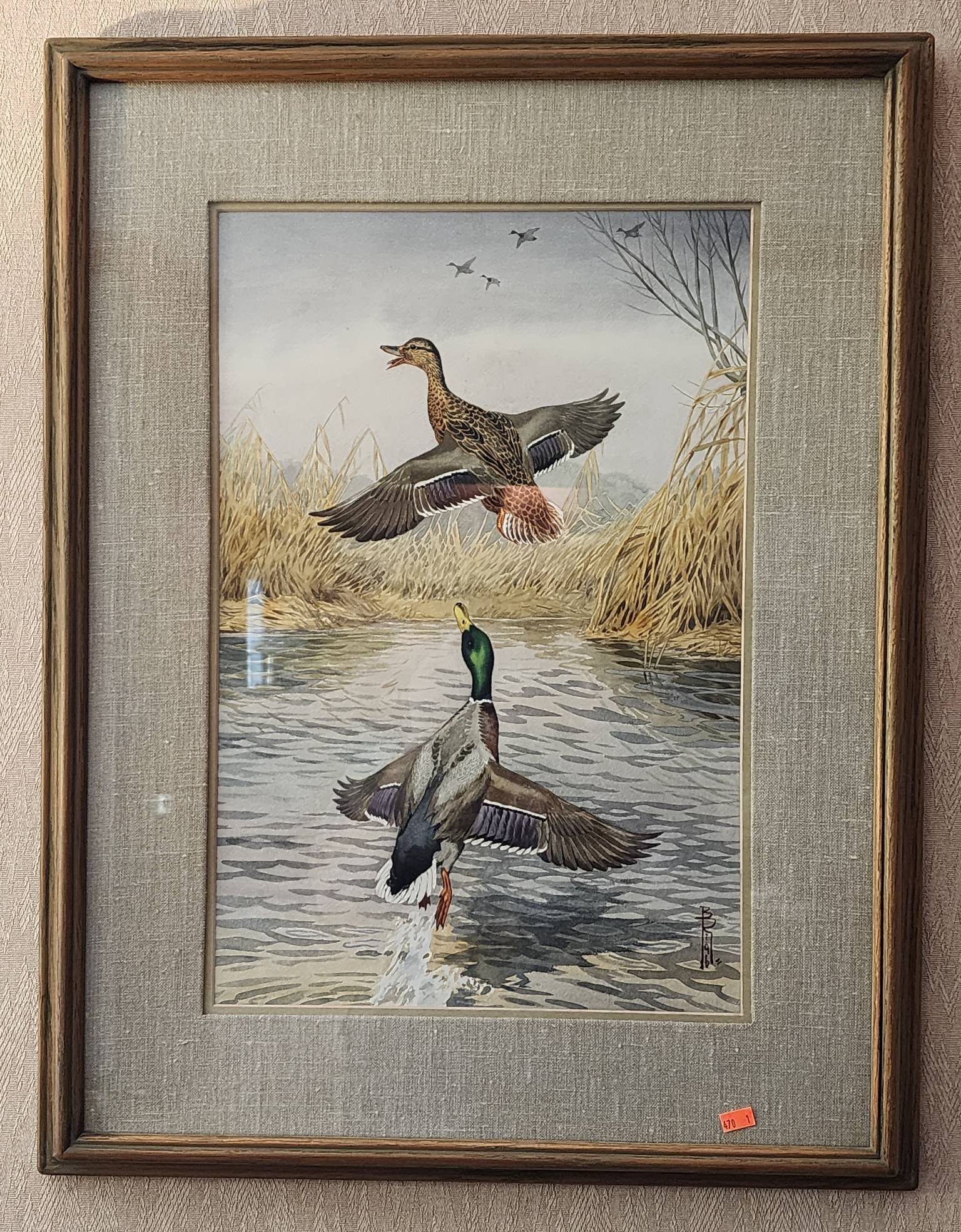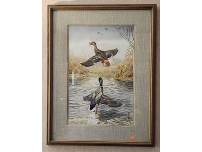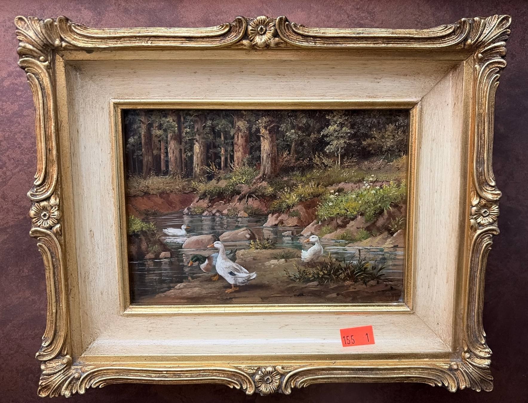 155 Framed Oil Painting Titled ‘Ducks’ by Artist ‘Levi’ with Gilded Frame, 10.5”x8.5”