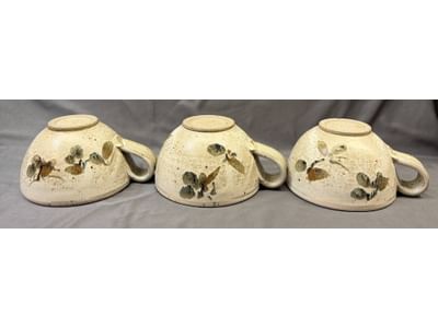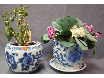 1511 3 Planters with Floral and Geometric Designs, Inc. 2 Matching Saucers