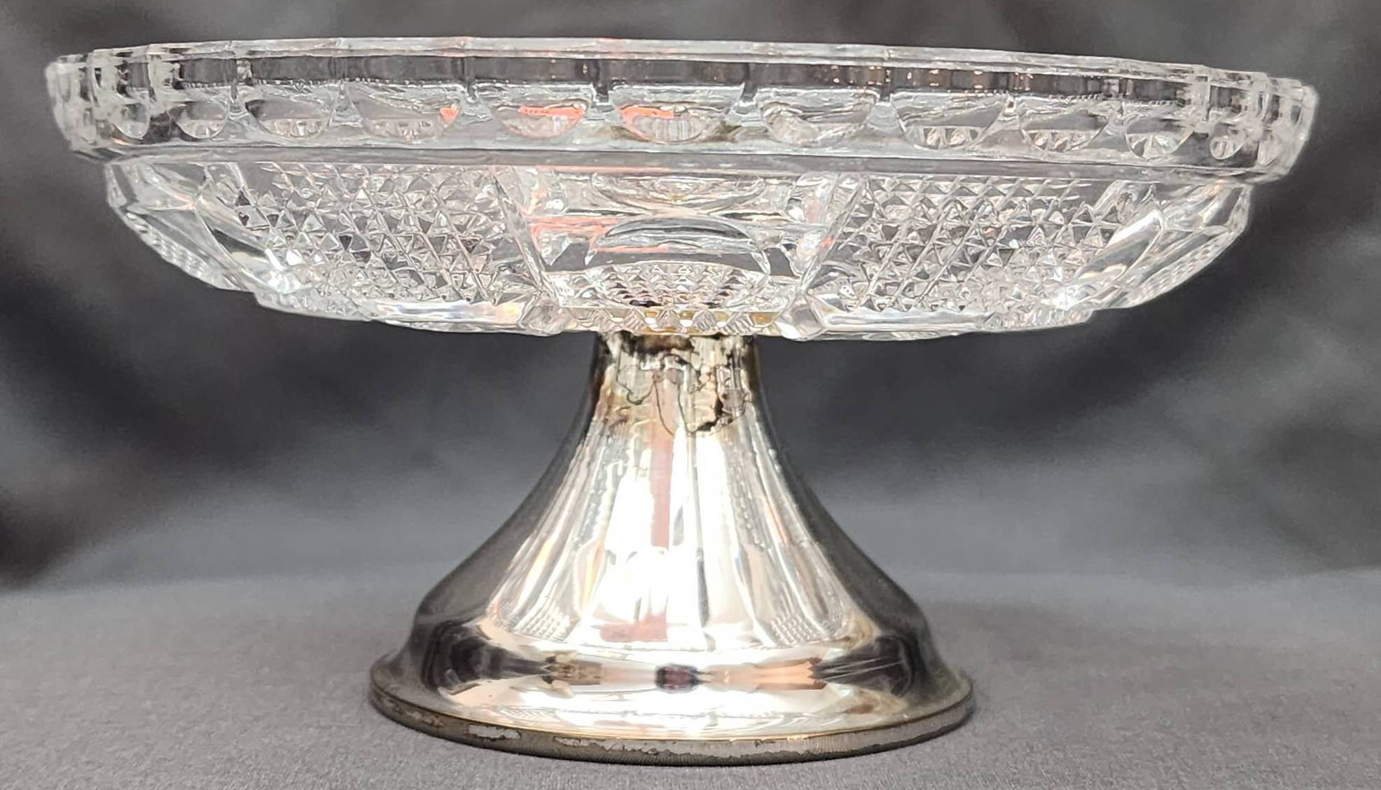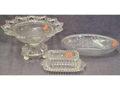 109 Pressed Glass Compote Dish with Metal Stem, 5.5?x3?