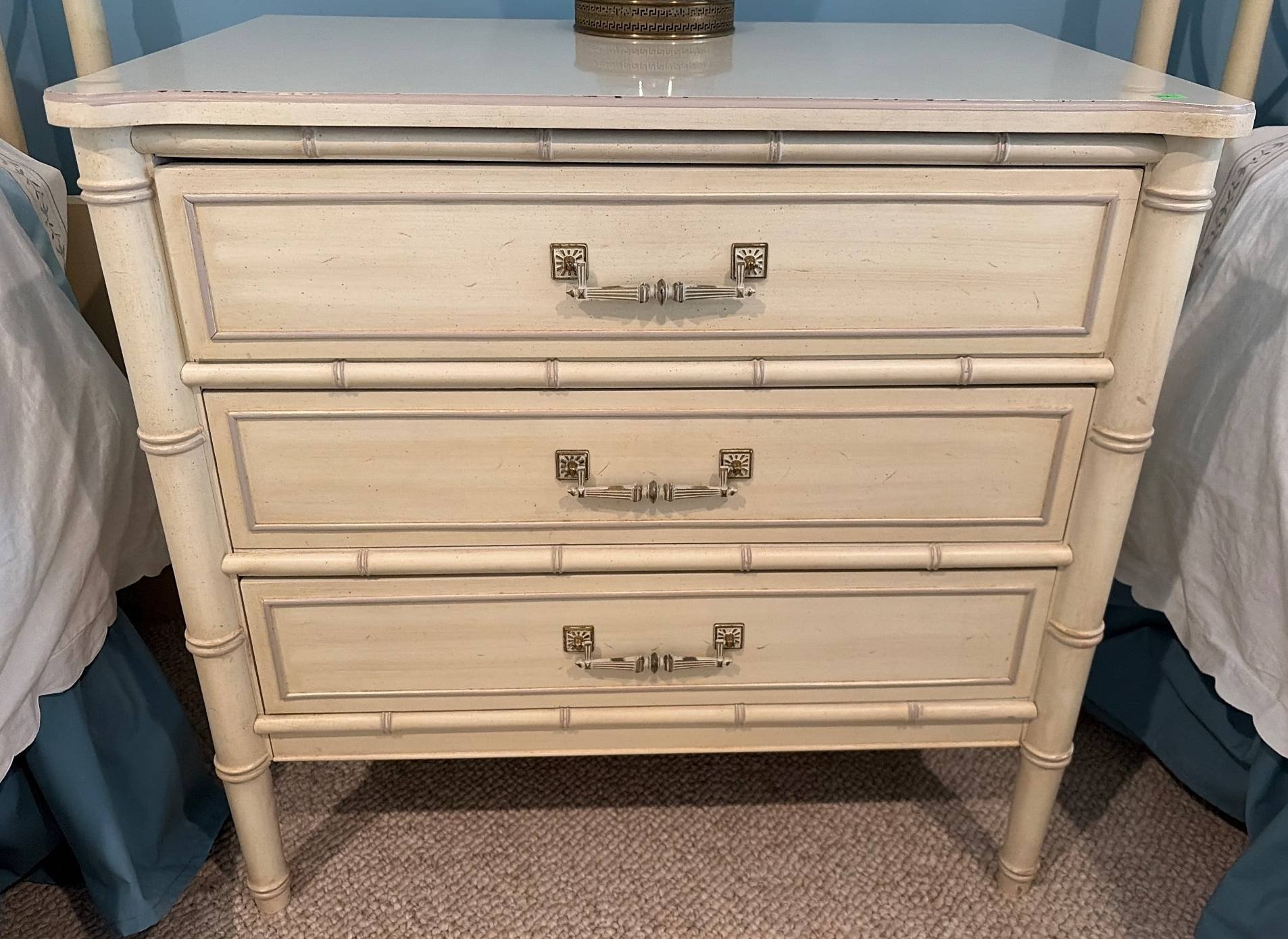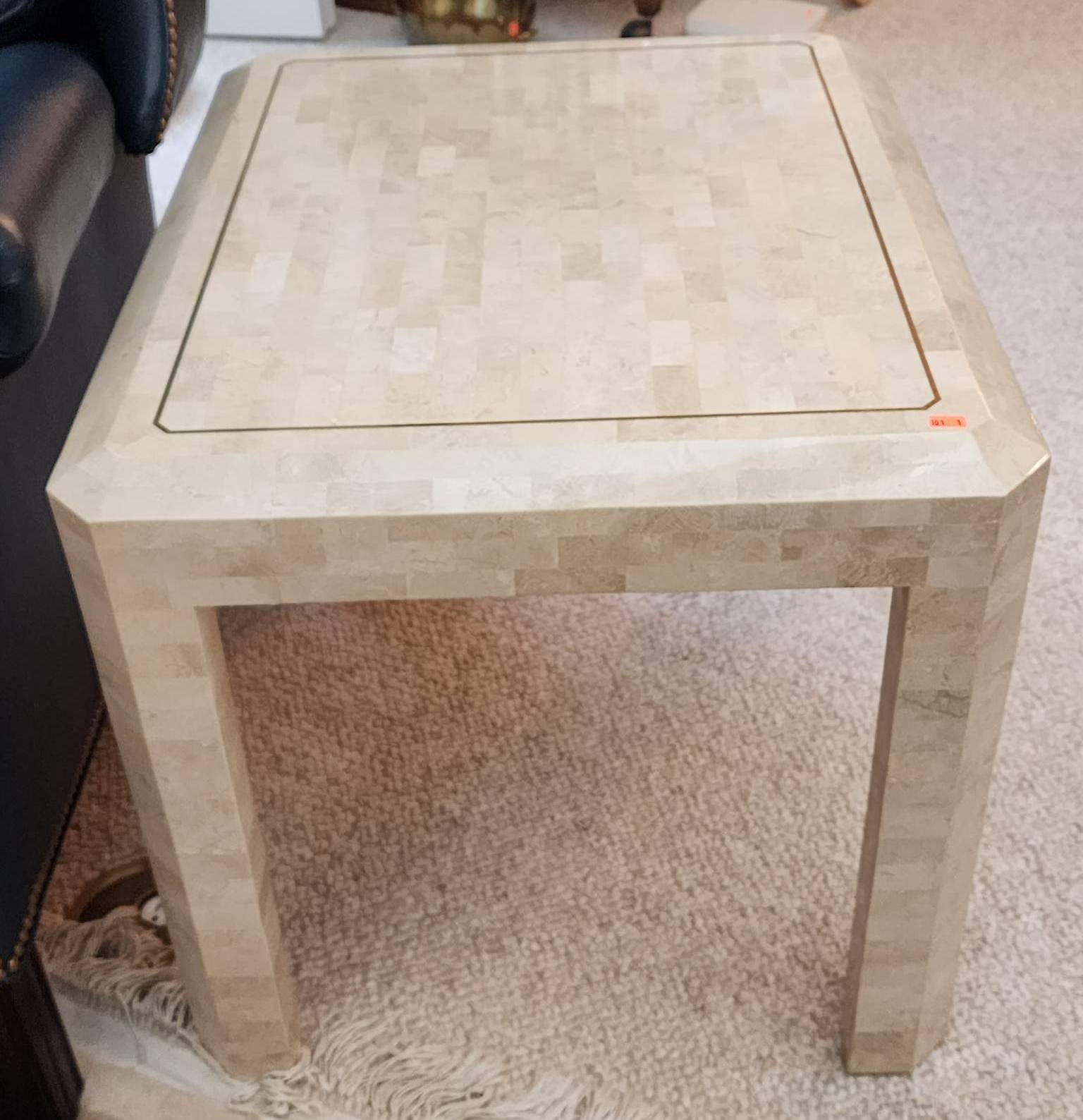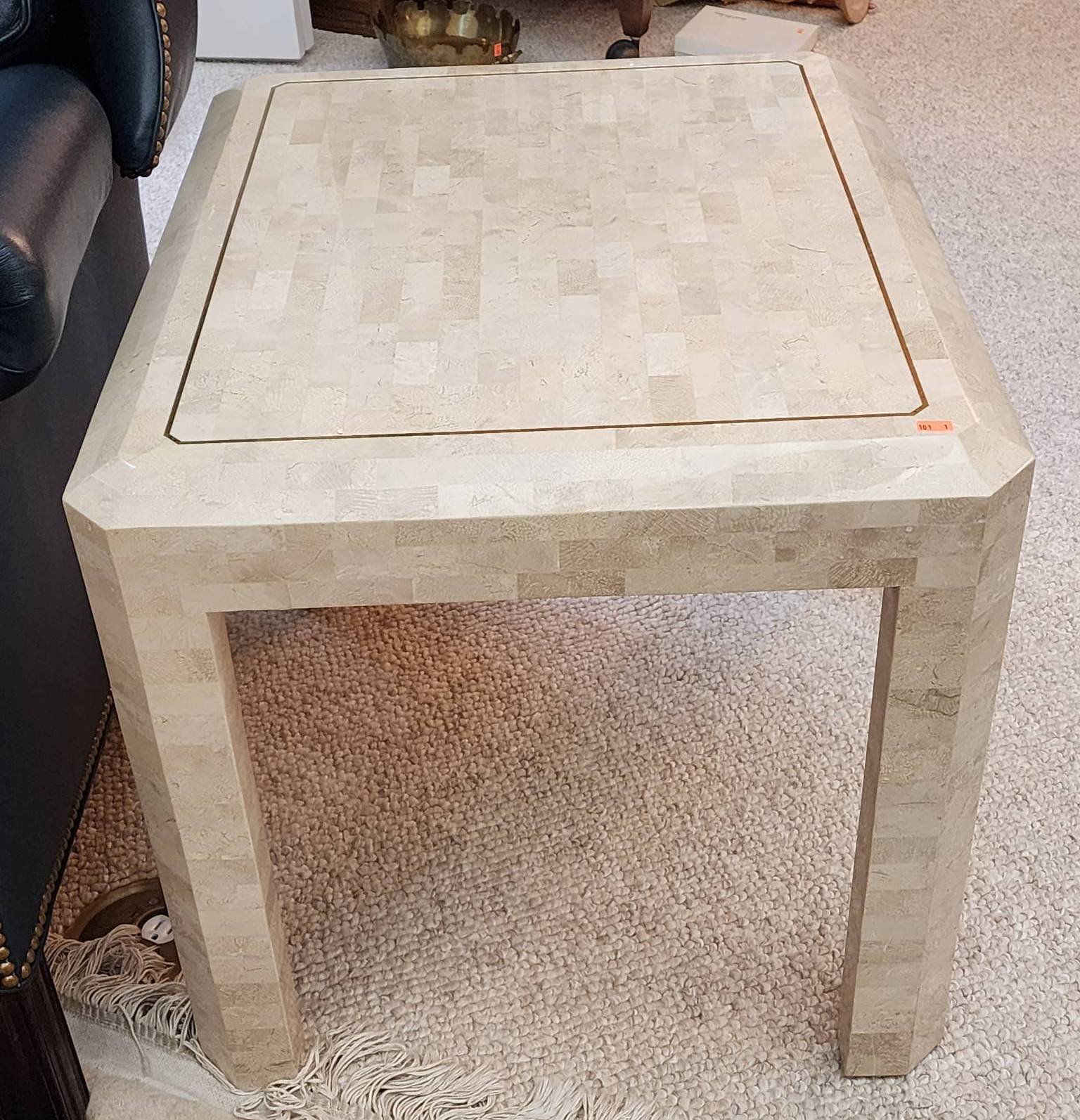 101 Square Inlaid Table with Brass Detail, Henredon and/or Maitland Smith -- 22?x27?x21.5?