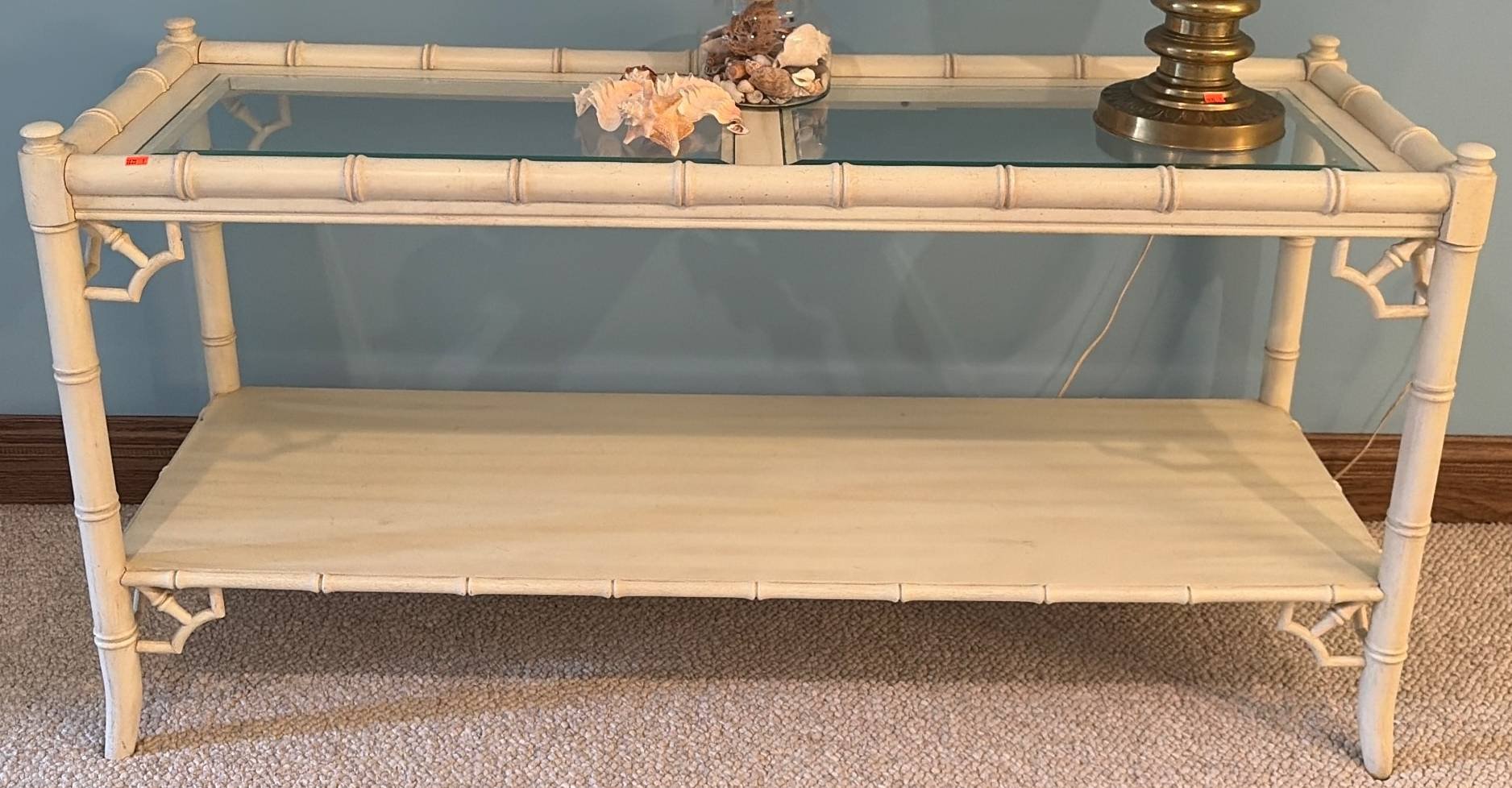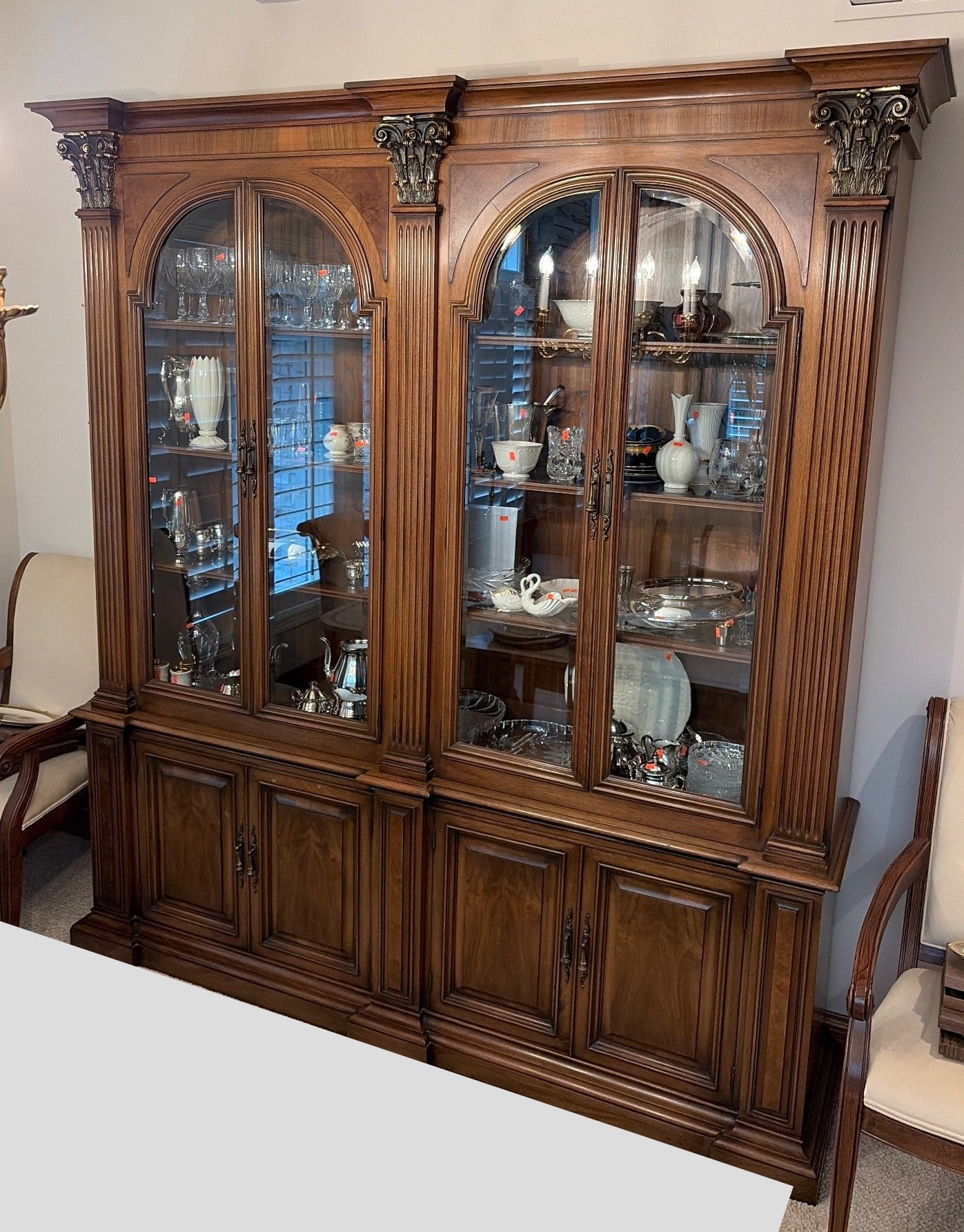 187 Romweber Ornate Glass Front Hutch with Glass Doors and Brass Accents